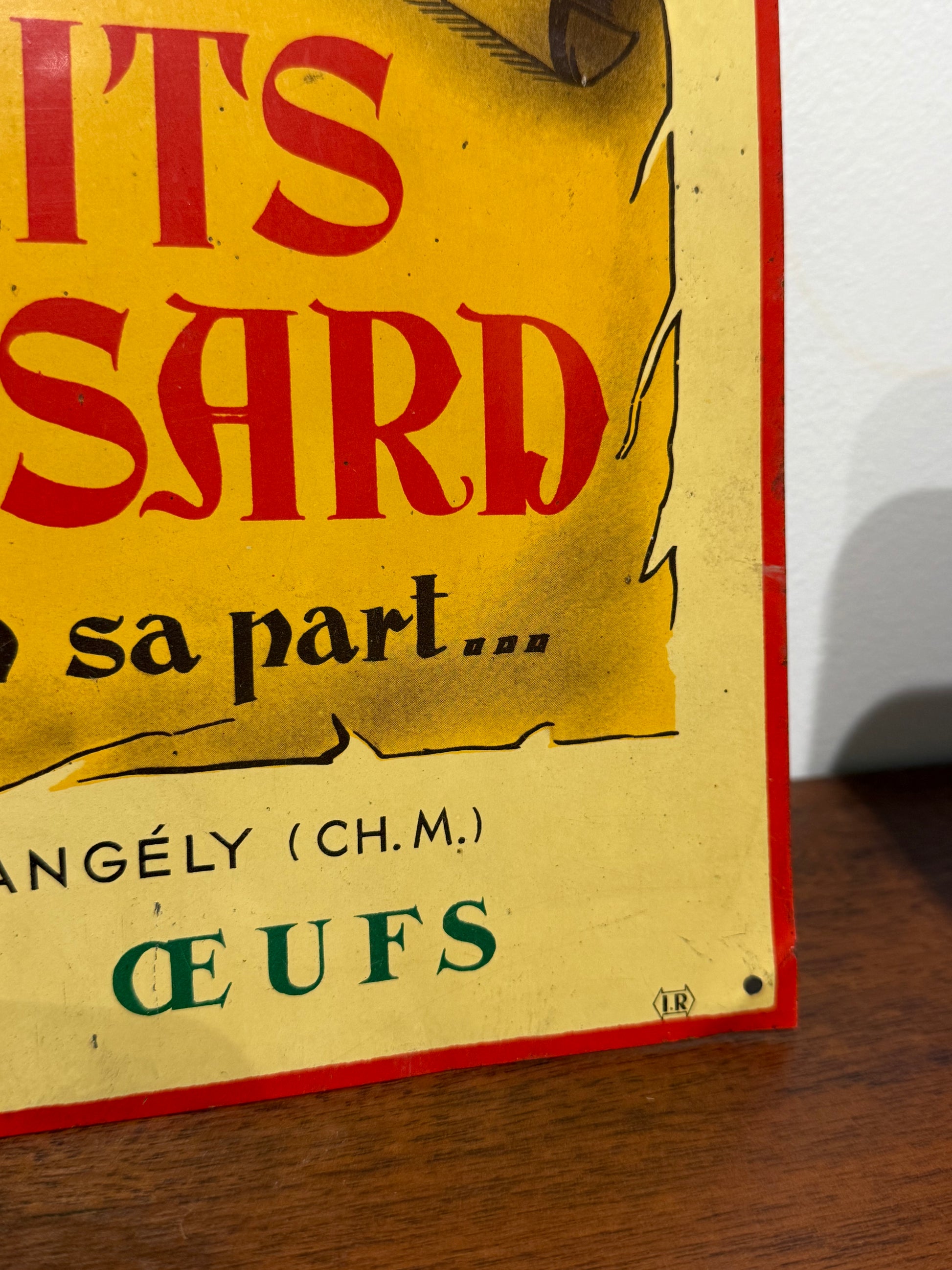 Superbe plaque publicitaire ancienne en métal émaillé des Biscuits Brossard, une marque emblématique de biscuits français. Cette plaque vintage est un véritable témoin de l’histoire de la publicité et du commerce en France.