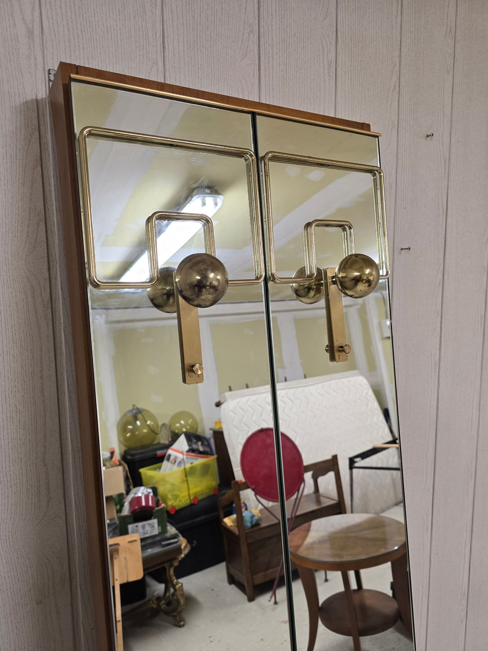 Porte-manteau mural vintage des années 70, composé d’une façade entièrement en miroir qui apporte à la fois luminosité et effet de profondeur à la pièce.