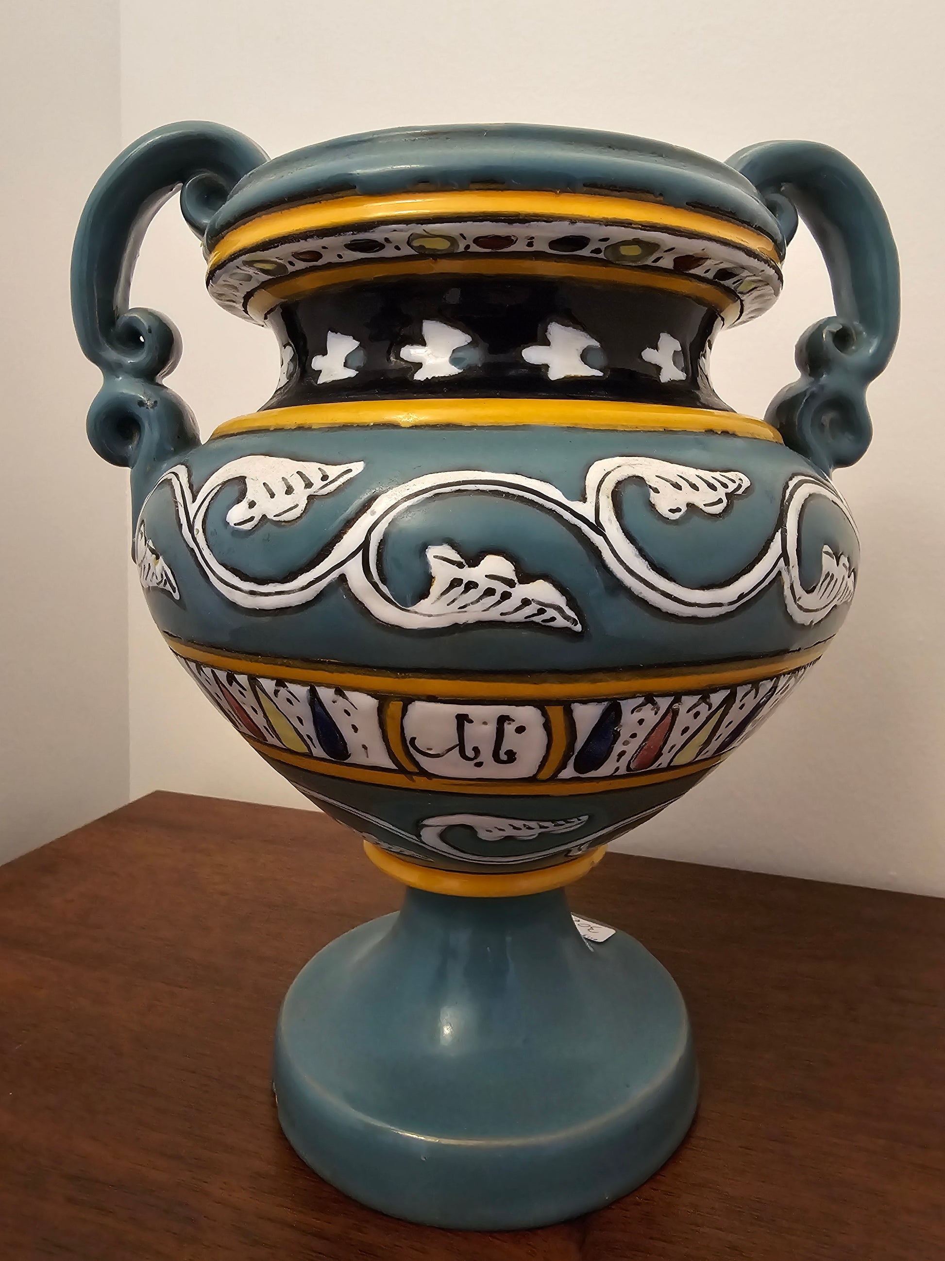"Profitez de l'artisanat traditionnel tunisien avec notre poterie de Nabeul. Façonnée à la main avec des techniques ancestrales, chaque pièce est unique et apportera une touche authentique à votre décoration. Vers 1950