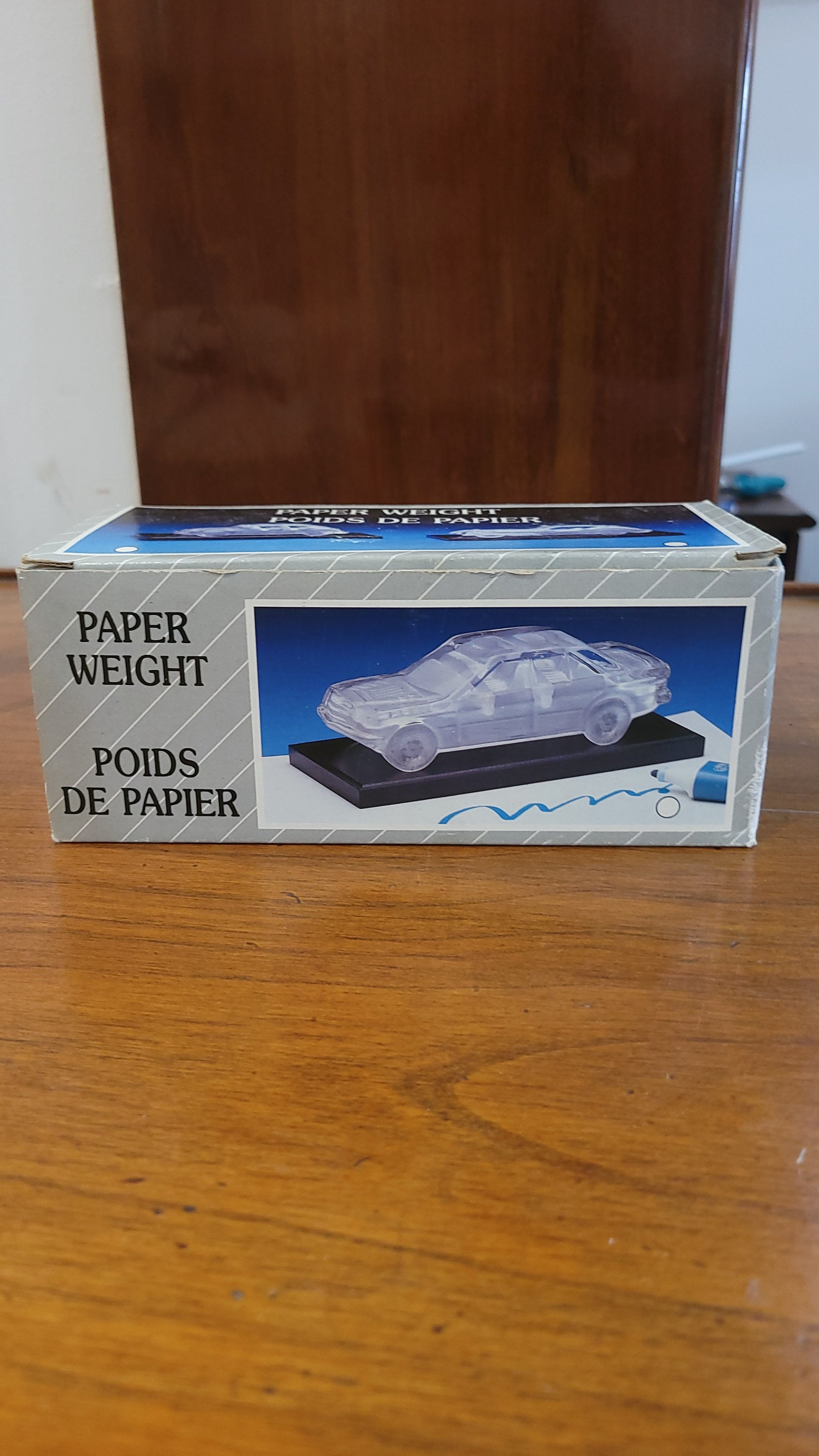 Original et décoratif, ce presse-papiers en verre transparent représente une voiture finement détaillée, posée sur un socle noir amovible. Sa conception permet d’exposer la voiture seule ou avec son support, offrant deux présentations possibles. Idéal pour apporter une touche originale et élégante à un bureau, il allie utilité et objet de collection. Livré dans sa boîte d’origine, il constitue également une belle idée cadeau pour amateurs d’accessoires de bureau, de miniatures ou d’objets en verre.