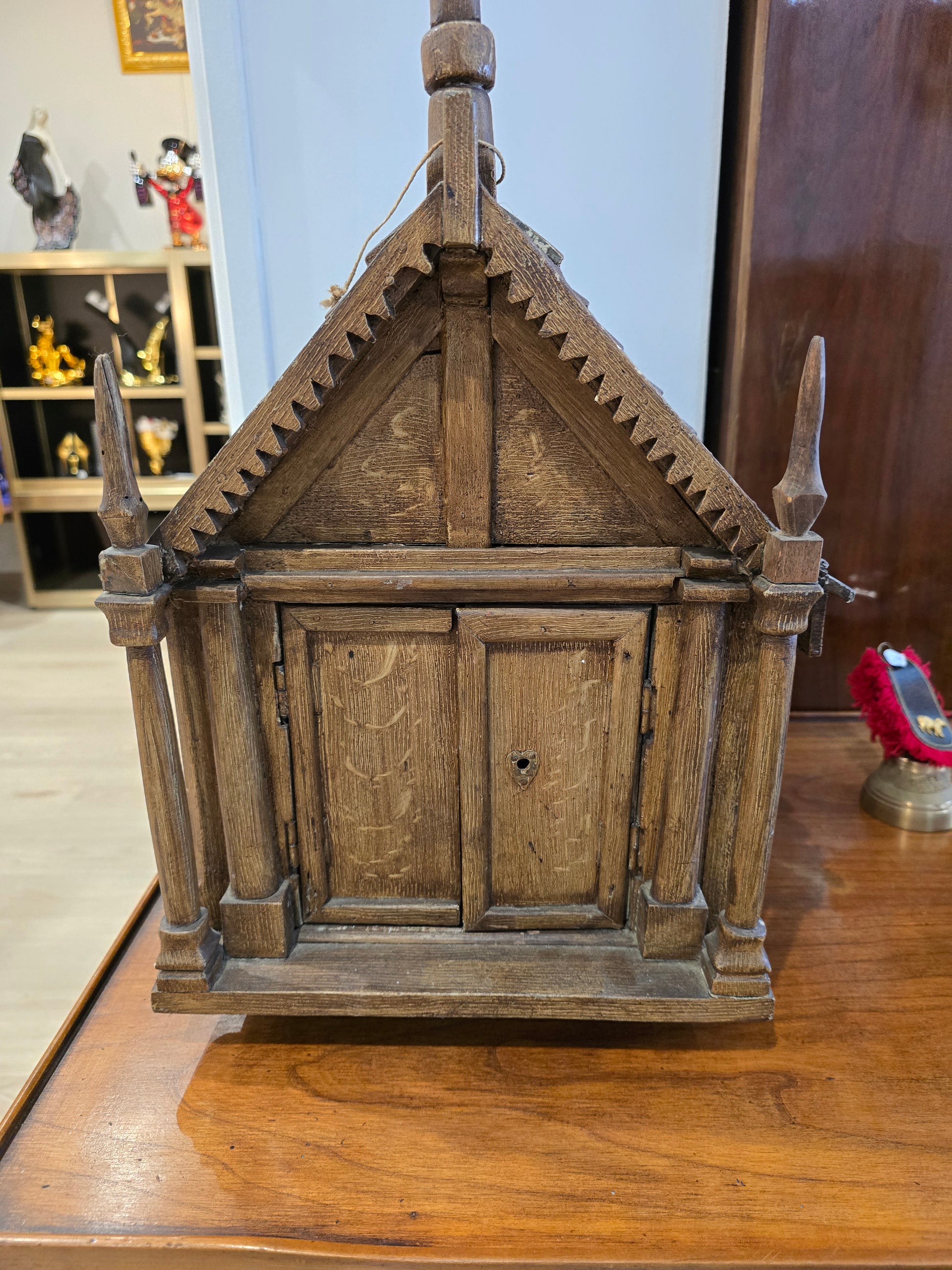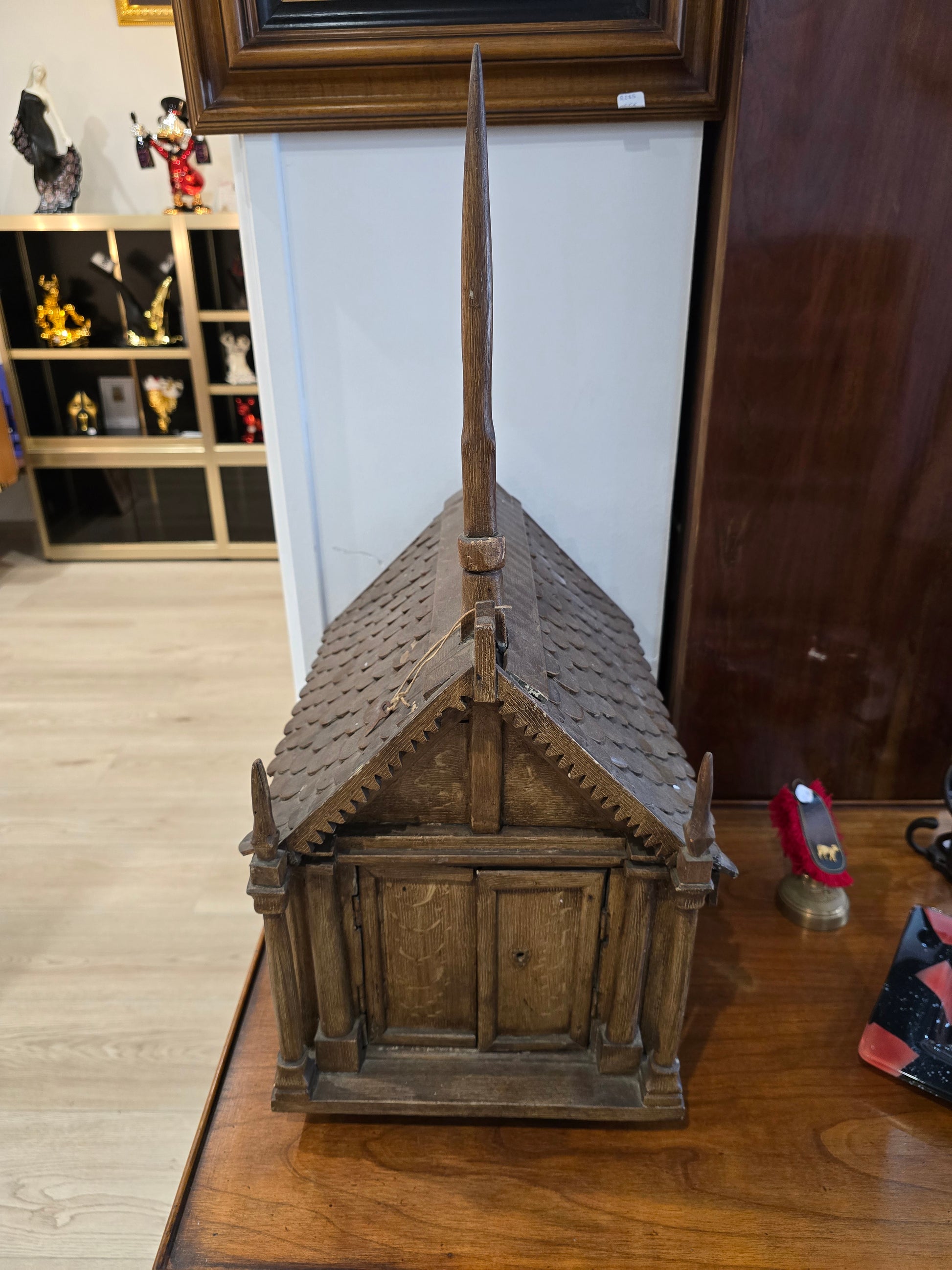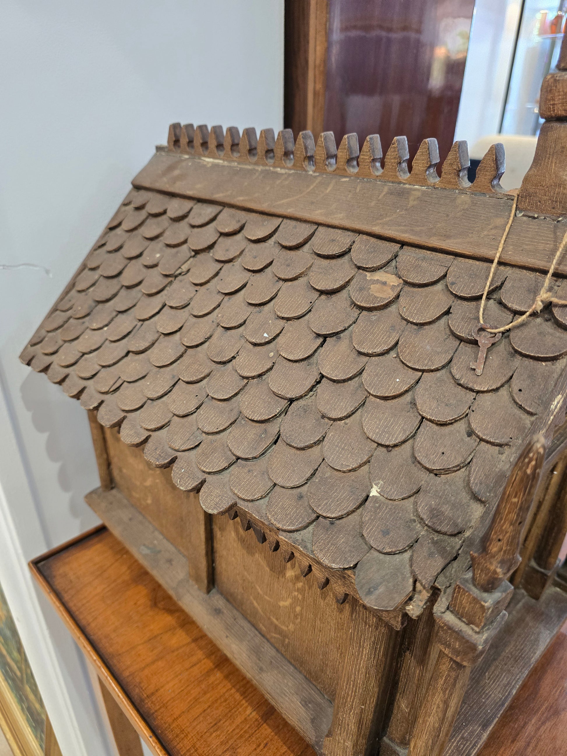 Très bon état pour son âge. Petits manques visibles sur les bords du toit, usures légères, mais rien qui altère son charme ou sa solidité. Patine ancienne préservée, serrure fonctionnelle.