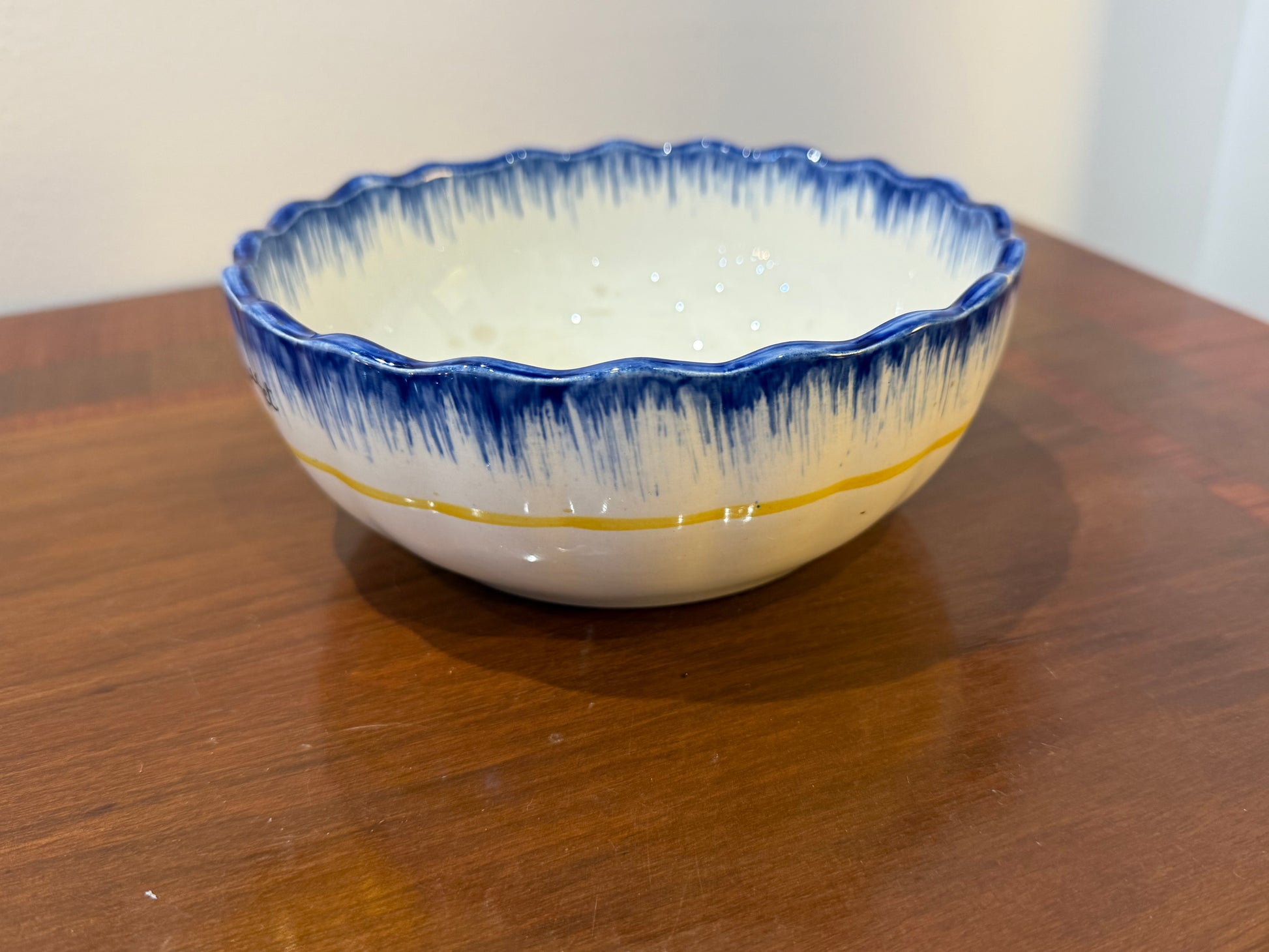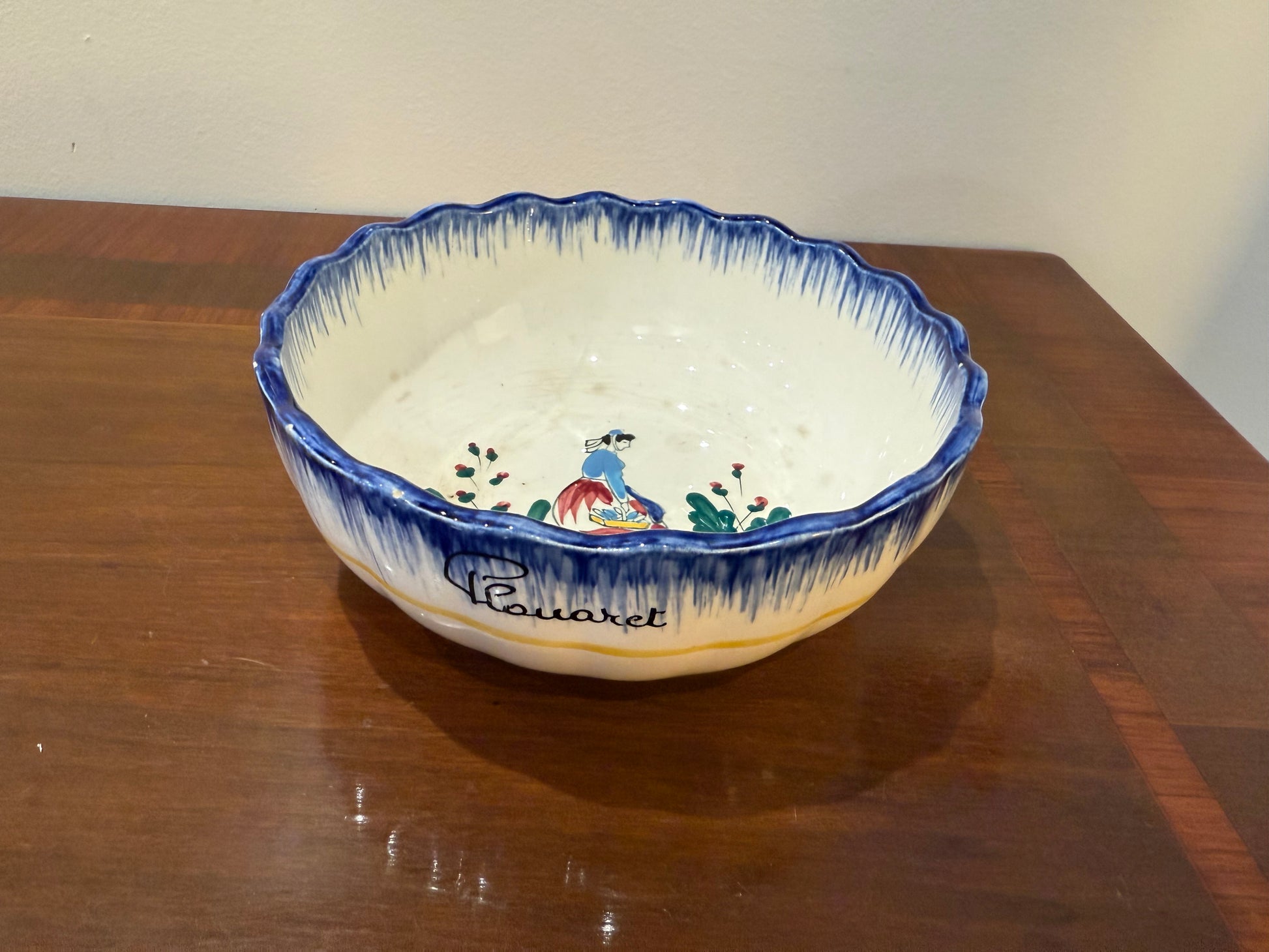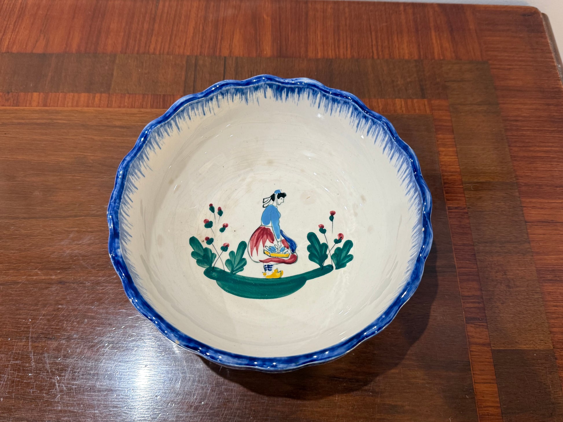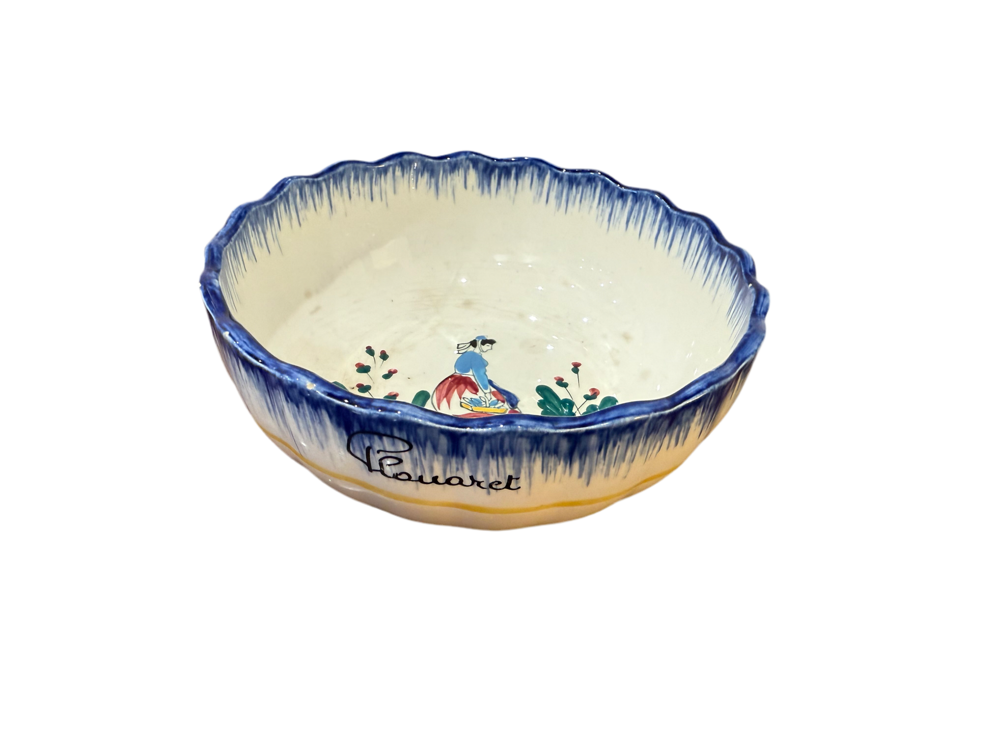 Apportez une touche d’authenticité à votre table avec ce magnifique bol en faïence de Bretagne, signé MBFB. Son design typique met en avant un décor breton traditionnel, peint à la main, représentant un personnage en costume régional entouré de motifs floraux.