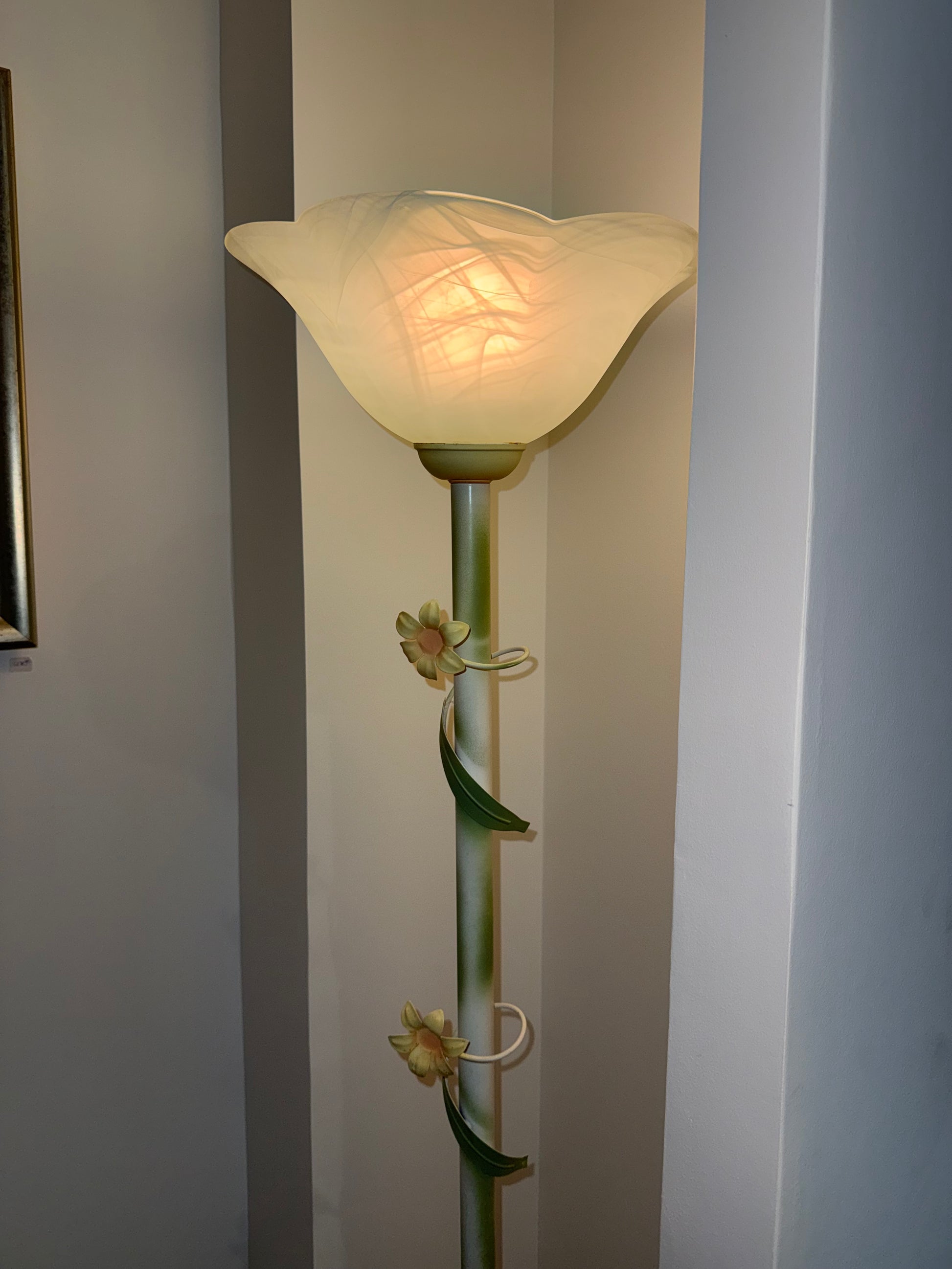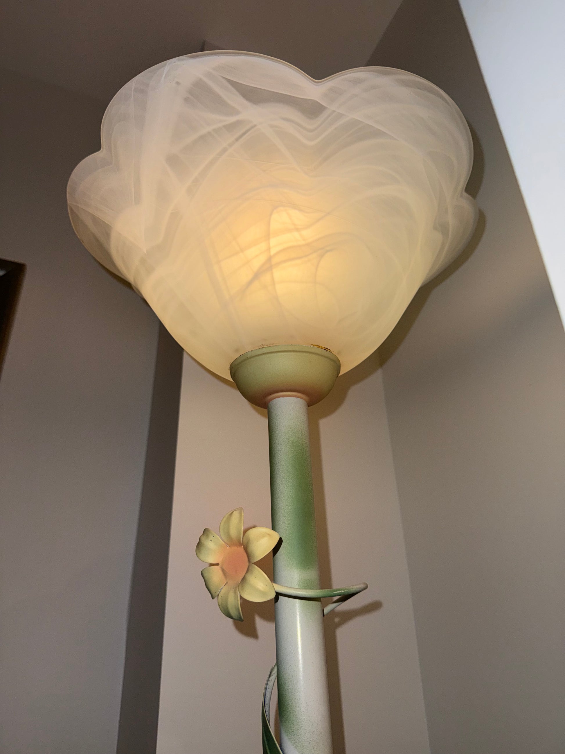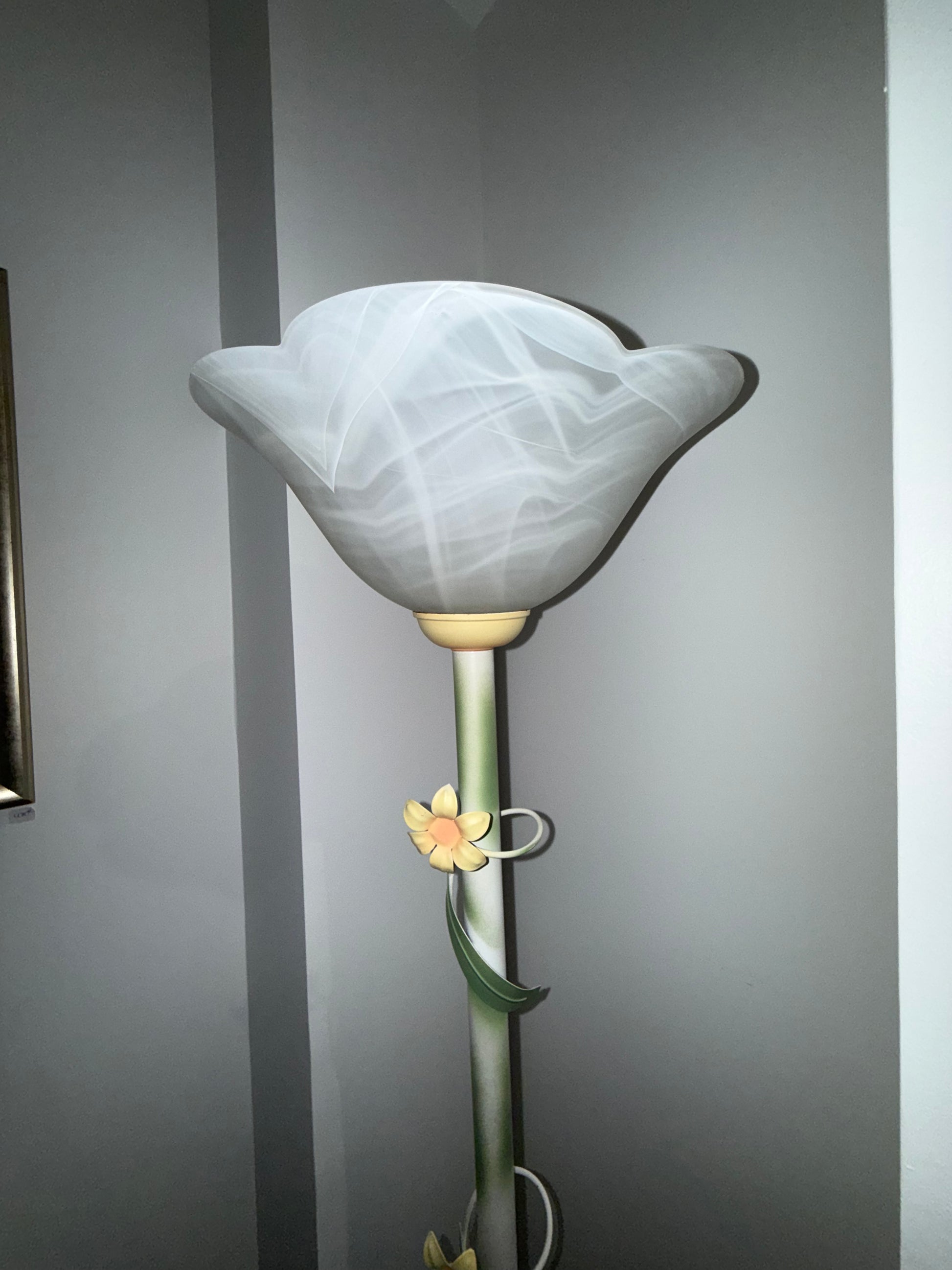 Lampadaire décoratif floral en verre marbré – Style Art Nouveau – Années 1980/1990