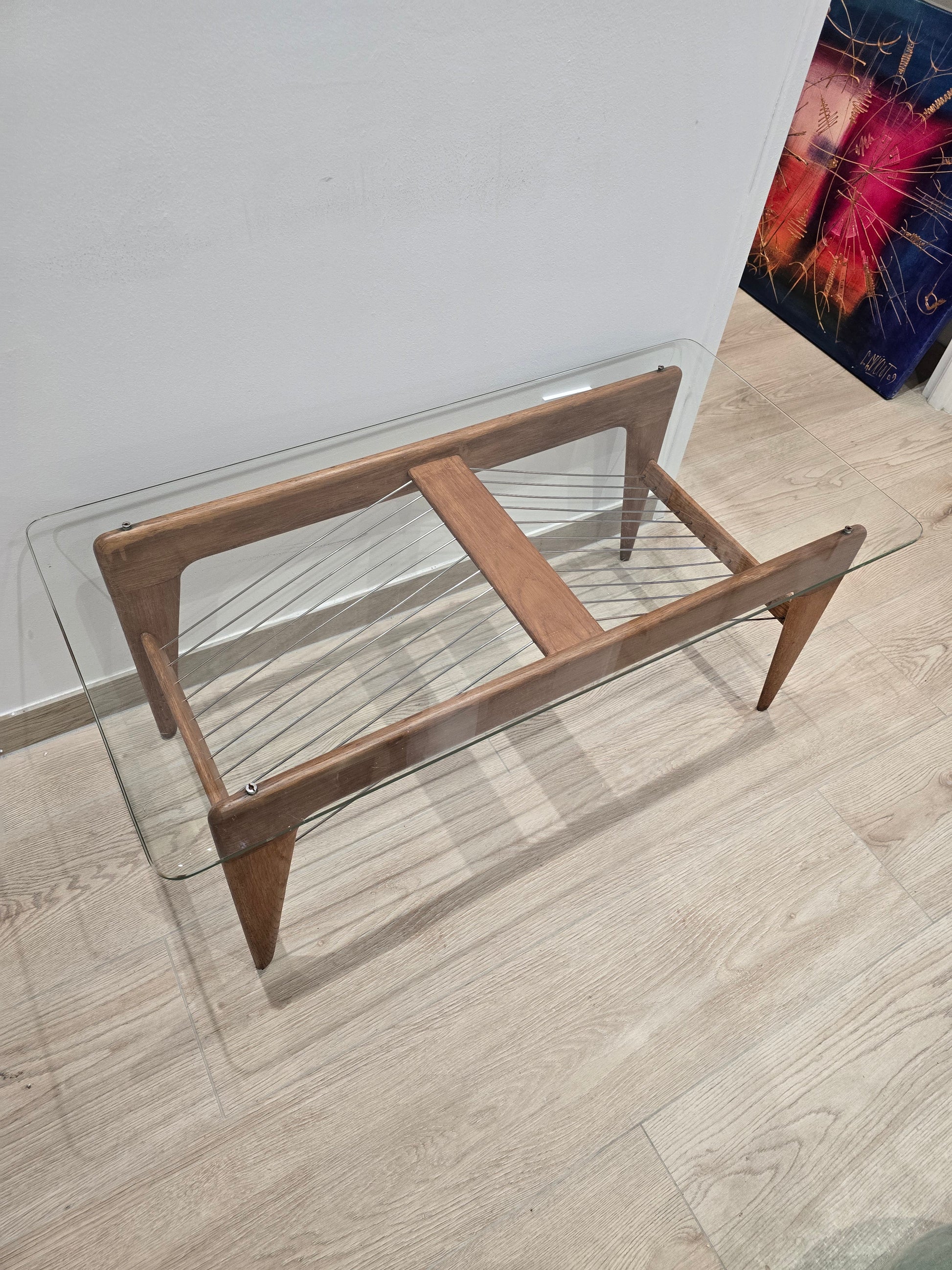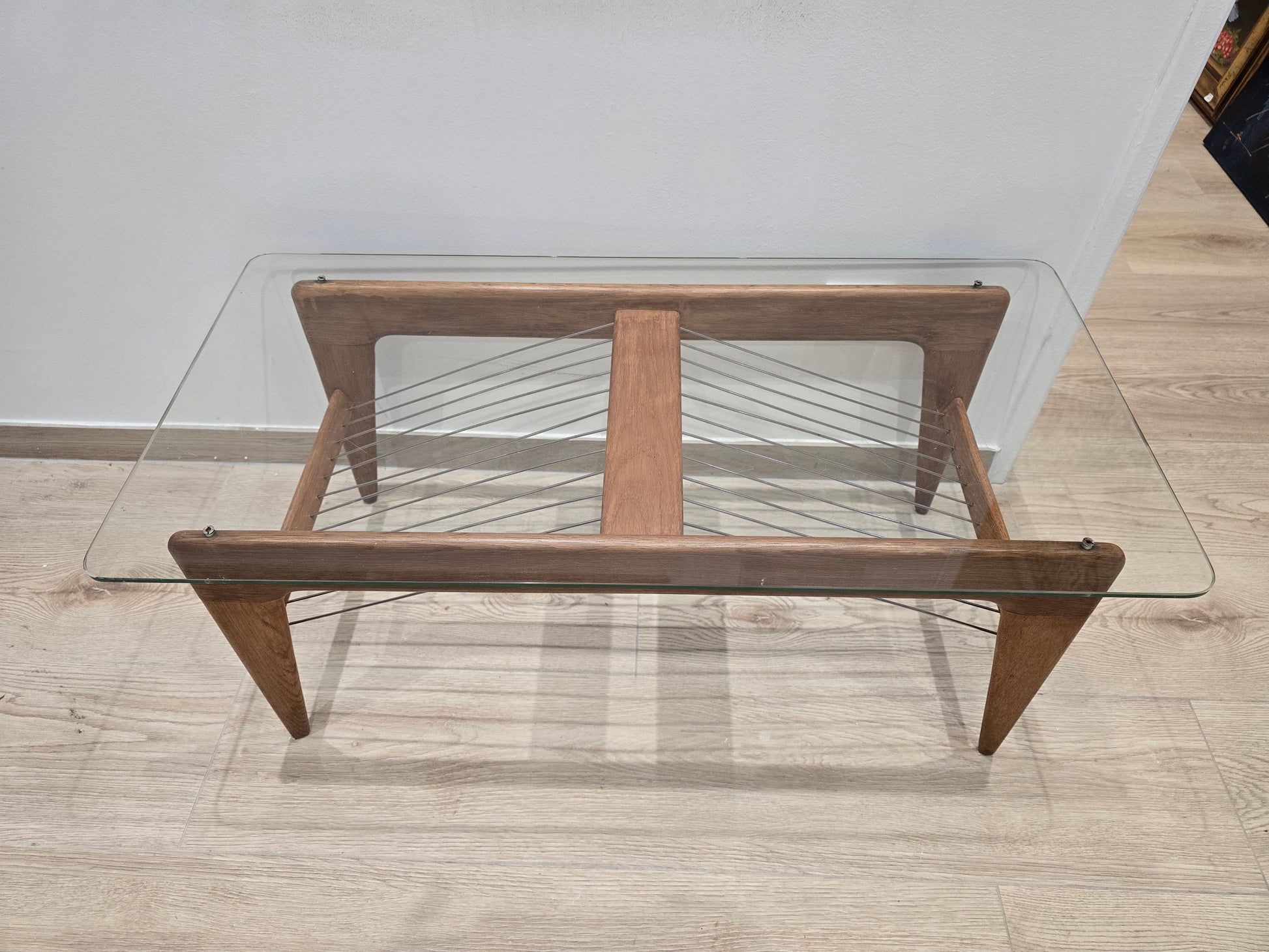 table basse vintage, table scandinave, mid century design, table en bois et verre, mobilier années 50, mobilier vintage, table
