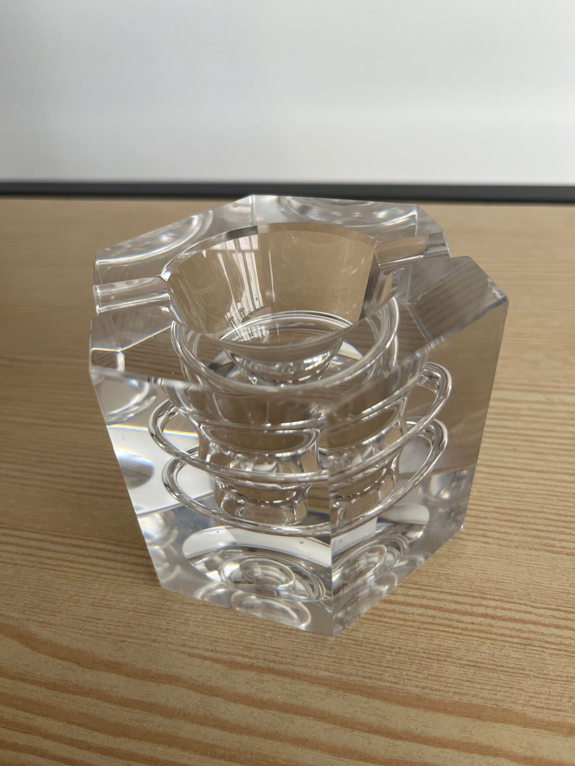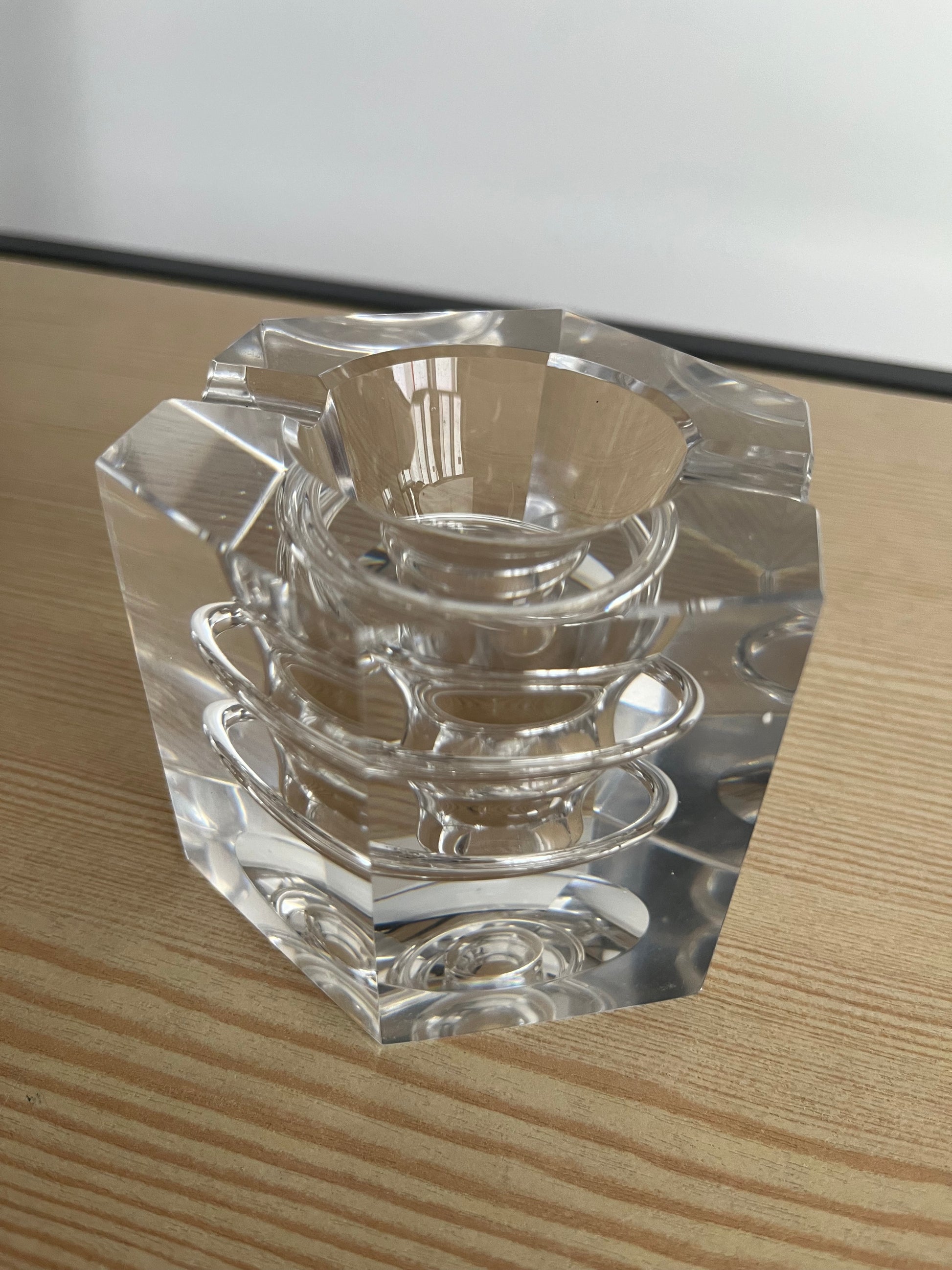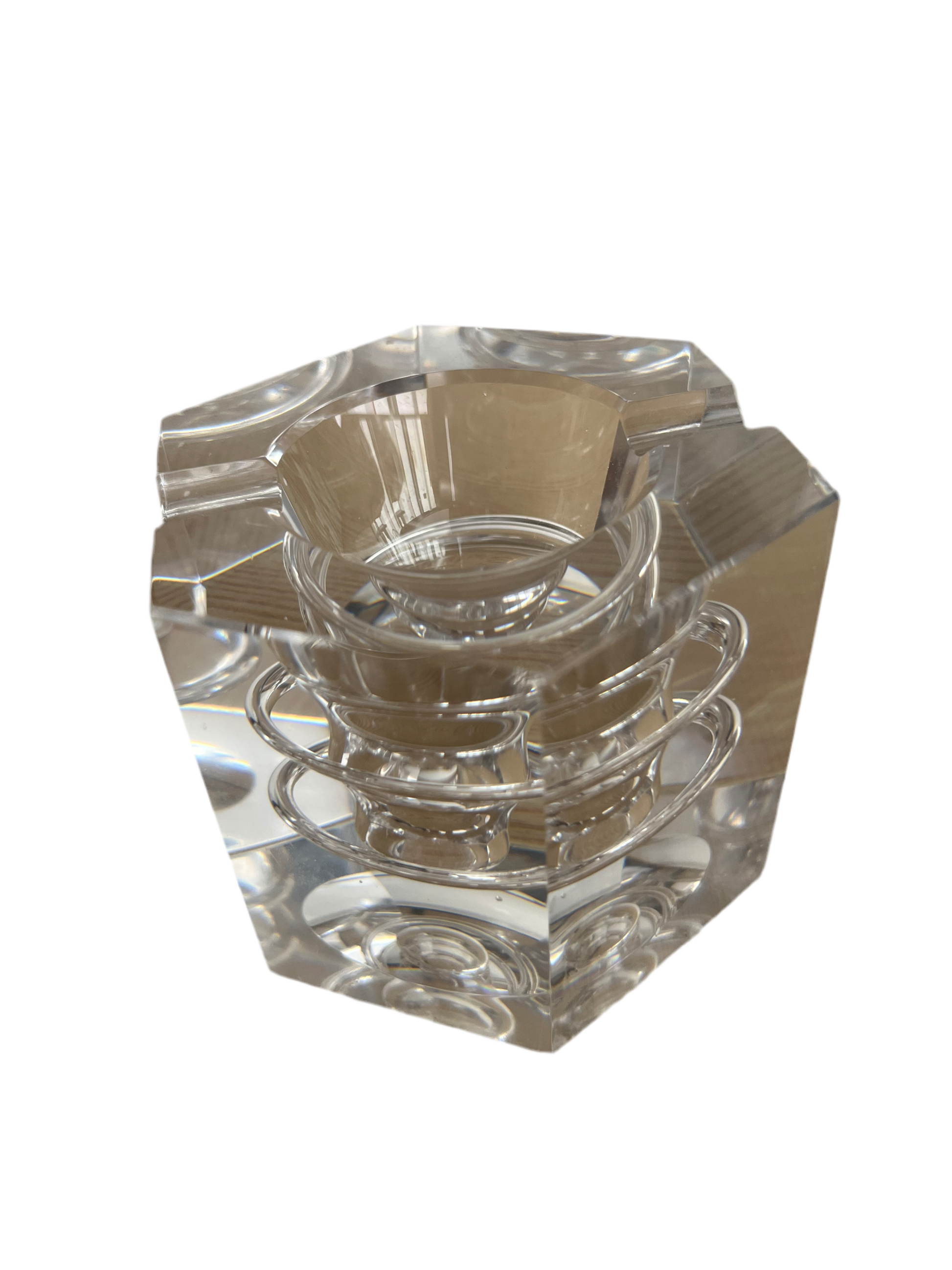 Ce cendrier en cristal autrefois utilisé également comme encrier est un ajout élégant à toute collection de décoration intérieure. Fabriqué avec du cristal de qualité supérieure, il est non seulement esthétique mais aussi résistant.