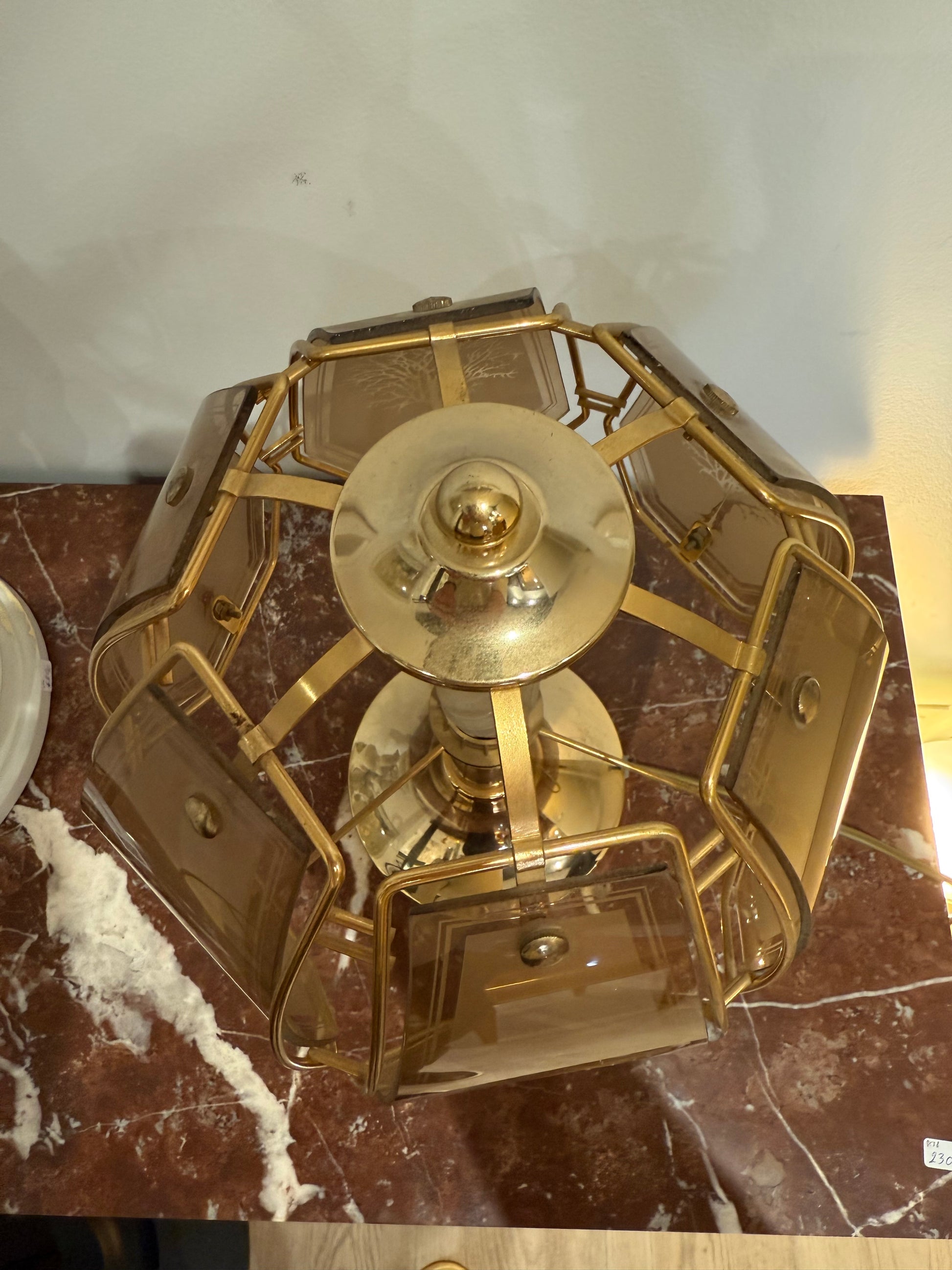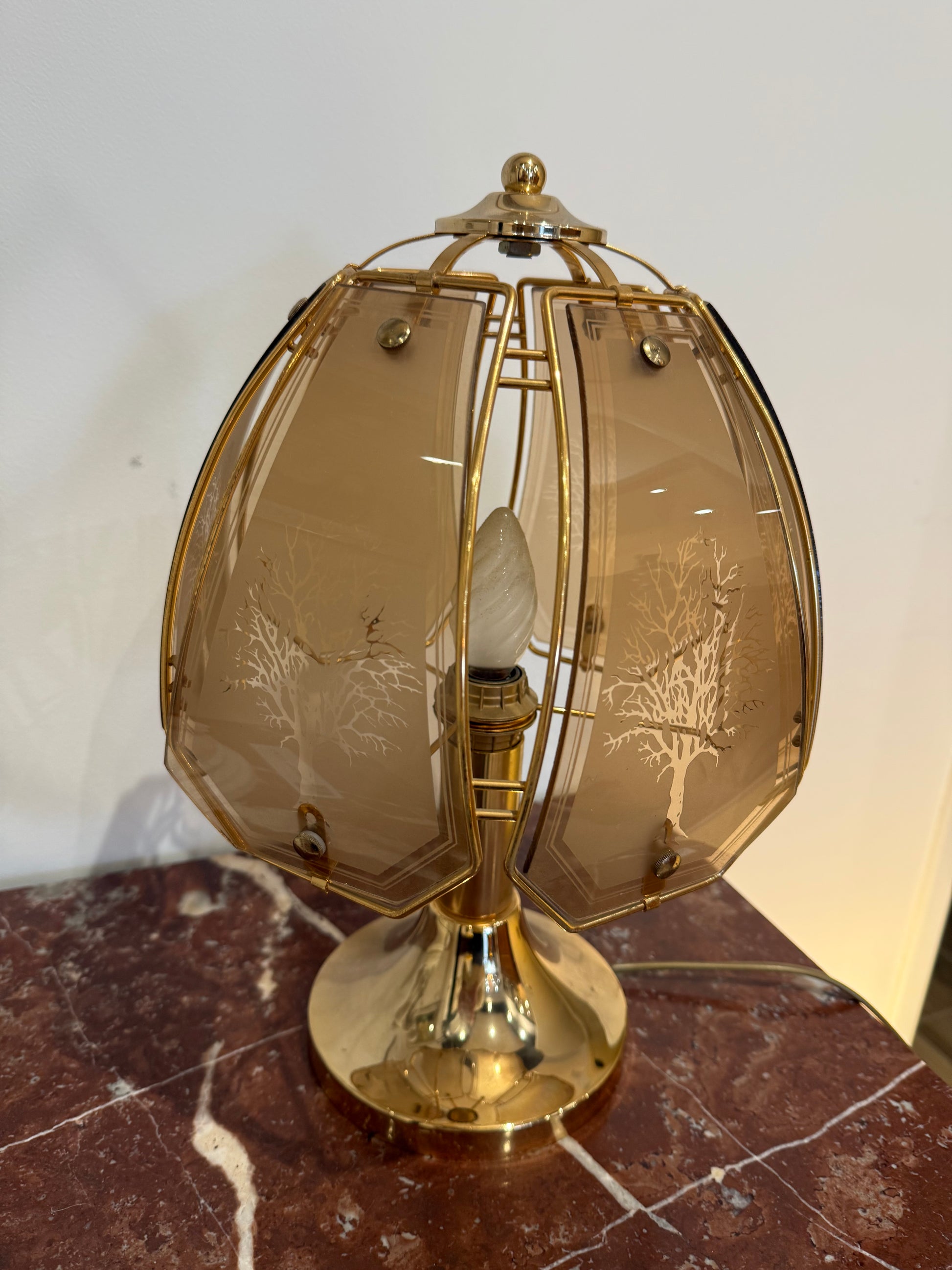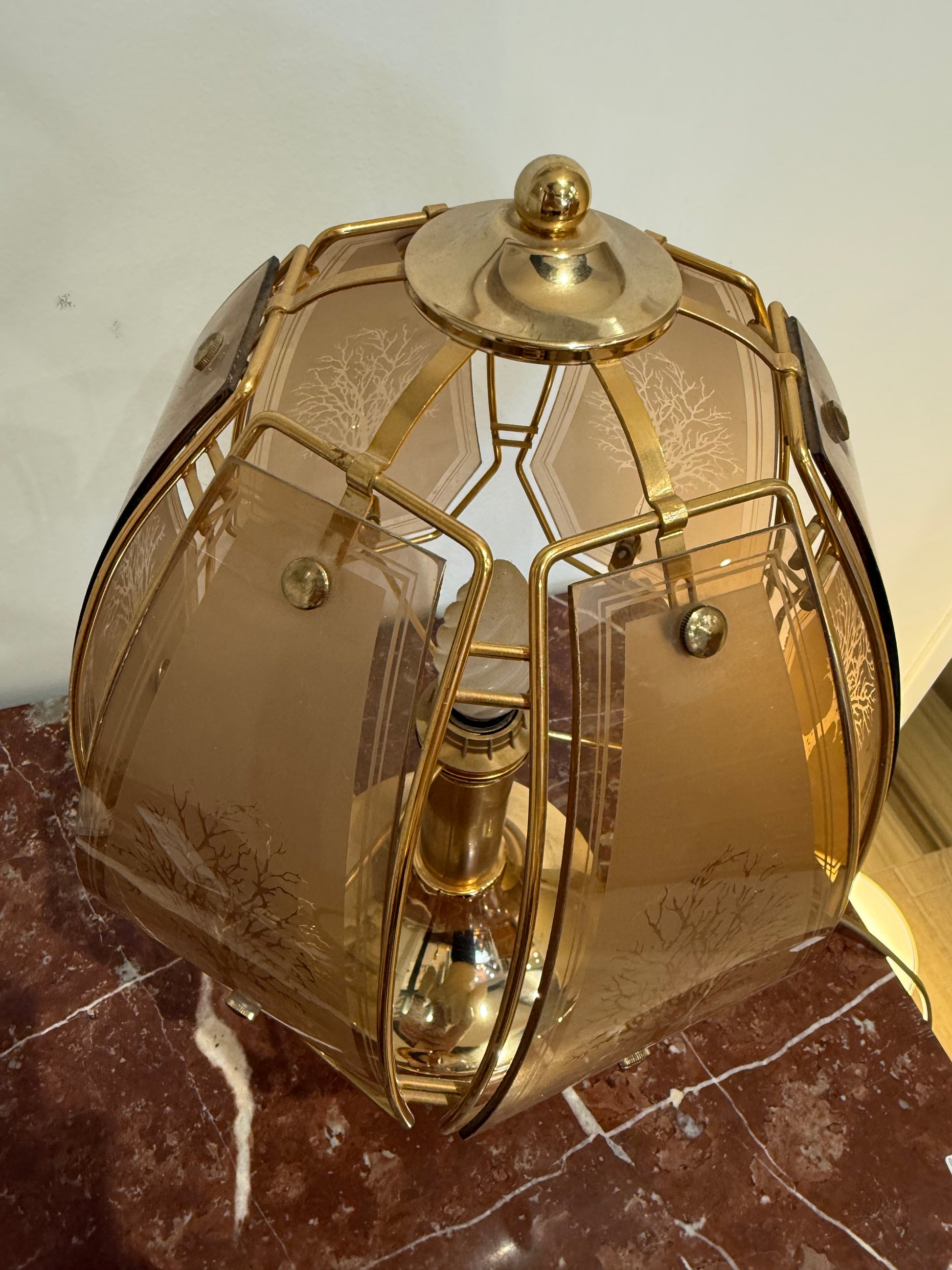 Lampe vintage en laiton et verre fumé gravé – Design Art Déco