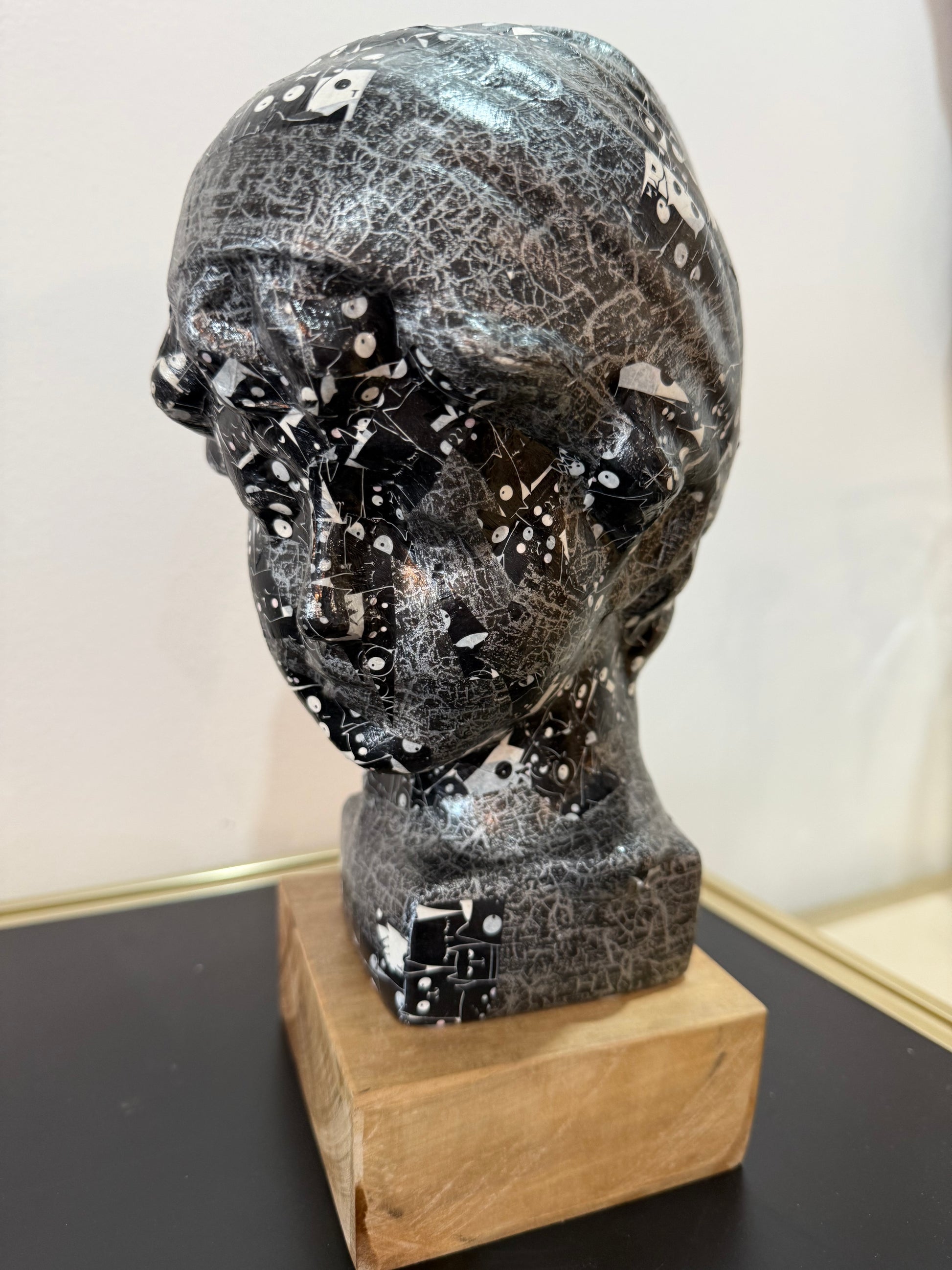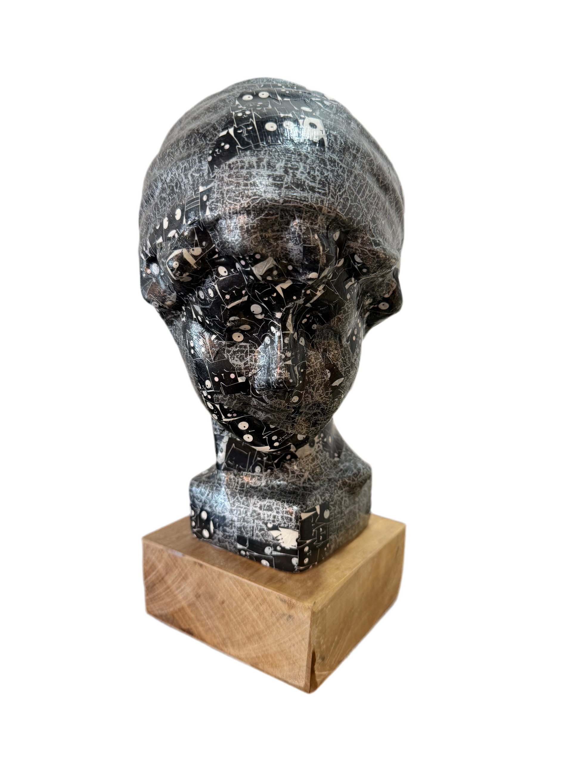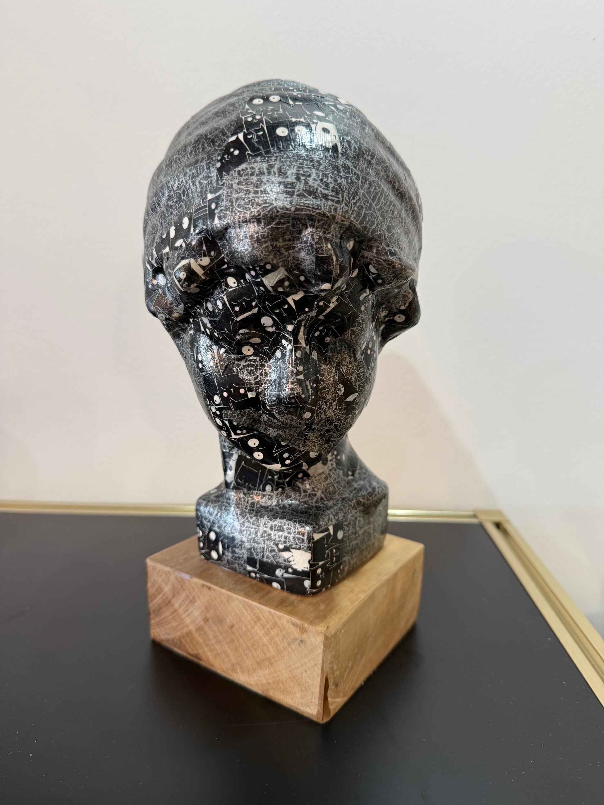 Monté sur un socle en bois naturel, ce buste devient une véritable pièce décorative, parfaite pour une bibliothèque, une étagère ou un coin arty de votre salon. Une création singulière pour les amateurs de déco contemporaine et d’objets atypiques.