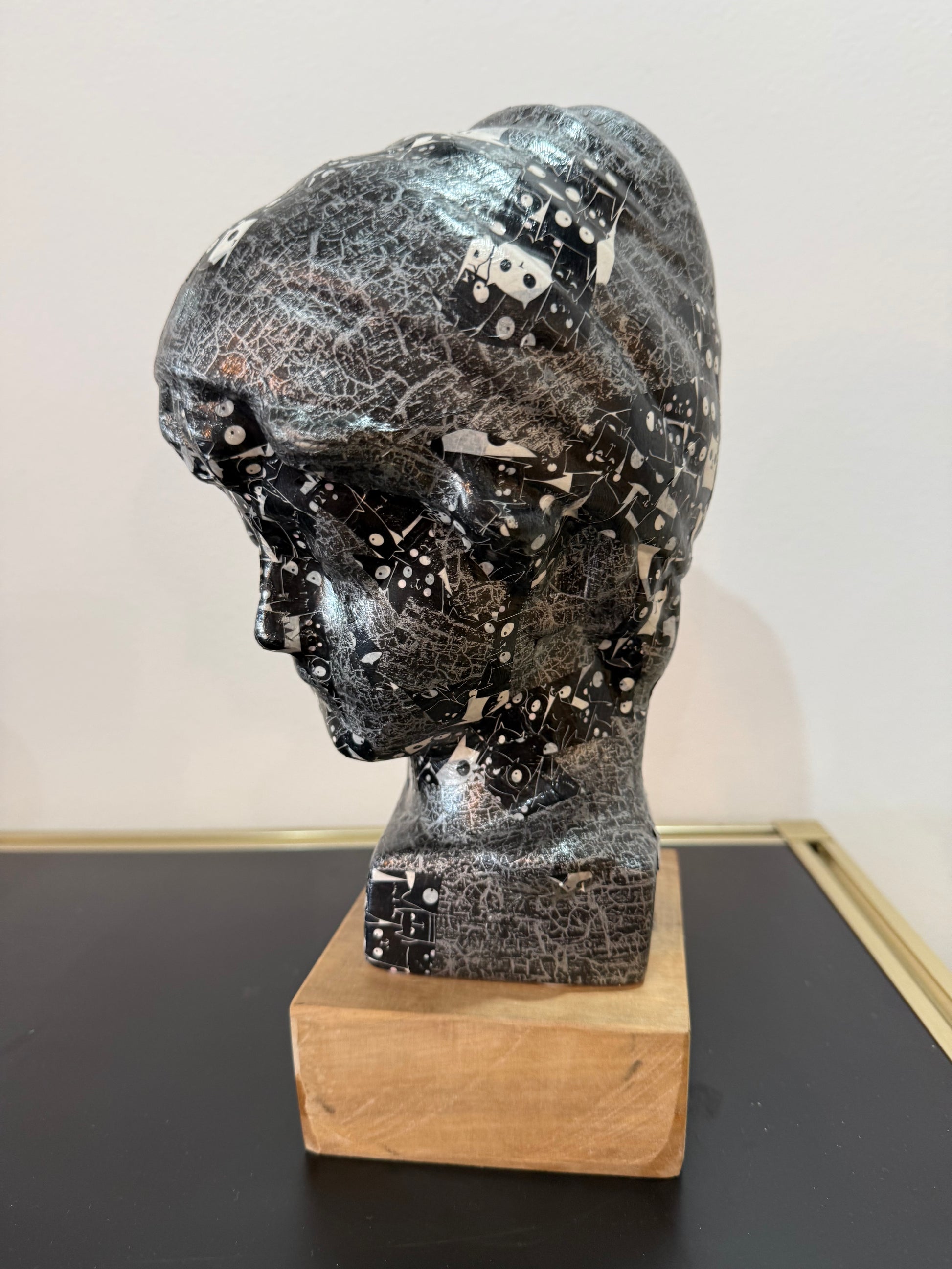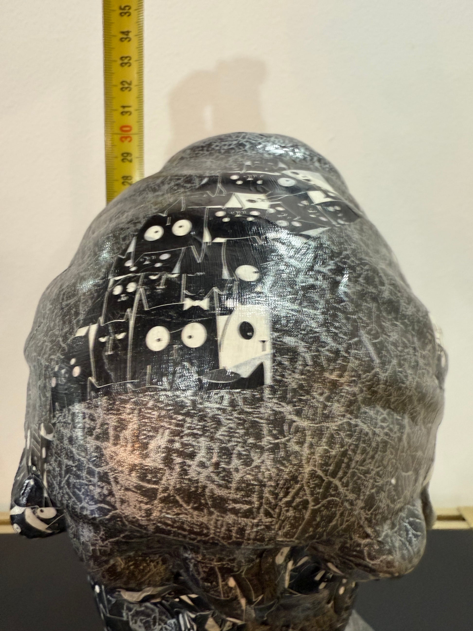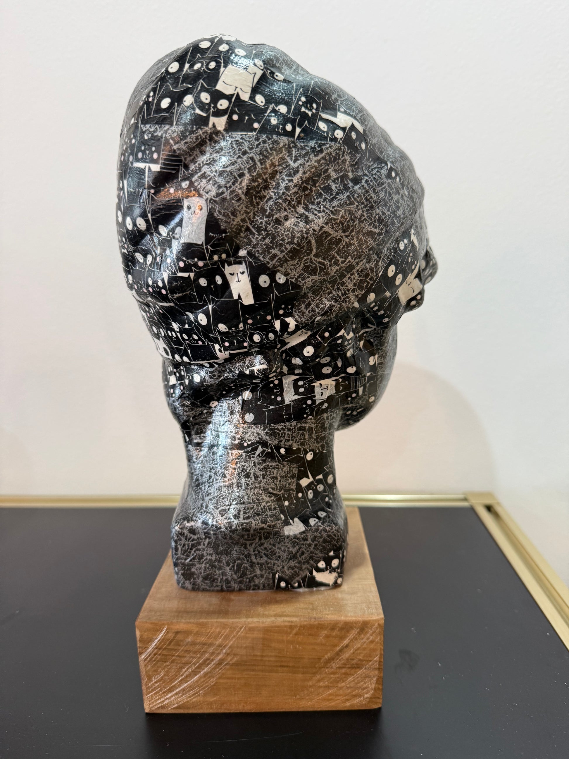 Monté sur un socle en bois naturel, ce buste devient une véritable pièce décorative, parfaite pour une bibliothèque, une étagère ou un coin arty de votre salon. Une création singulière pour les amateurs de déco contemporaine et d’objets atypiques.
