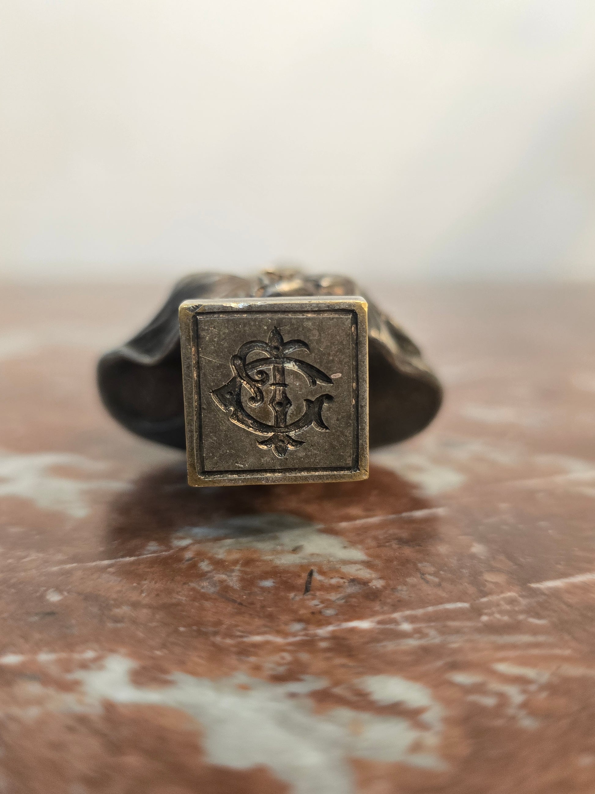 Sceau en bronze argenté - signé houdon -Cachet de cire - Buste de Diane - Fonderie Susse Frères Paris