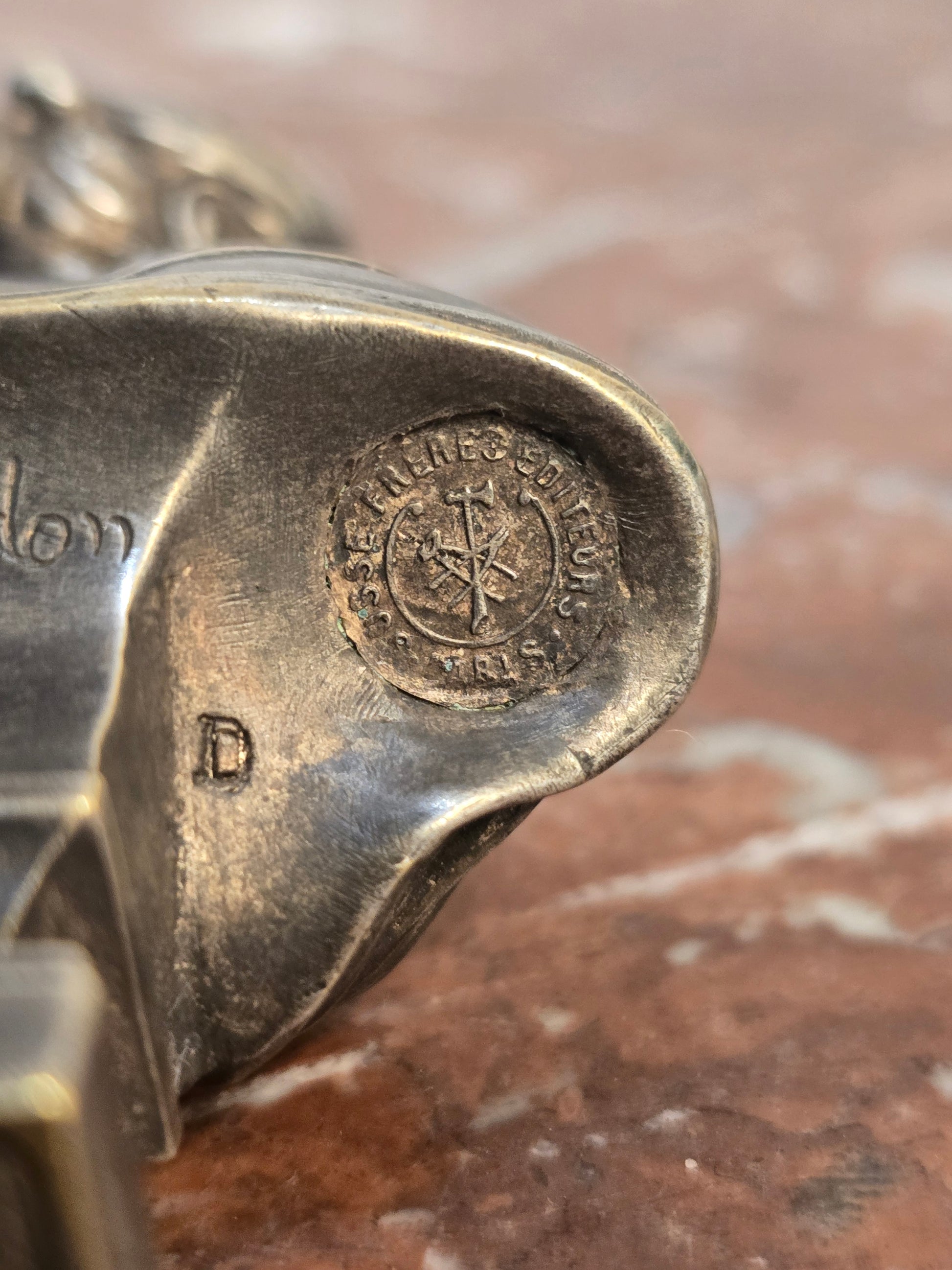 Le cachet présente un magnifique travail de ciselure, mettant en valeur les détails du visage et de la coiffure de Diane, ainsi que la finesse de la patine argentée. La base est marquée du sceau distinctif de la fonderie avec l'inscription "Susse Frères Éditeurs Paris", gage d'authenticité et de qualité.