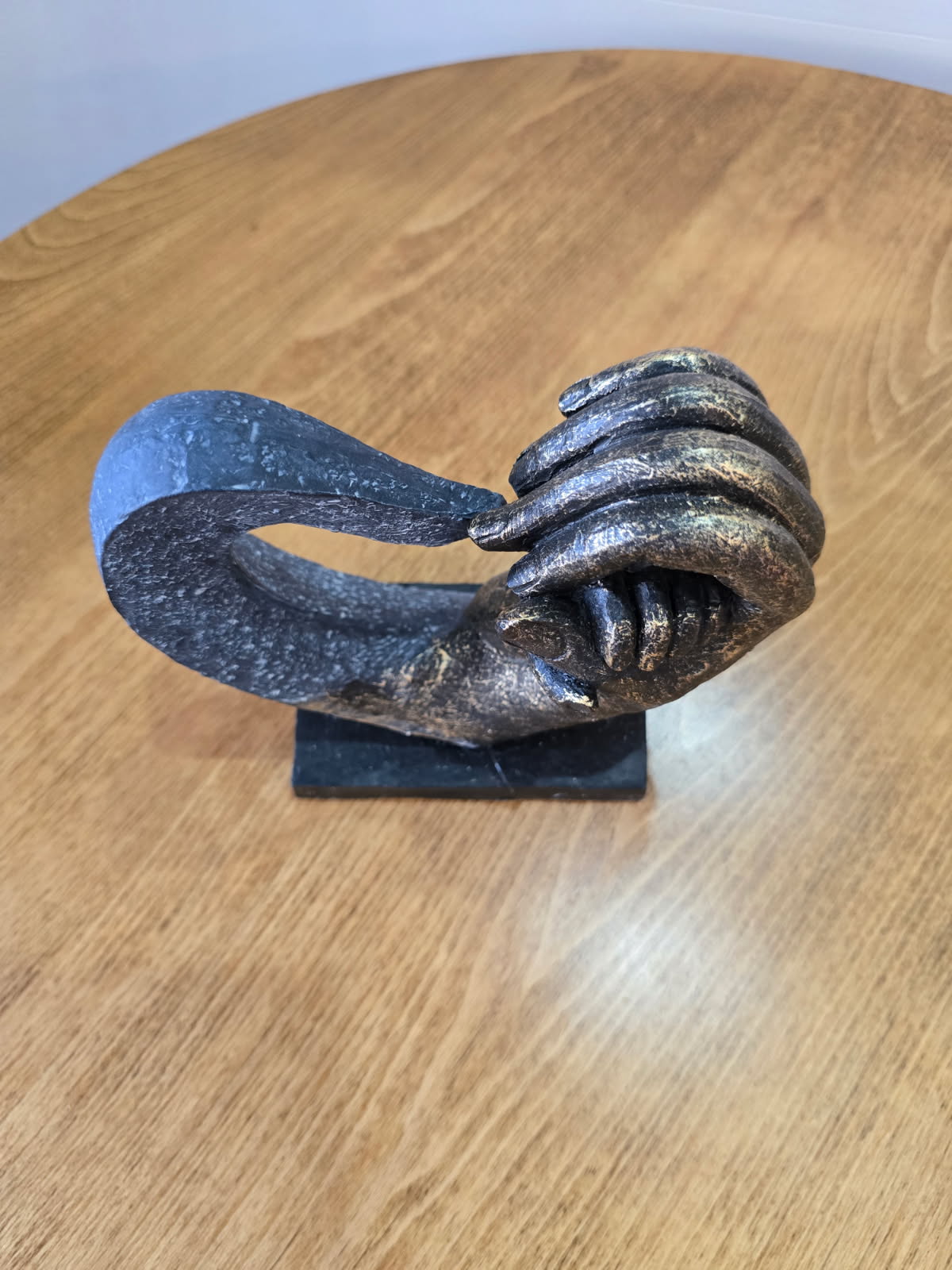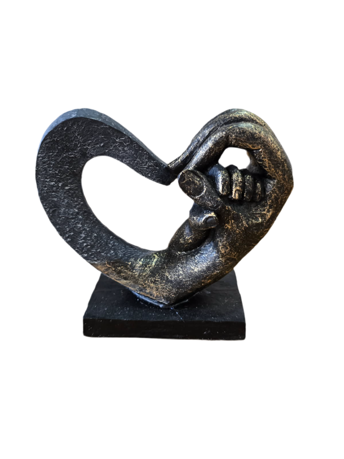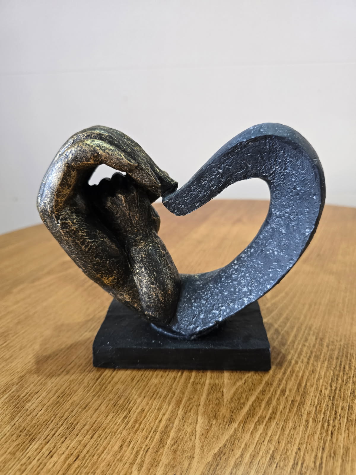 La sculpture « Hands of Love » est une représentation touchante de l'amour et de la connexion. Avec le motif des mains se tenant, il symbolise la puissance et la beauté des relations interpersonnelles. Fabriquée à partir de résine bronze et grise avec une finition antique, cette sculpture s'intégrera parfaitement dans n'importe quel intérieur de maison. La forme du cœur et les dimensions de 7x16x14 cm en font un cadeau idéal pour des occasions spéciales ou pour votre propre décoration. La couleur noire donne à la sculpture une touche élégante et attire tous les regards. Chaque pièce est fabriquée à la main et nommée « Hands of Love », garantissant un style unique et une profondeur émotionnelle. Laissez-vous inspirer par cette œuvre d'art extraordinaire et apportez amour et chaleur dans votre maison.