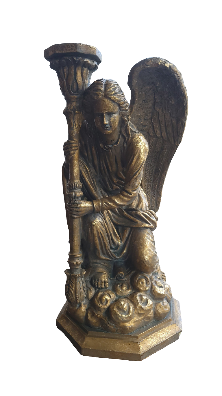 Sculpture d’ange agenouillé avec candélabre – Résine dorée