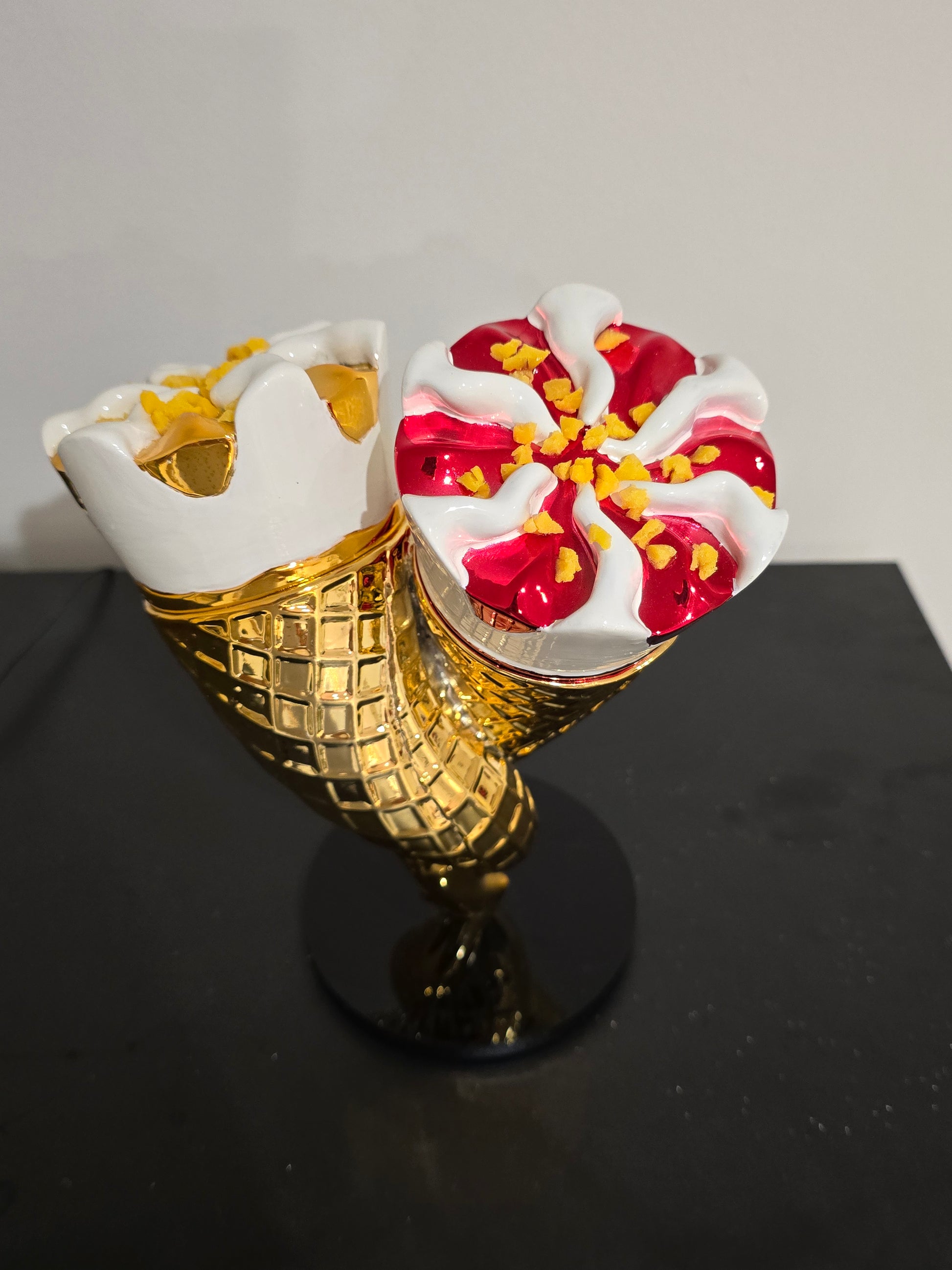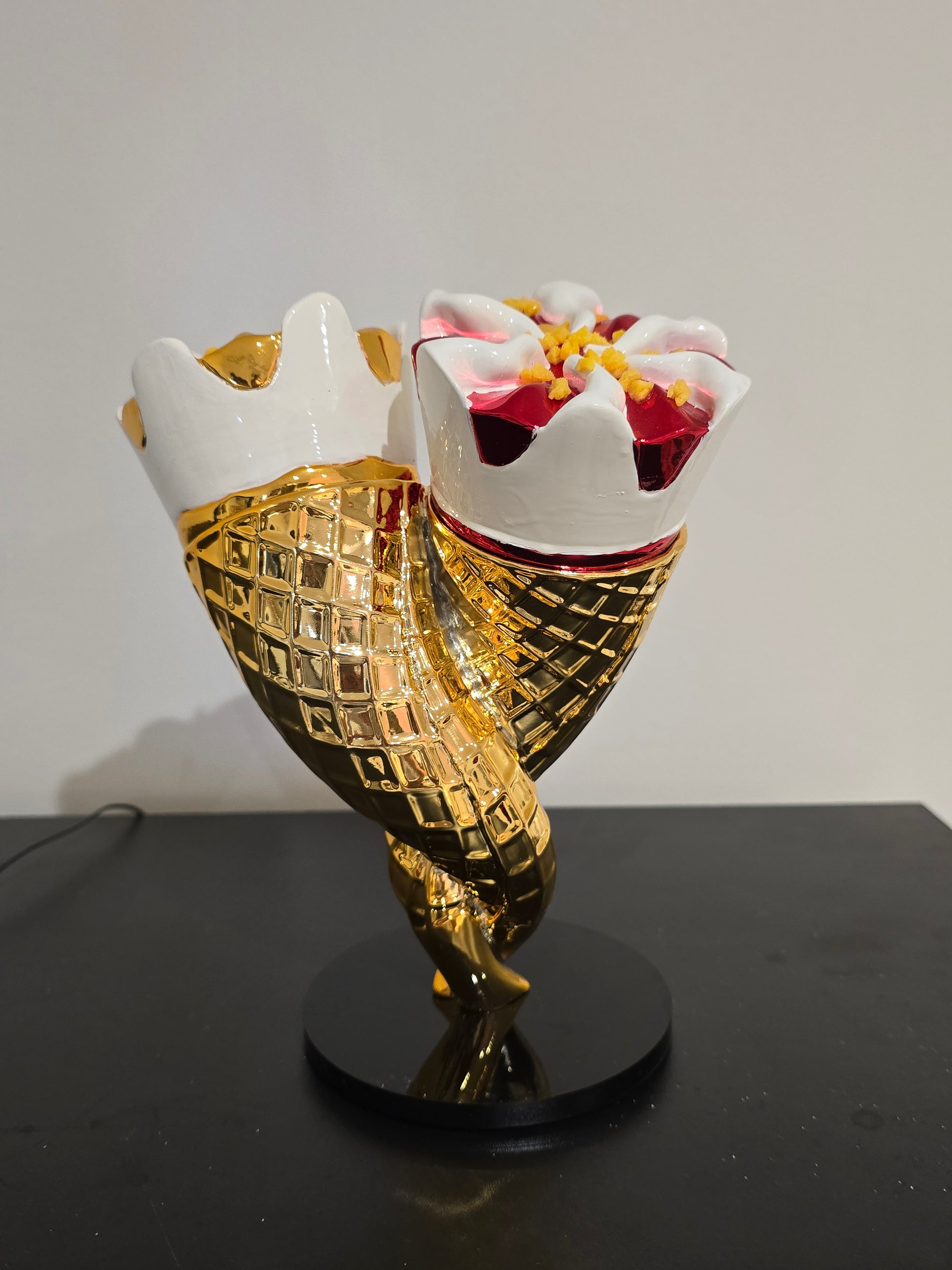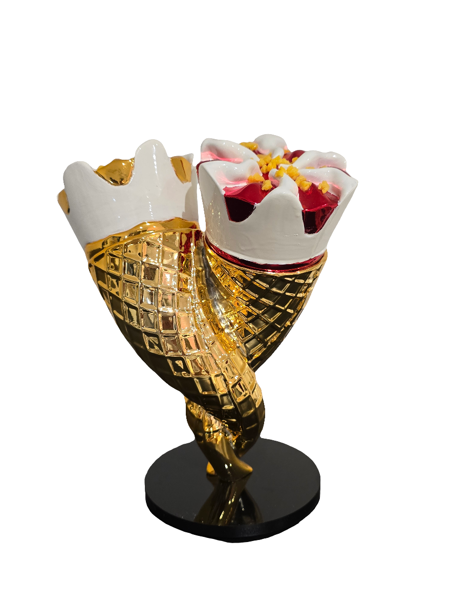 La sculpture en résine "forever" de Sagrasse est une œuvre fascinante représentant deux sorbets s'entrelaçant.