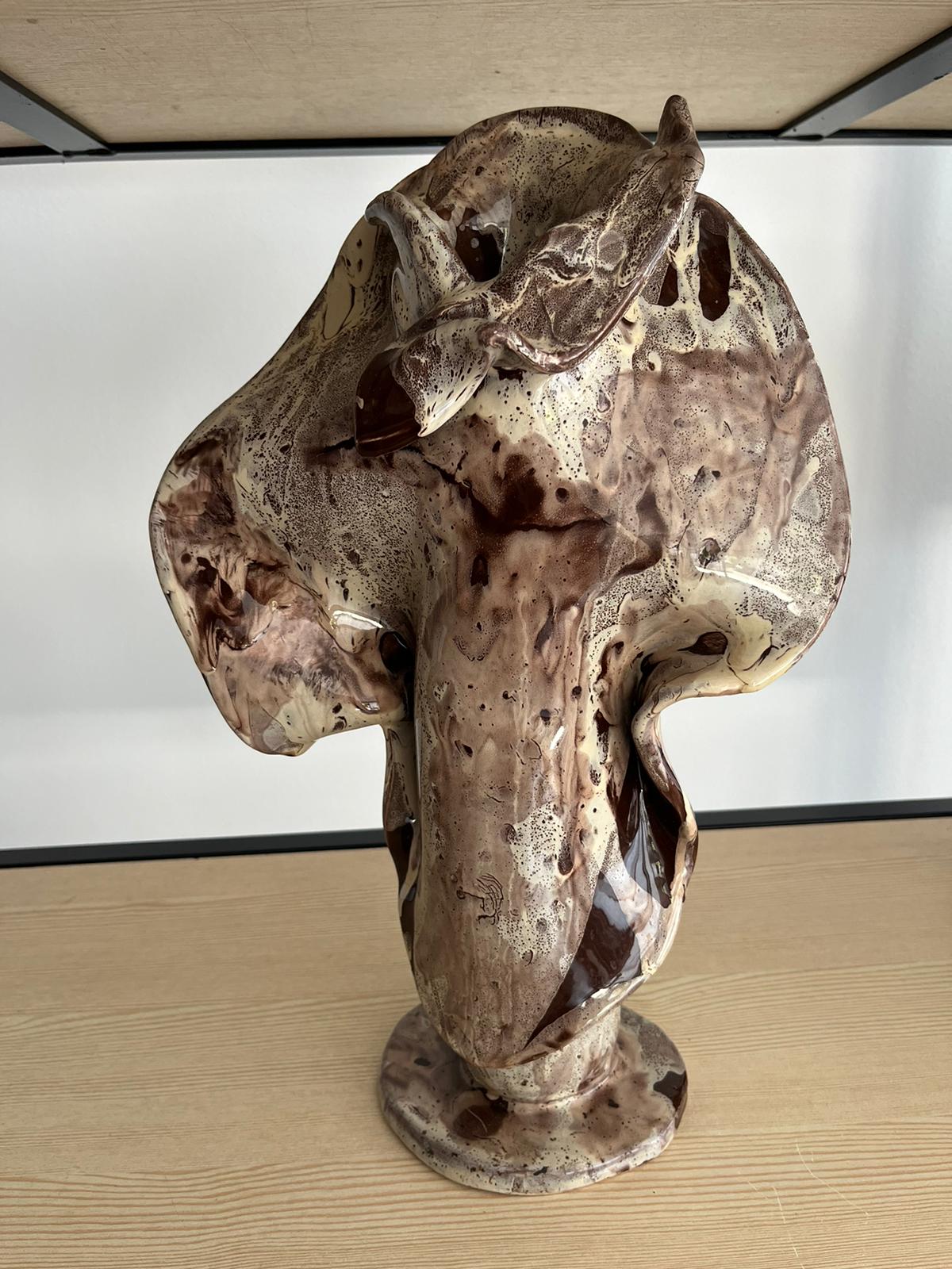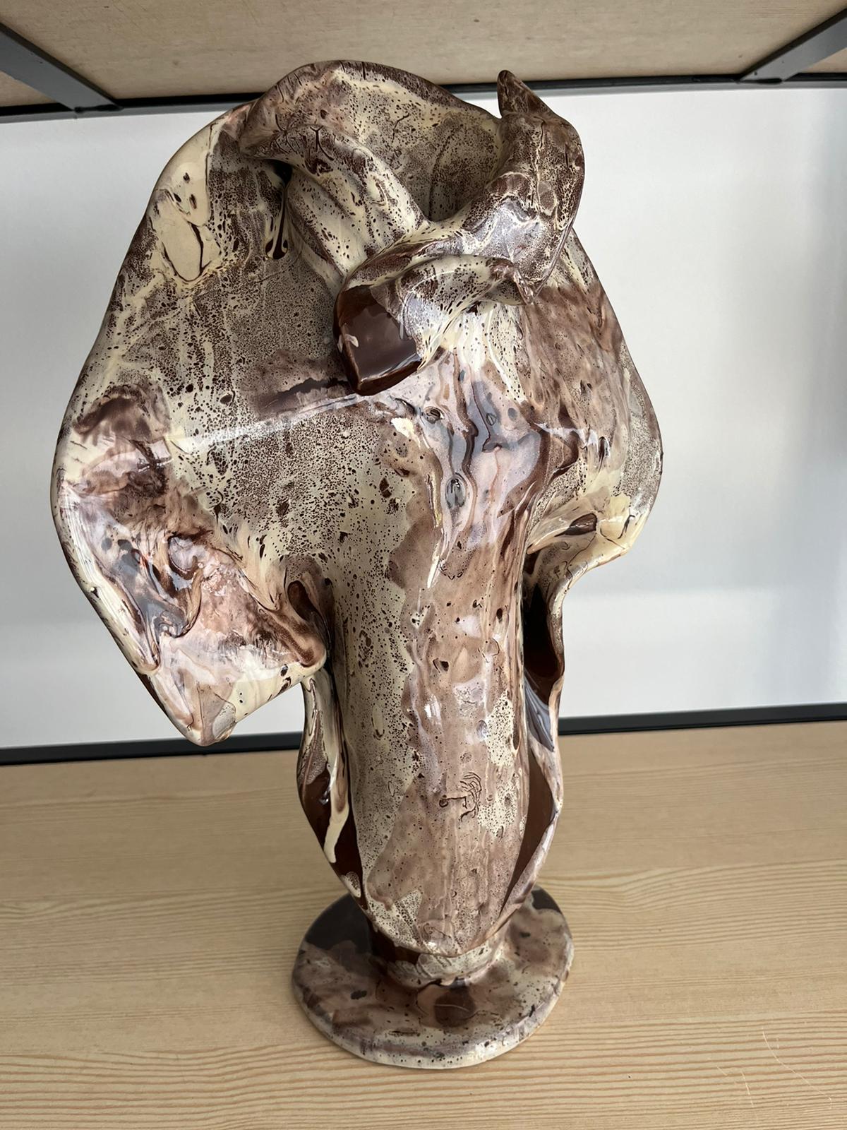Cette sculpture de vase signée est une pièce très originale pour votre maison. Fabriqué avec soin, ce vase est non seulement un bel objet décoratif, mais également un témoignage de la créativité de l'artiste. Apportez une touche unique à votre décoration intérieure avec ce vase sculpture.