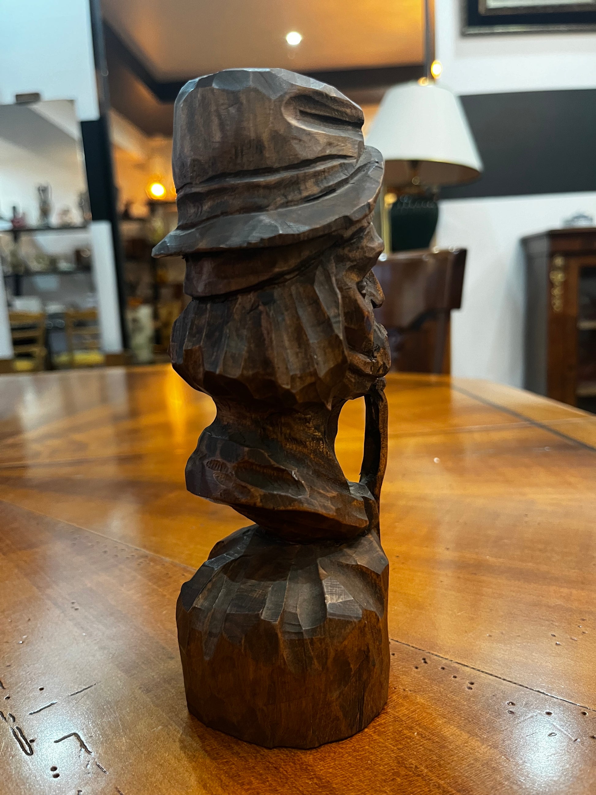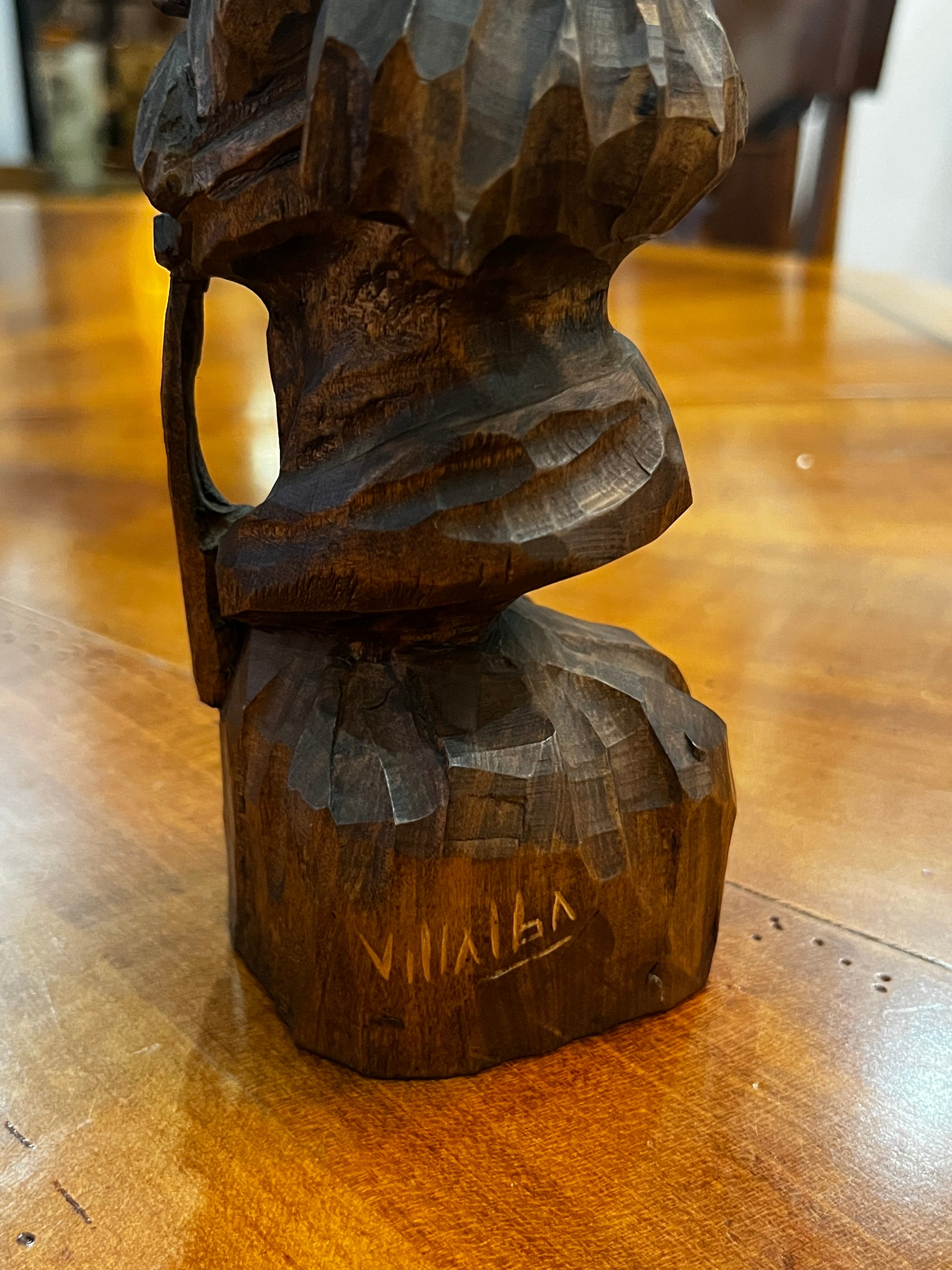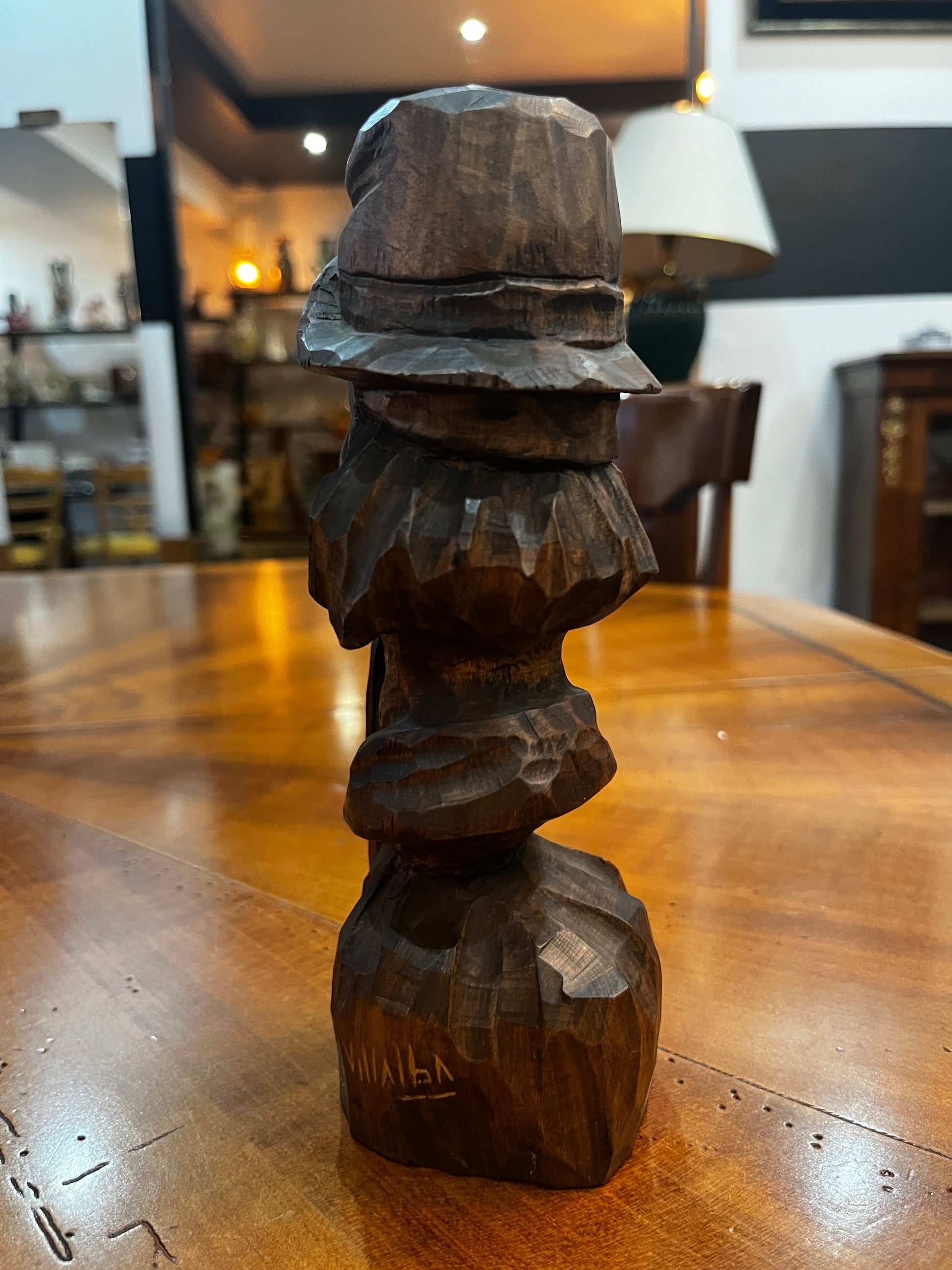 Cette sculpture en bois massif sculptée à la main est une œuvre d'art signée par Villalba. Chaque détail est soigneusement travaillé pour créer une pièce unique et authentique.