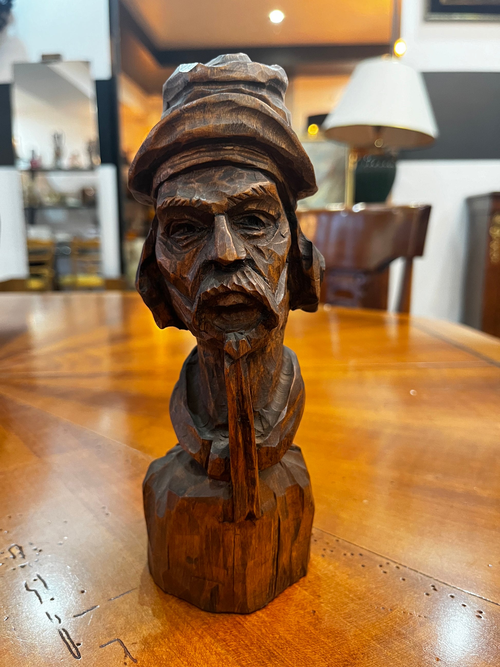 Sculpture tête en bois signé Villalba