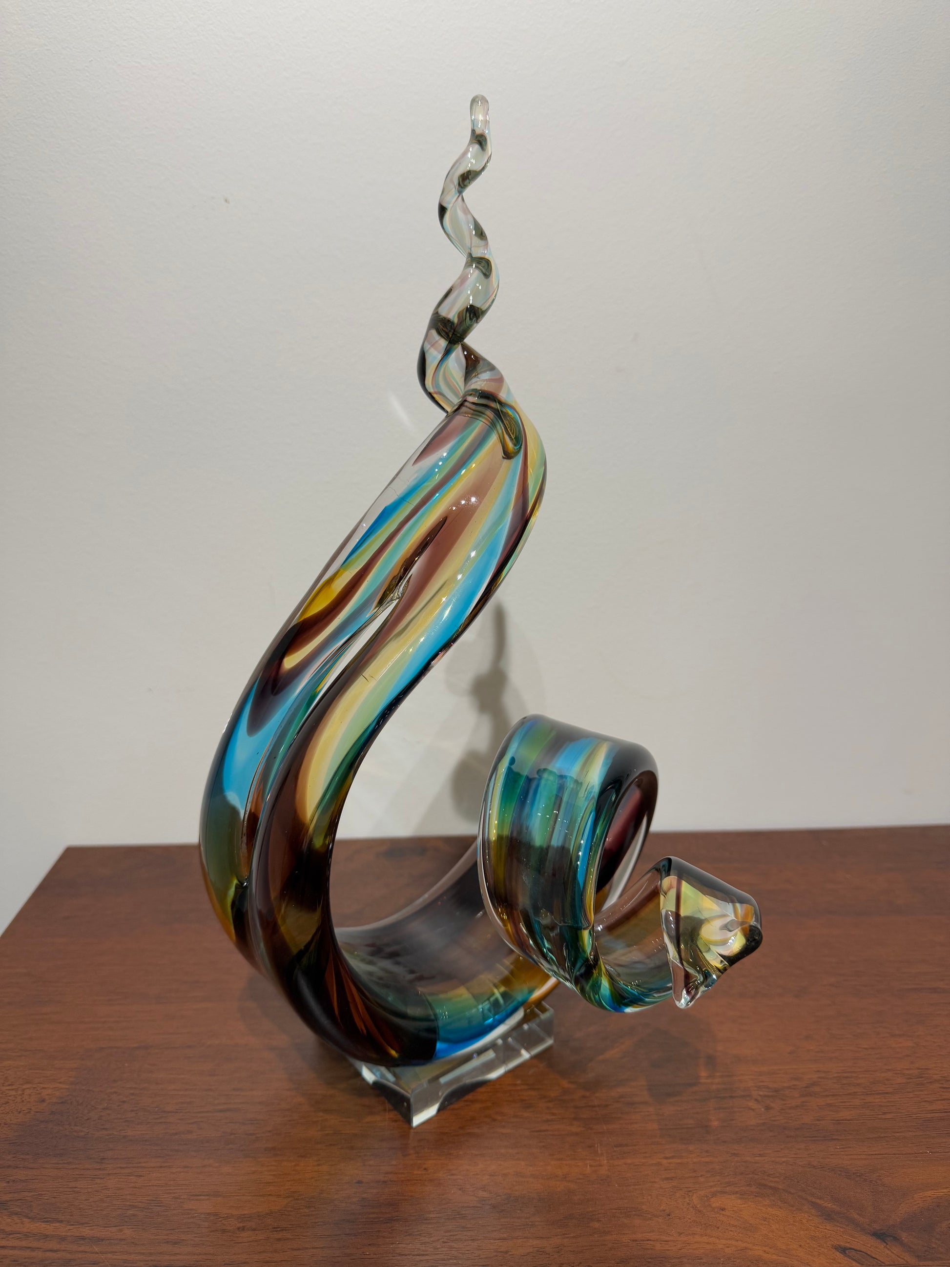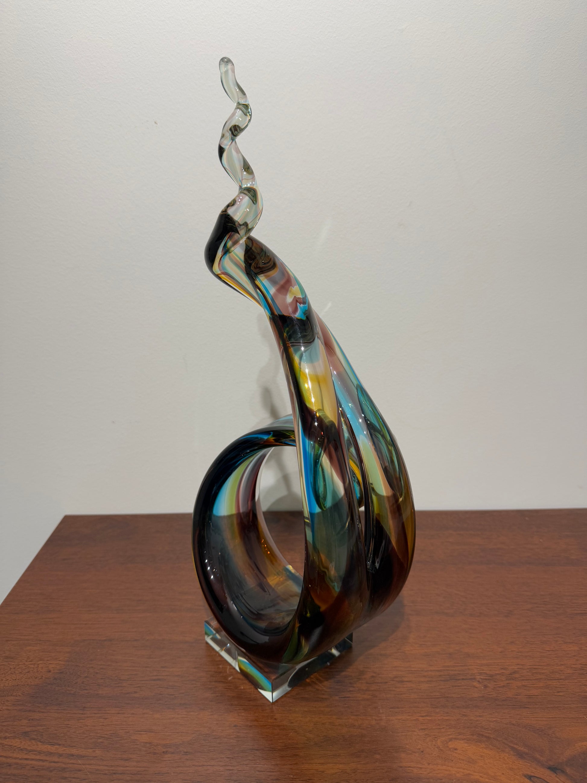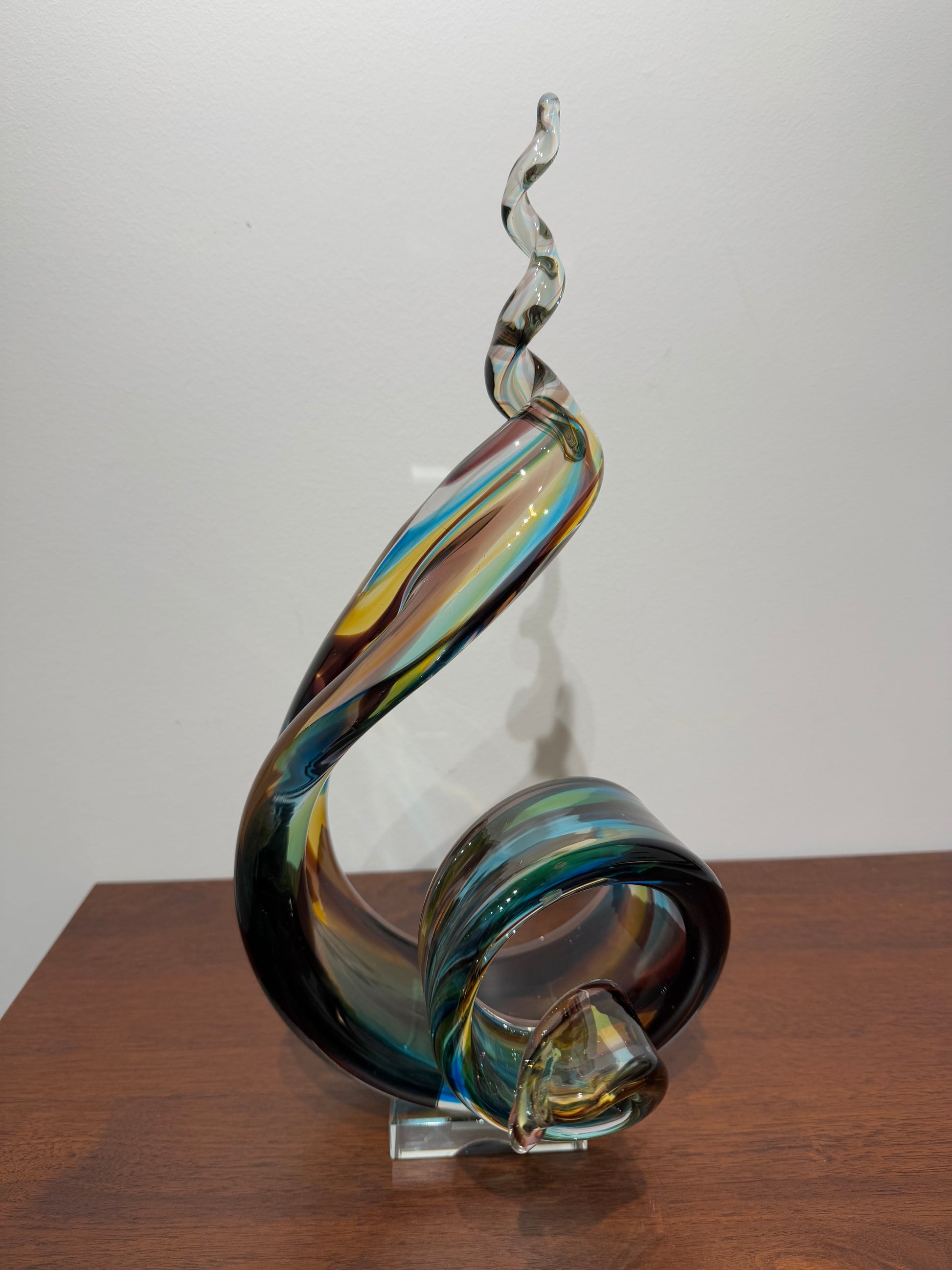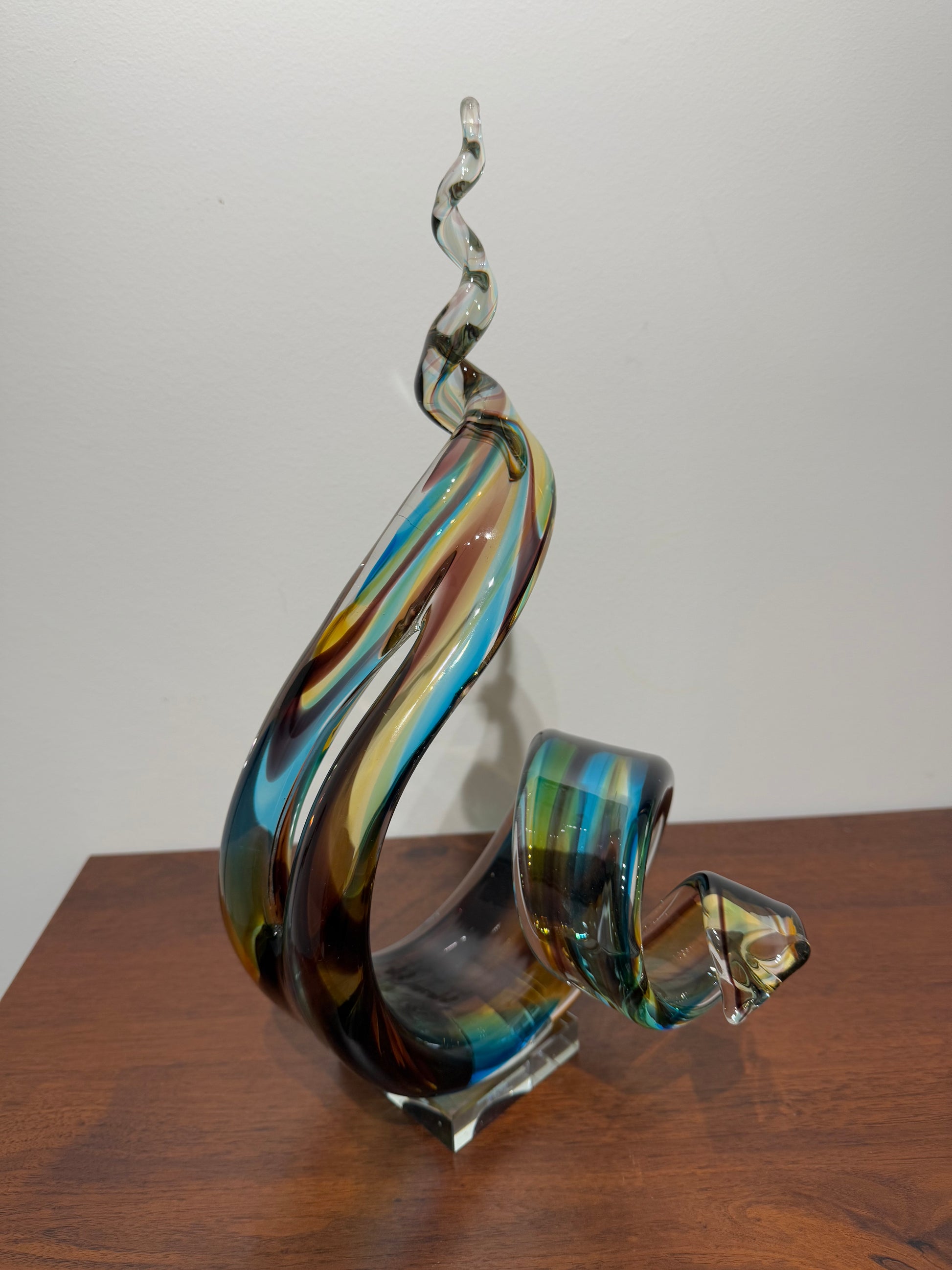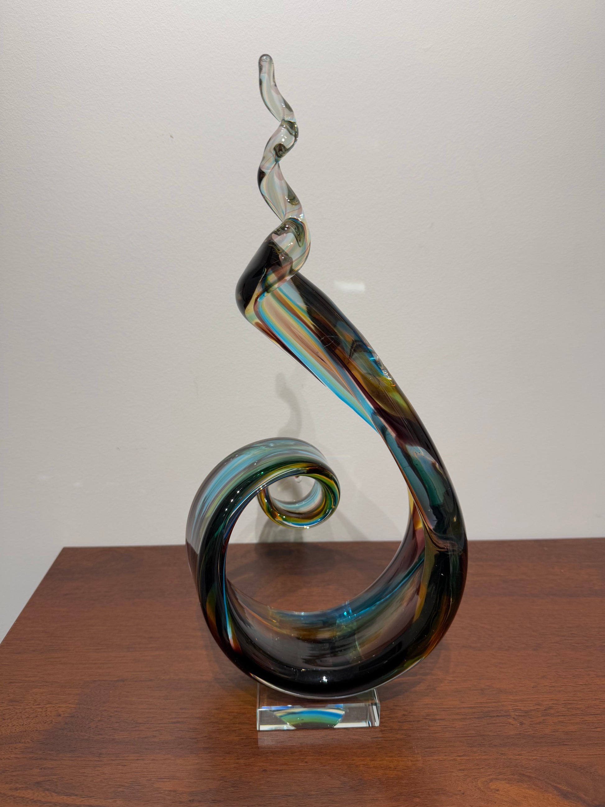 Sculpture appelée Marea en verre coloré soufflé à la bouche