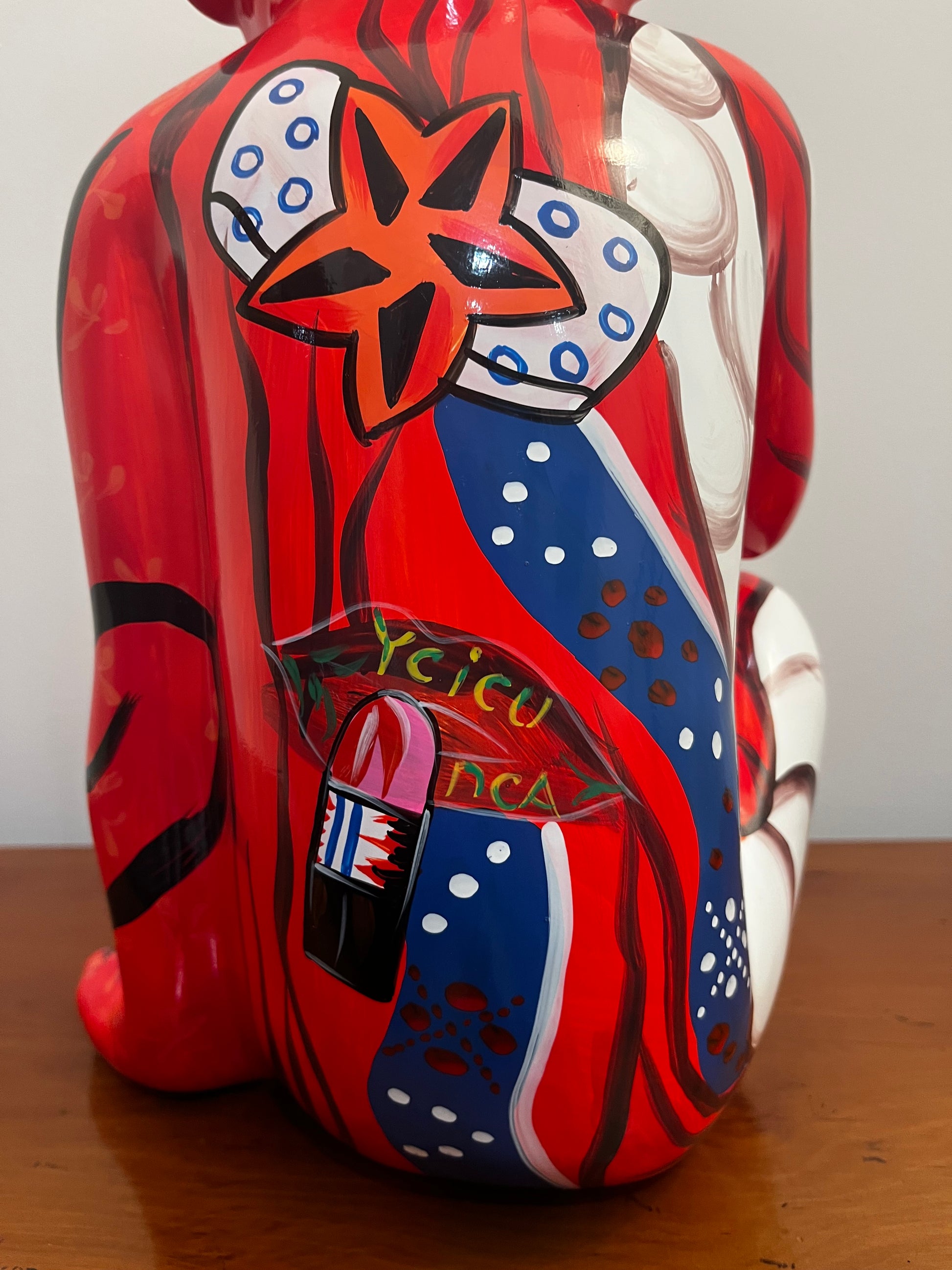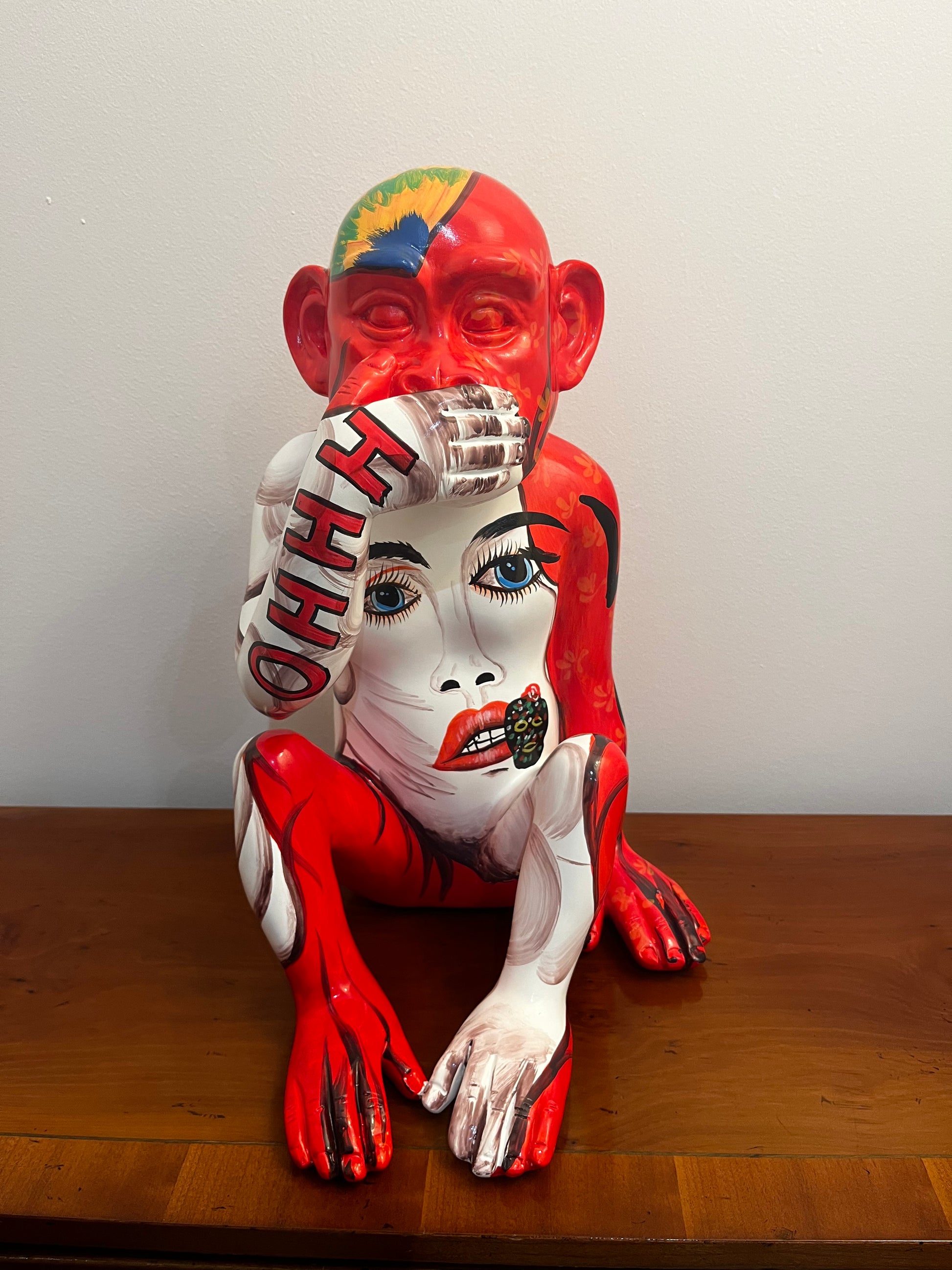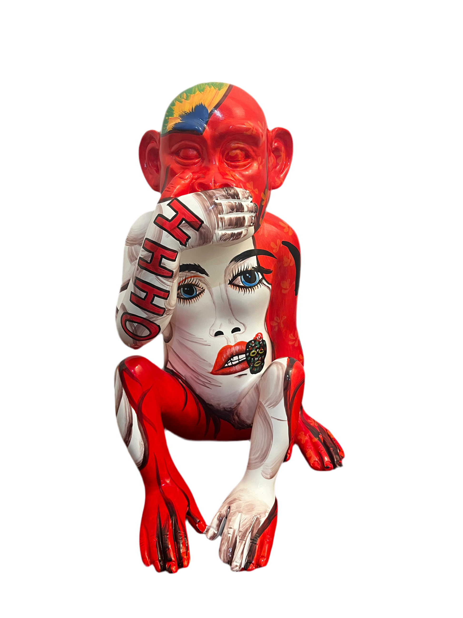 Cette sculpture de singe unique "urban street monkey" en résine synthétique en rouge et blanc est un véritable accroche-regard pour n'importe quel intérieur.