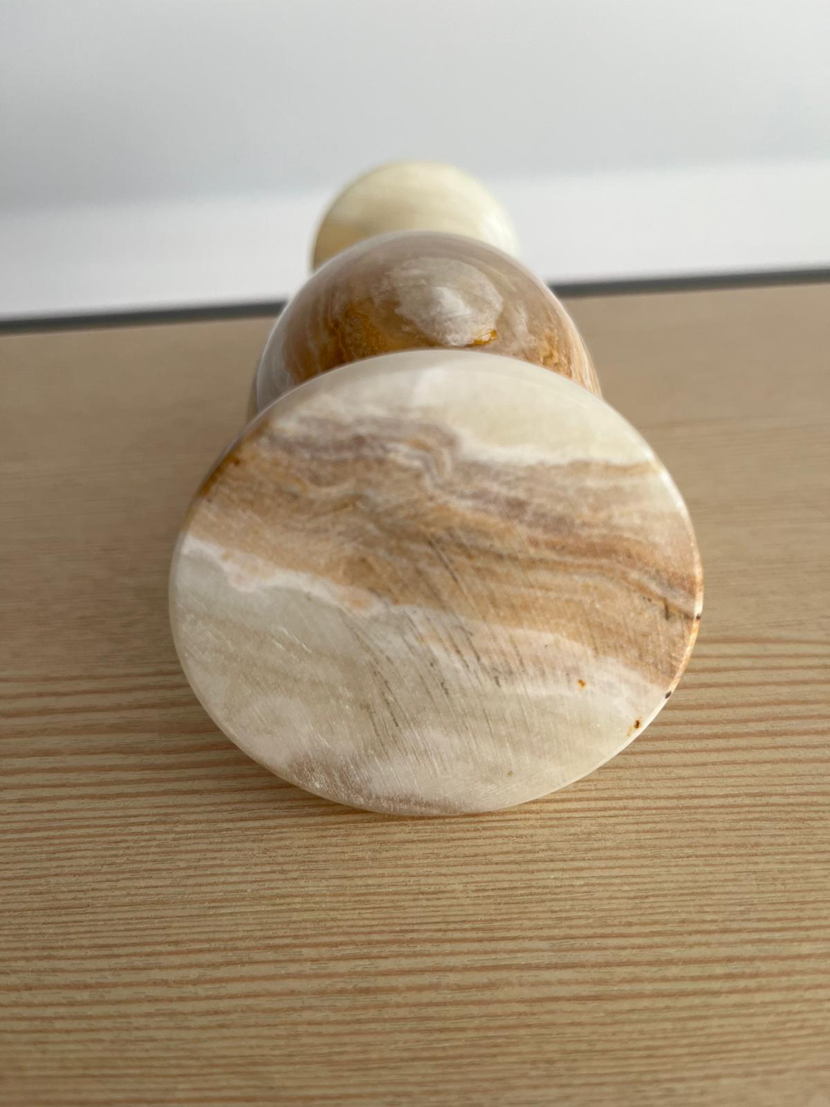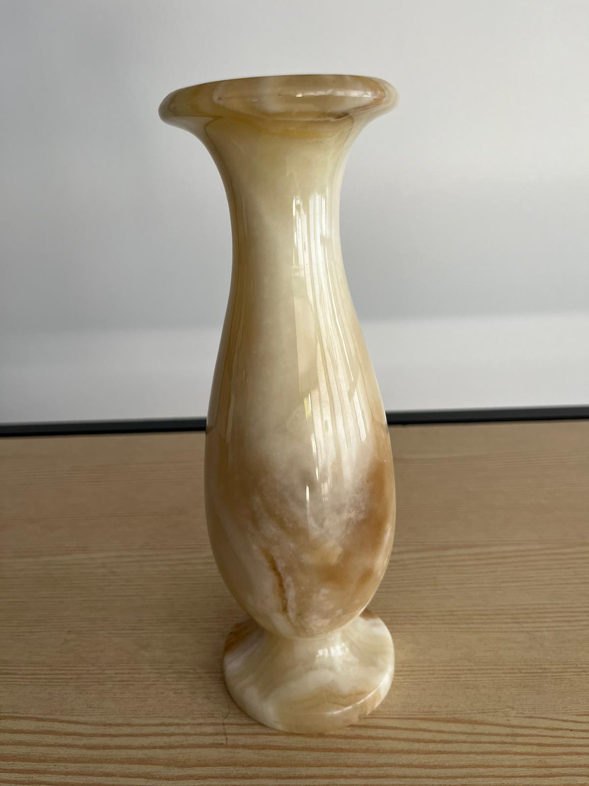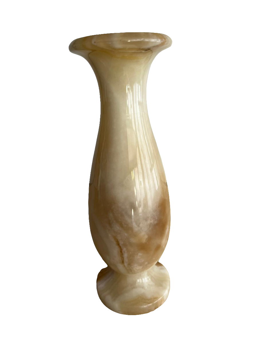 Soliflore décoratif en onyx / albâtre – Veines naturelles beige et miel – H. 20 cm