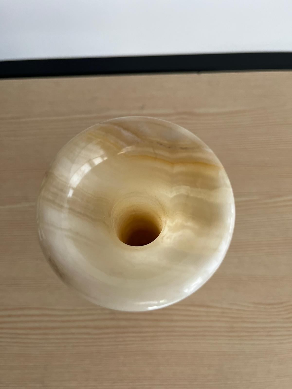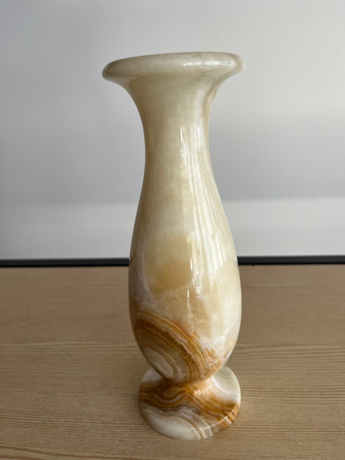 Élégant vase en pierre naturelle (onyx/albâtre), sculpté et poli à la main.