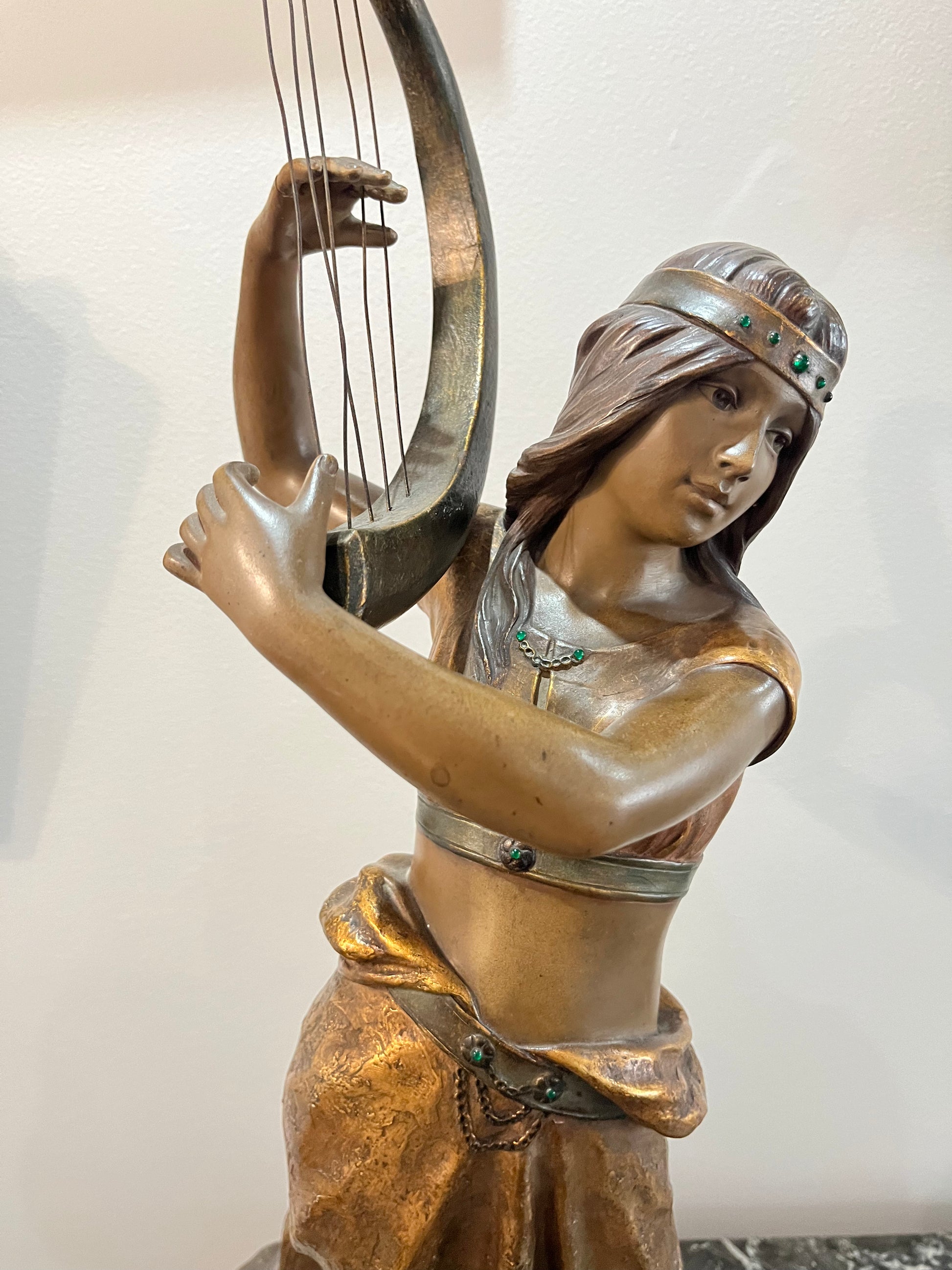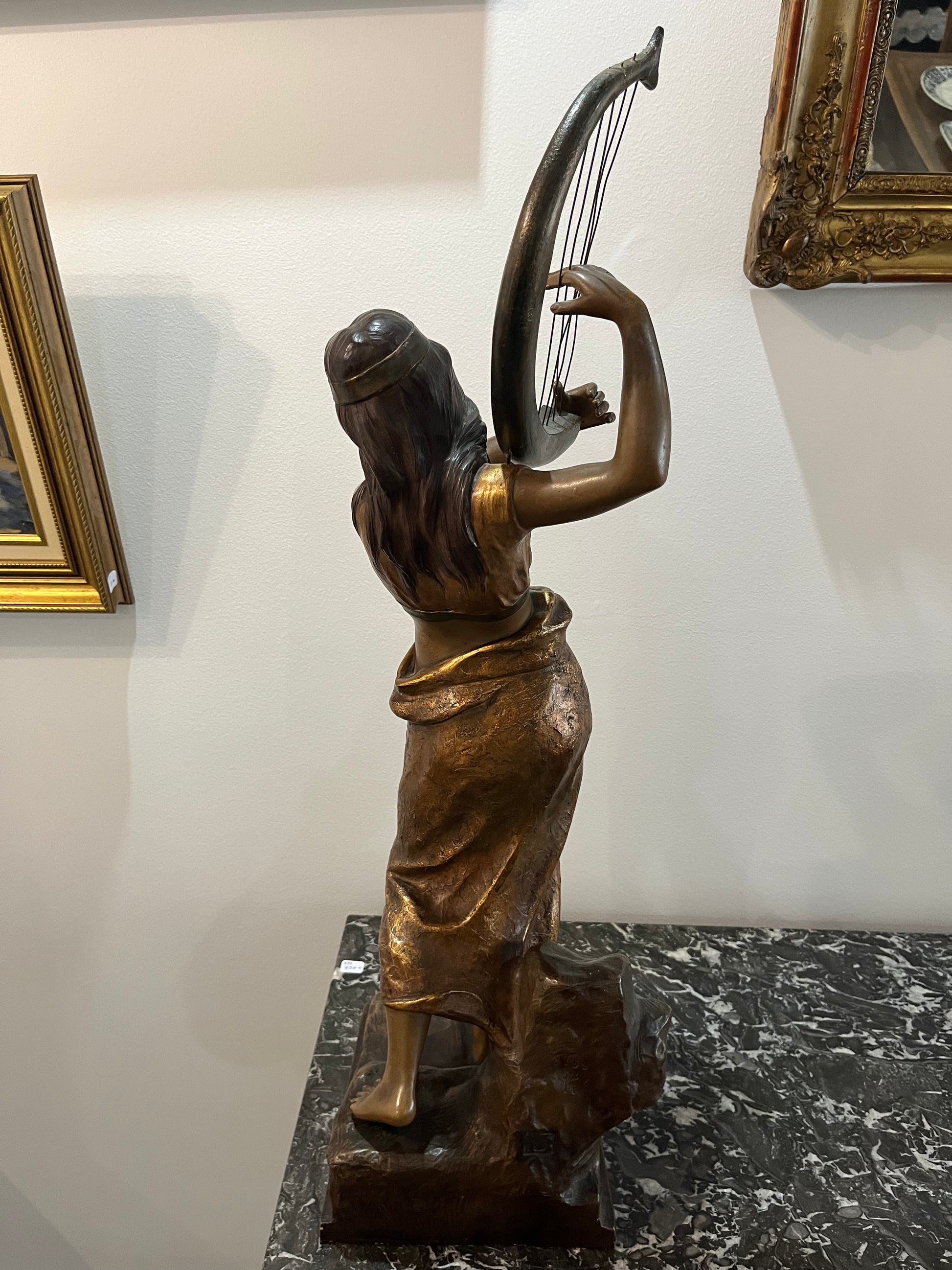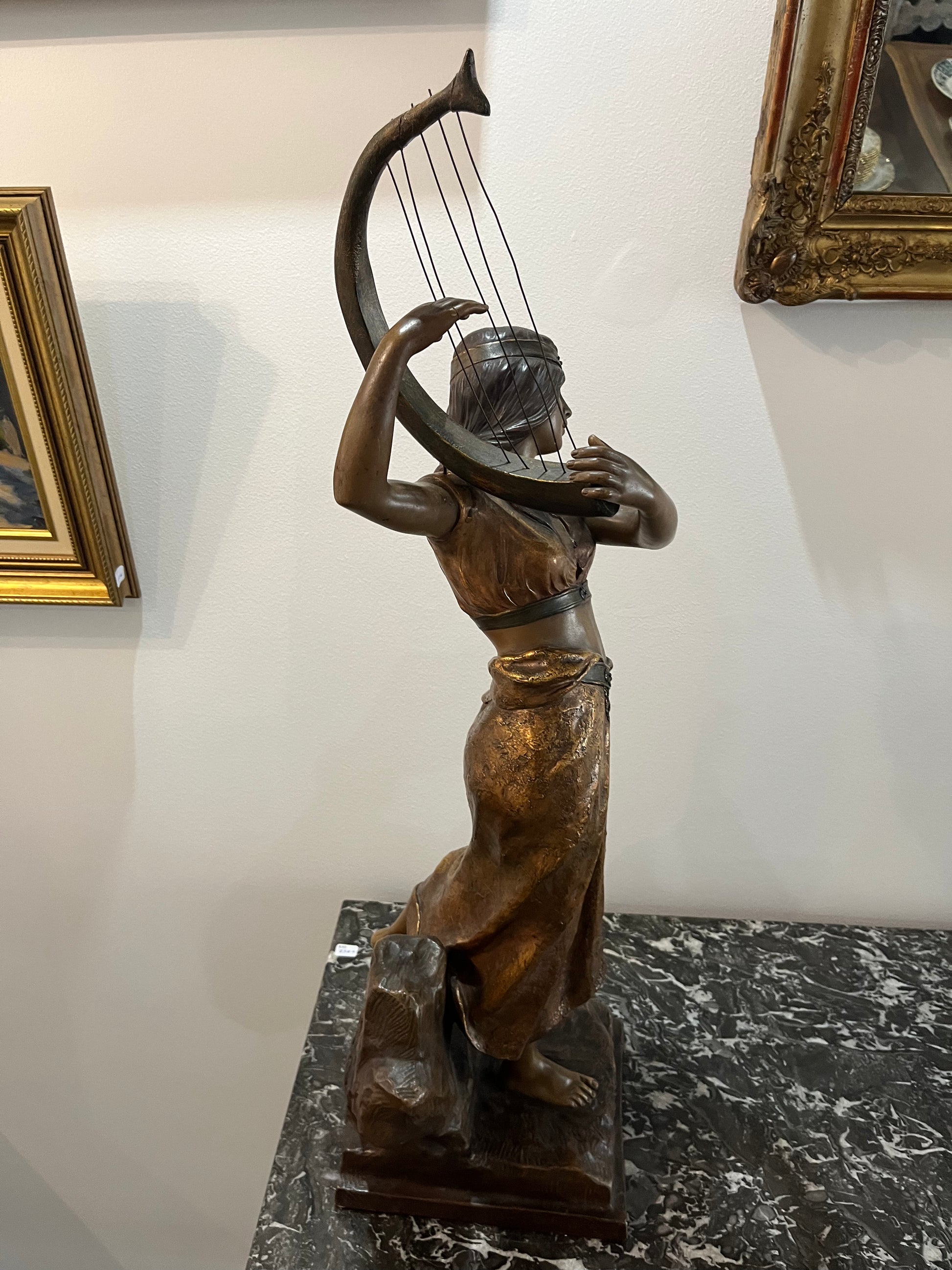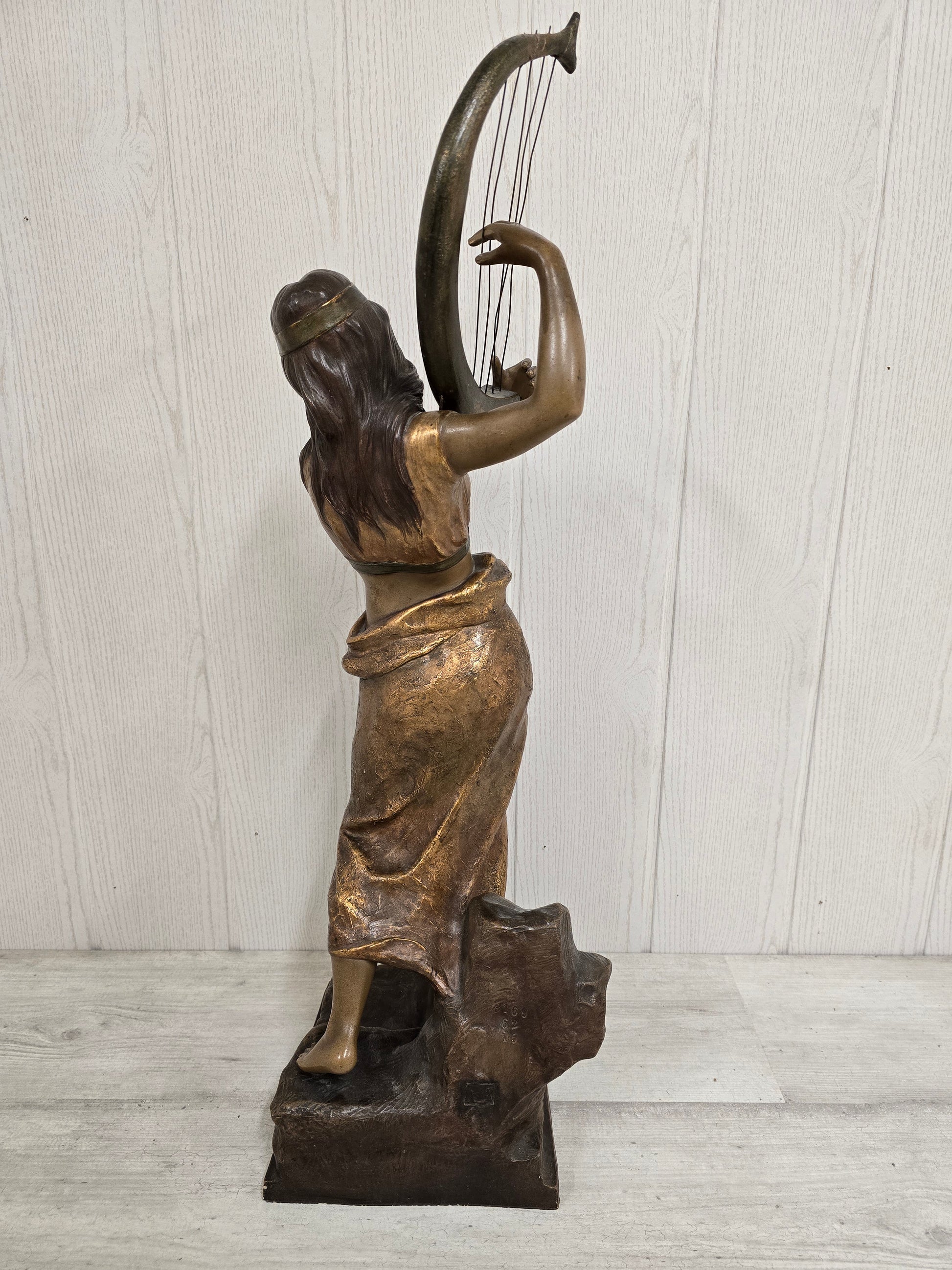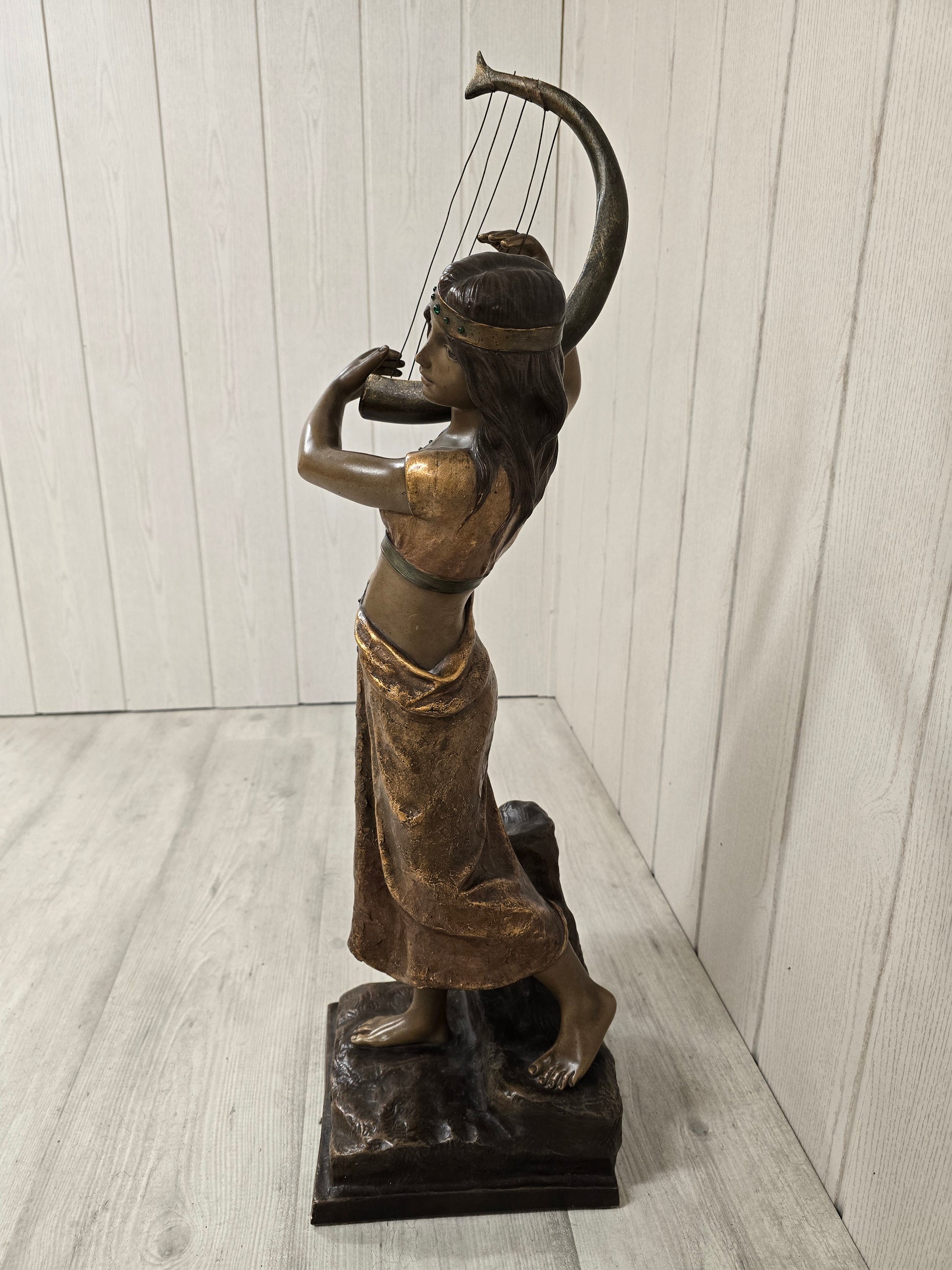 Cette sculpture en terre cuite représente une belle femme jouant de la harpe, créée par l'artiste G.Berdnay. Avec sa finesse et sa beauté, elle ajoutera une touche élégante à votre intérieur. Sa composition en terre cuite lui confère une solidité et une durabilité remarquables.