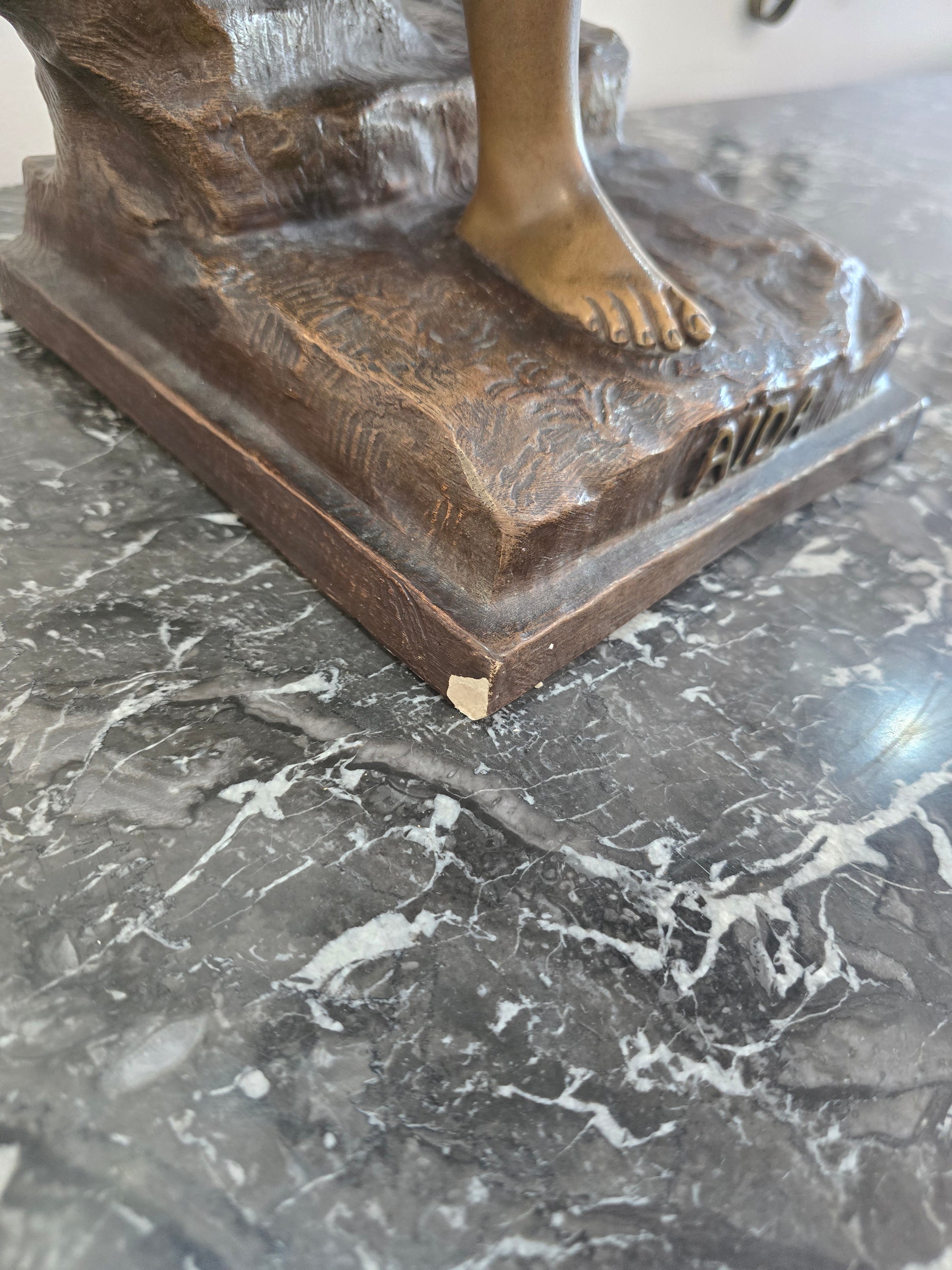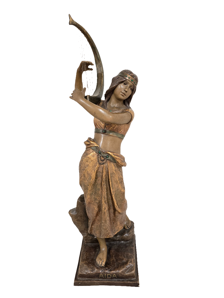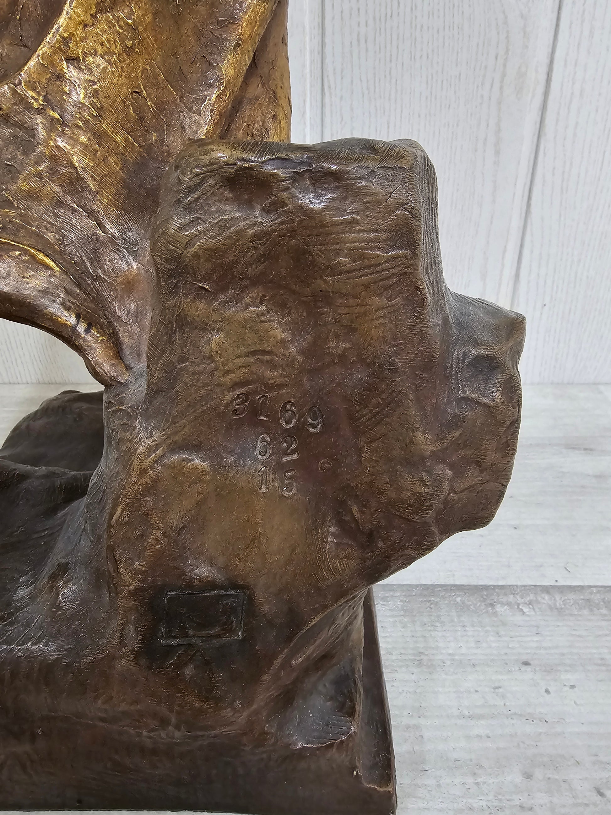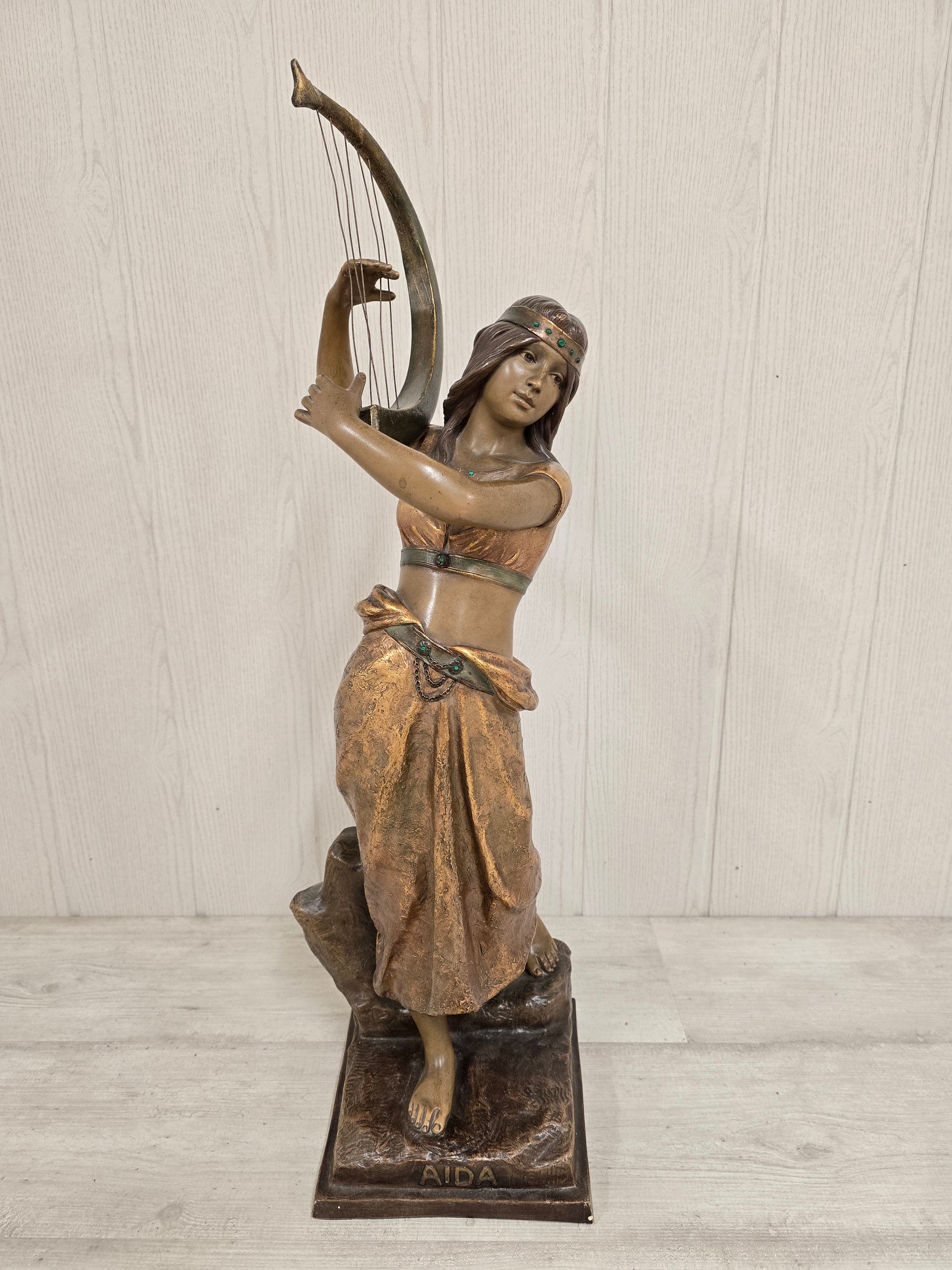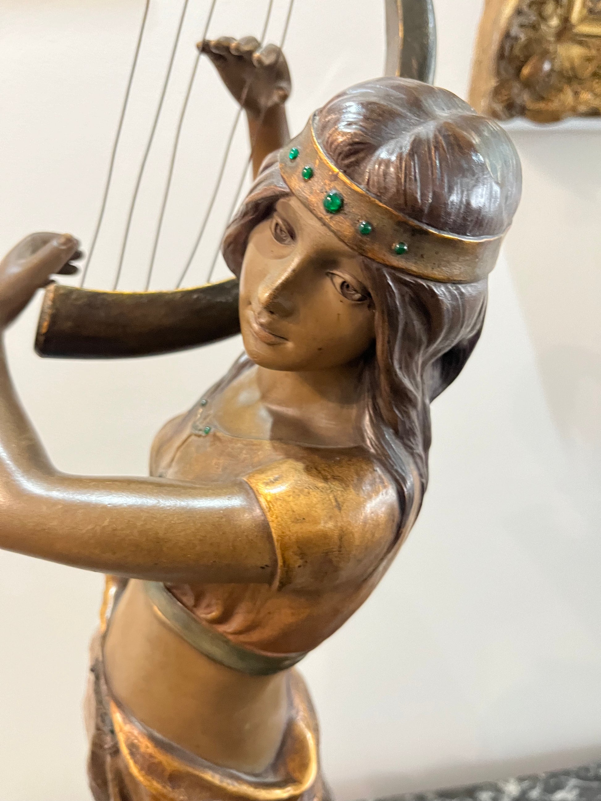 Cette sculpture en terre cuite représente une belle femme jouant de la harpe, créée par l'artiste G.Berdnay. Avec sa finesse et sa beauté, elle ajoutera une touche élégante à votre intérieur. Sa composition en terre cuite lui confère une solidité et une durabilité remarquables.