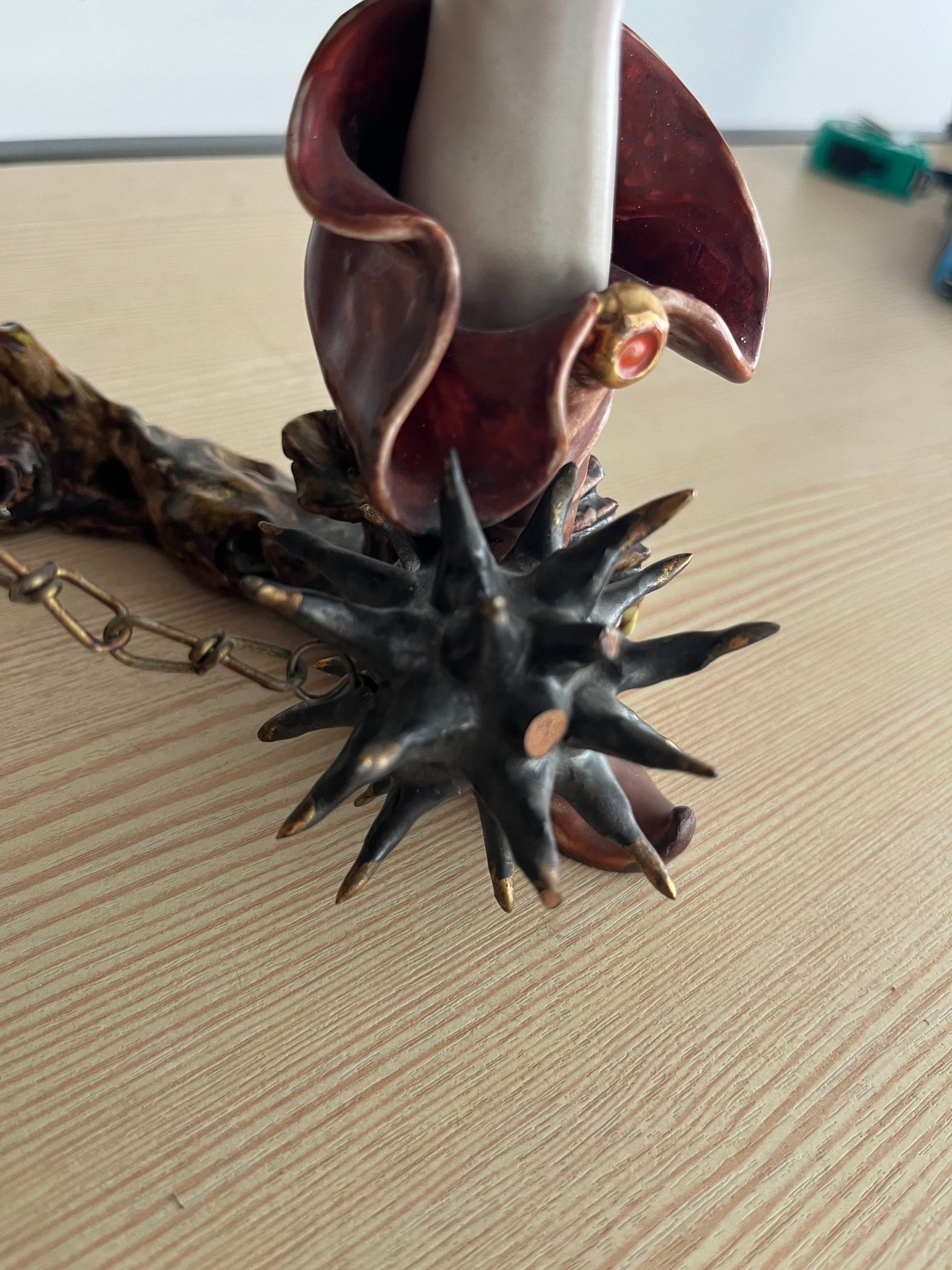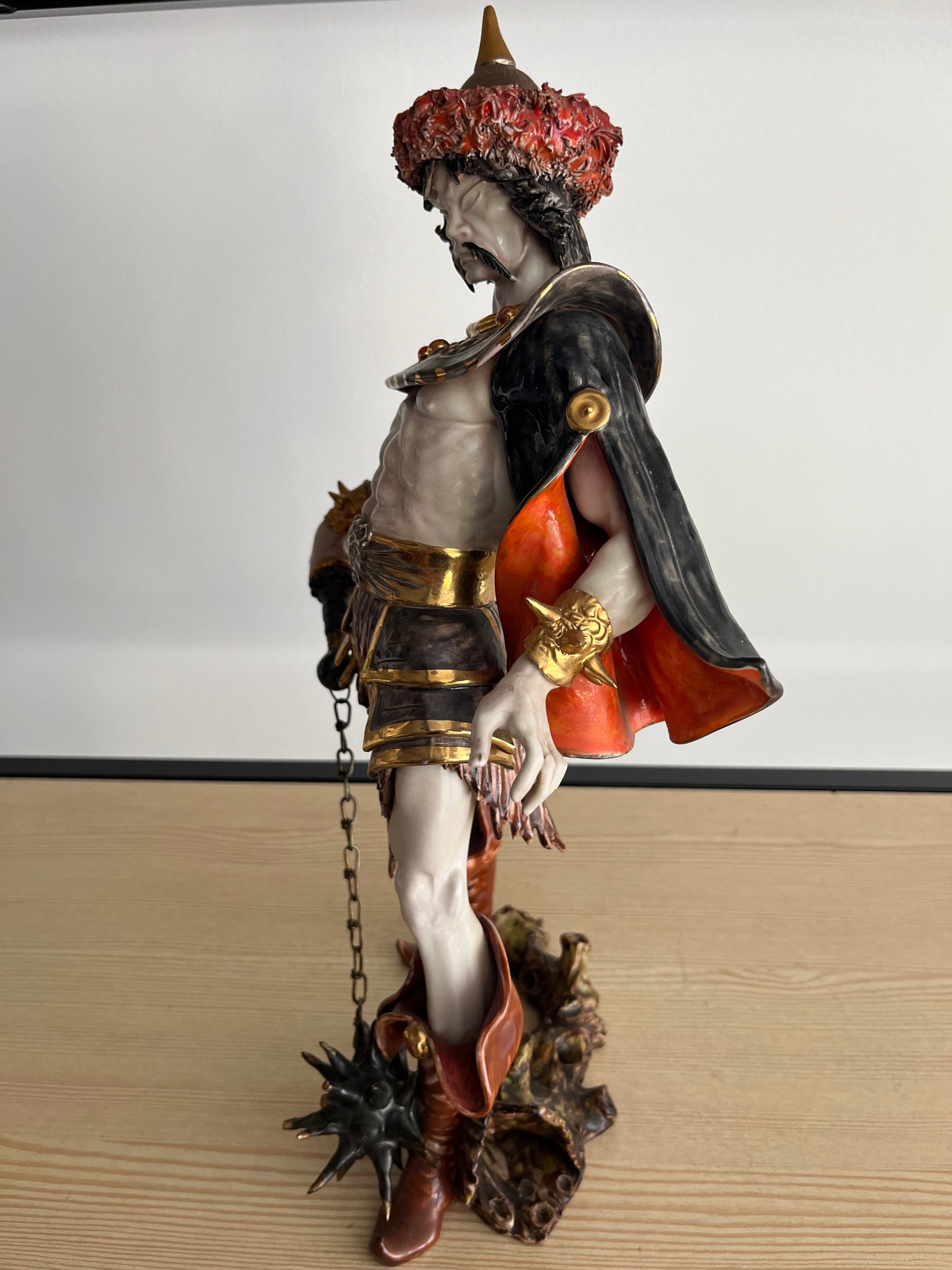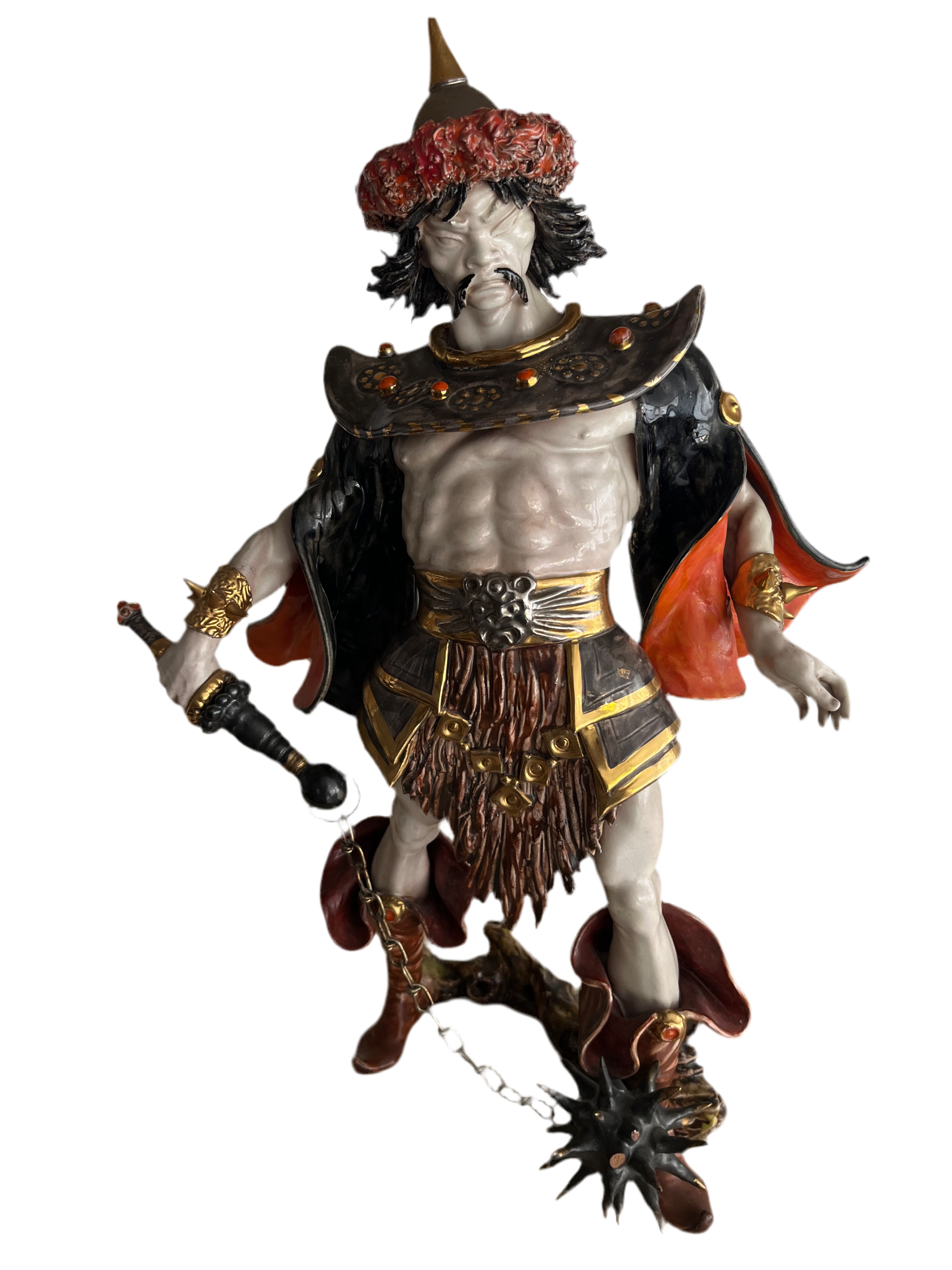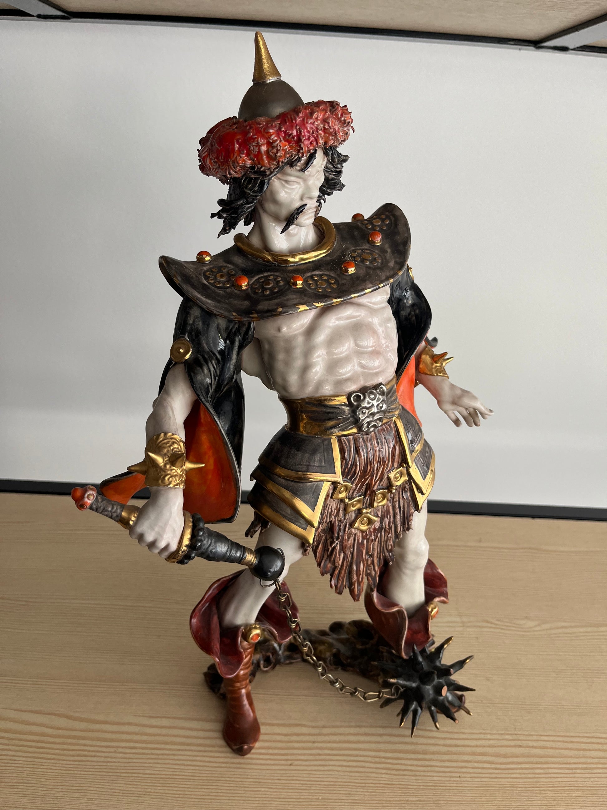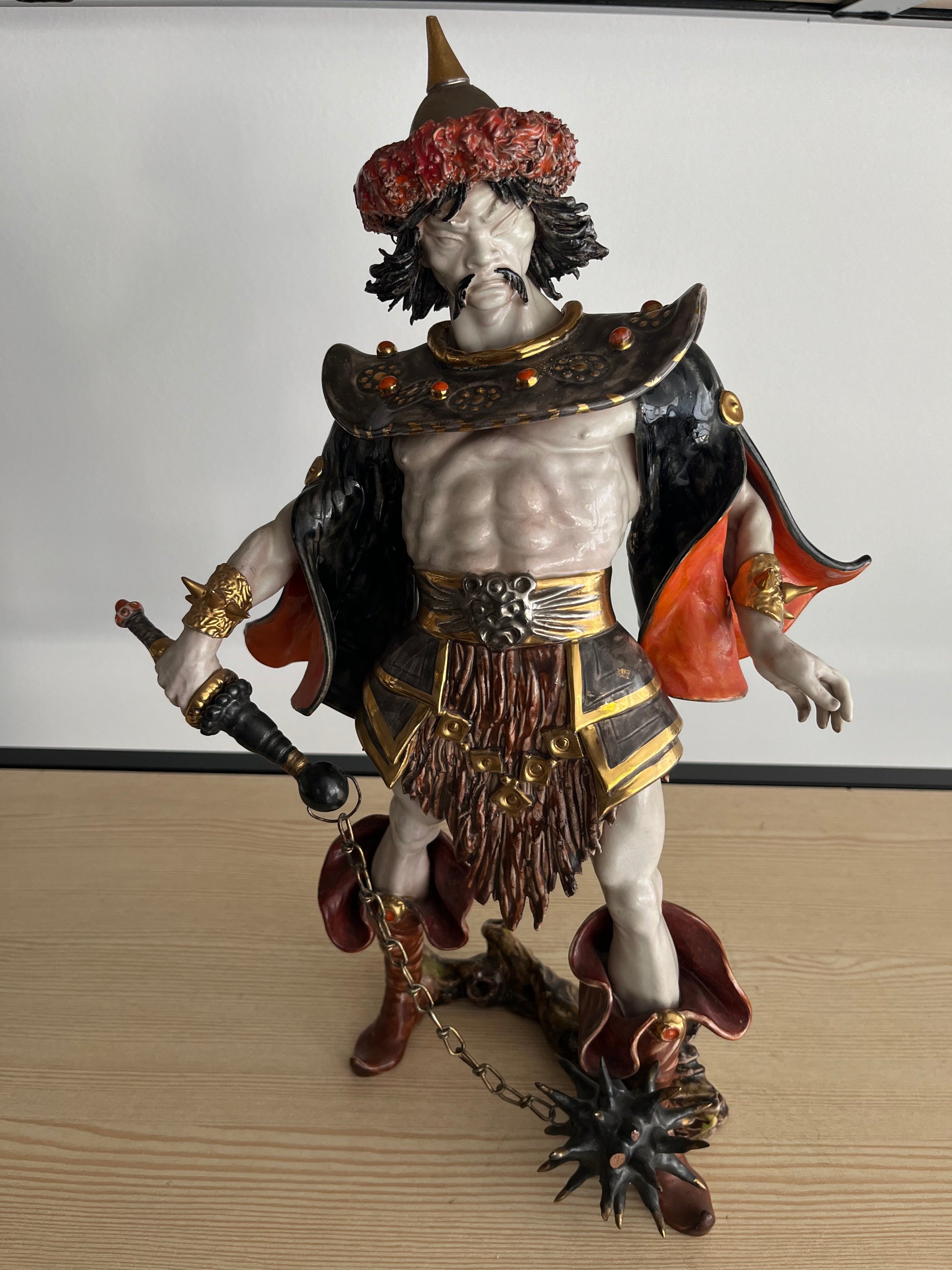 Magnifique statuette de guerrier mongole en terre cuite, signée par l'artiste Goanti. Très charismatique, cette pièce est un véritable chef-d'œuvre. Avec sa signature authentique et son design unique, elle apportera une touche d'histoire et d'originalité à votre intérieur. Deux petits picots sur la boule sont abîmés mais il reste en excellent état.
