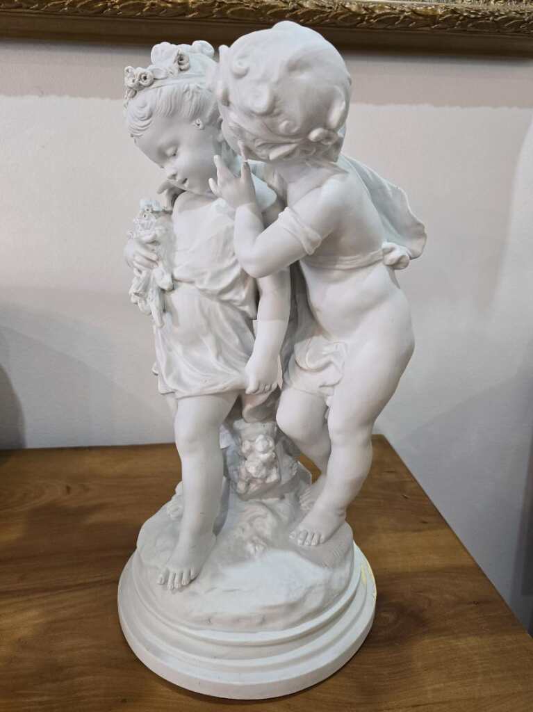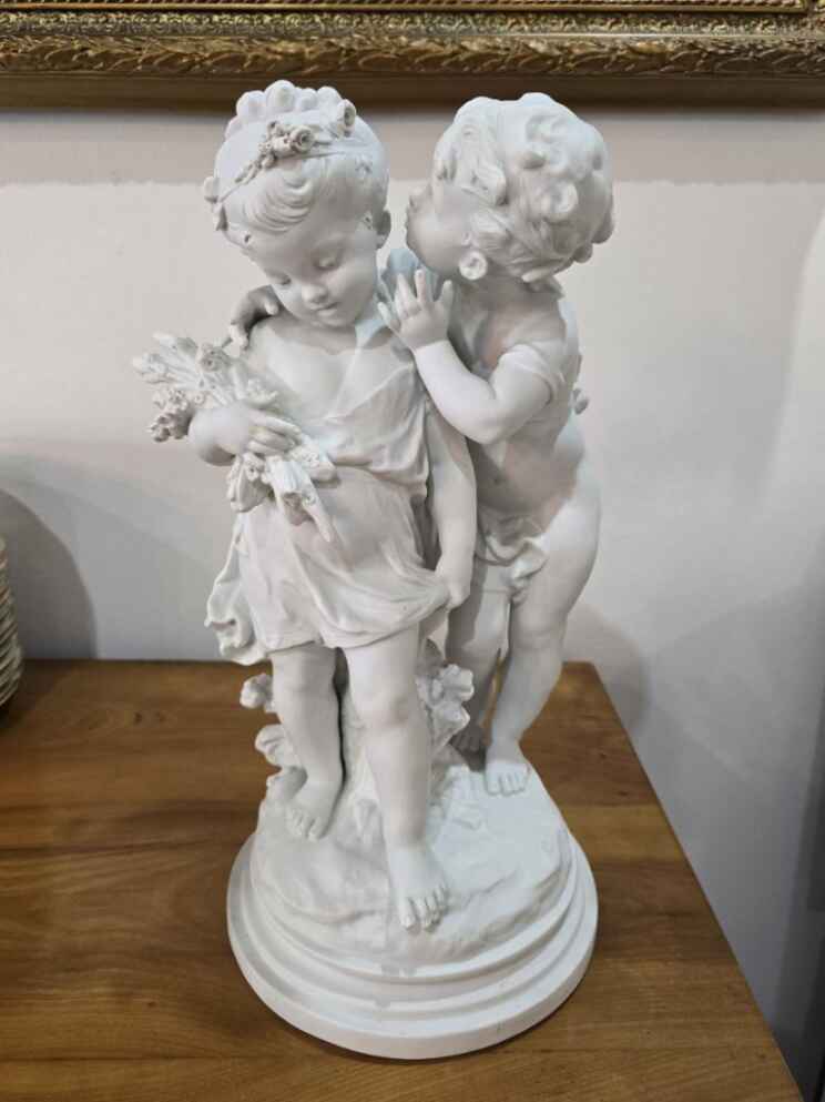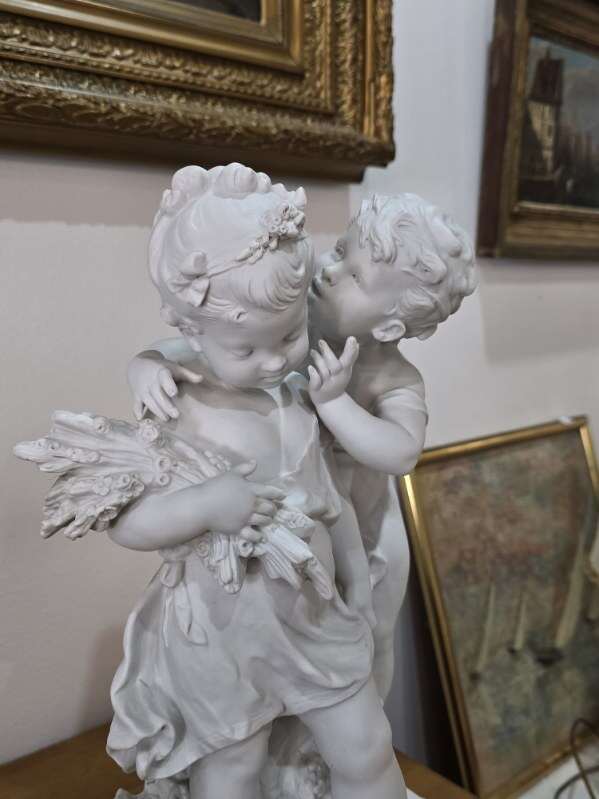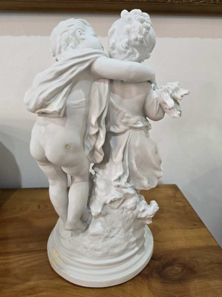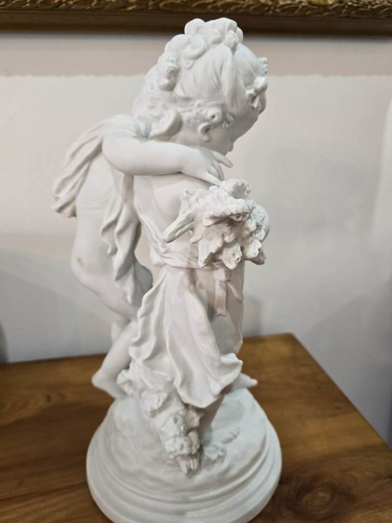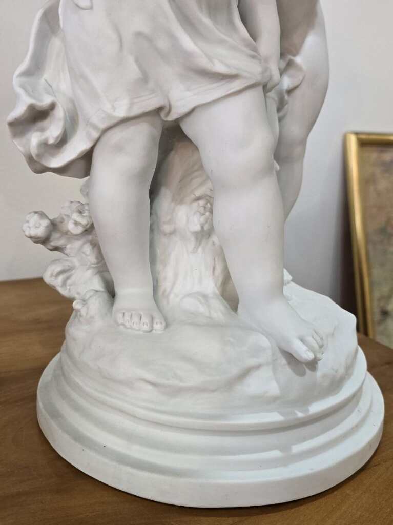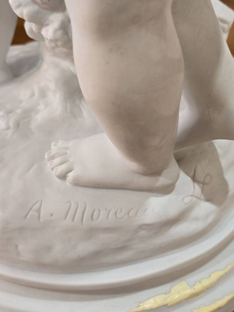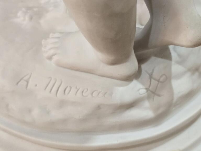 Découvrez cette magnifique sculpture en biscuit signée Auguste Moreau (1834-1917). Une pièce rare et authentique, réalisée sans glaçure à haute température, offrant à la porcelaine tendre ou dure une texture unique. Parfaite pour les amateurs d'art et collectionneurs, alliant beauté et qualité artisanale.