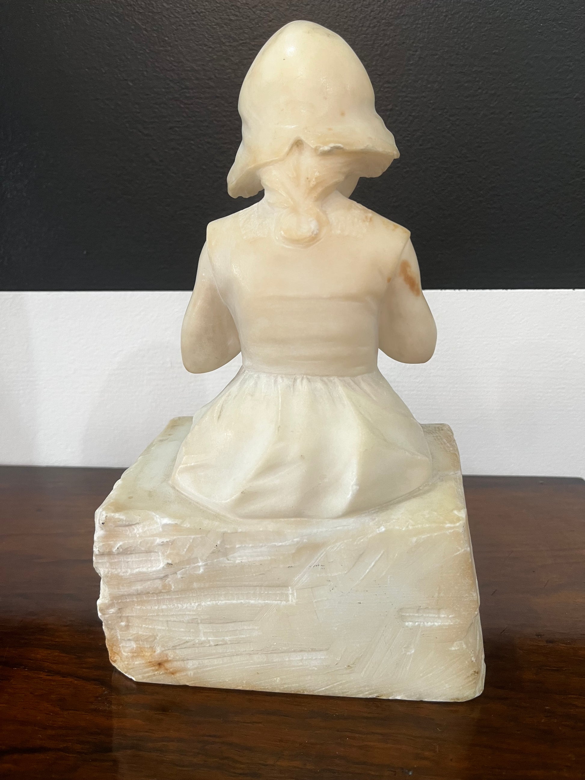 Découvrez cette statuette en albâtre représentant une jeune travailleuse de l'année 1900. Fabriquée avec précision, cette pièce unique apportera une touche d'histoire et de sophistication à votre intérieur. Son matériau noble et sa conception minutieuse en font une œuvre d'art à part entière.