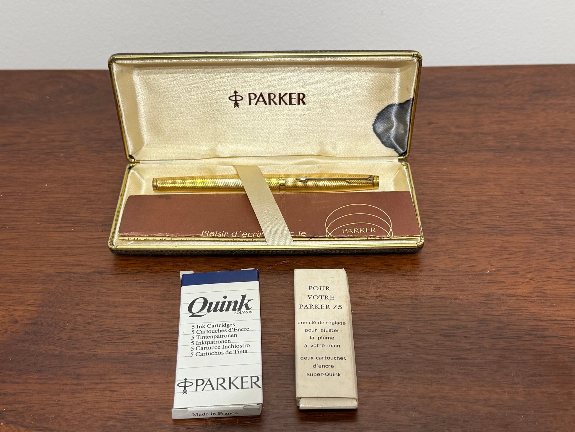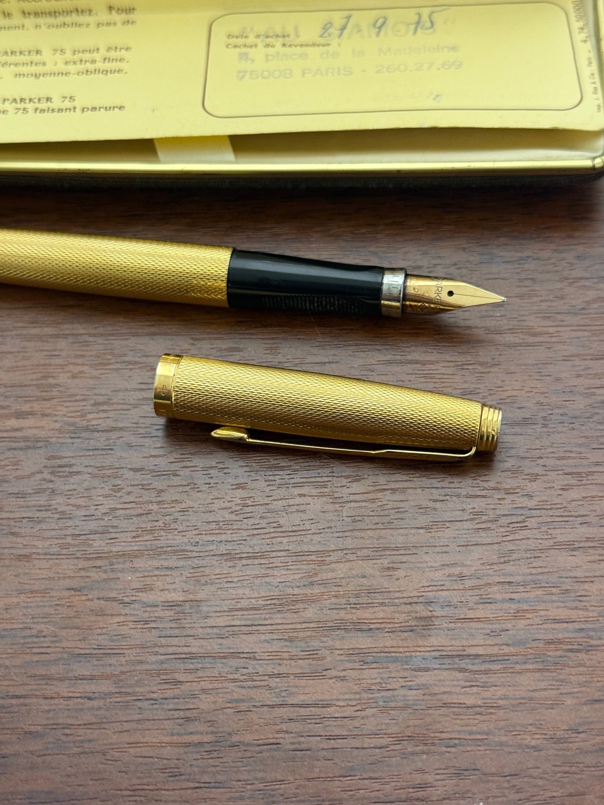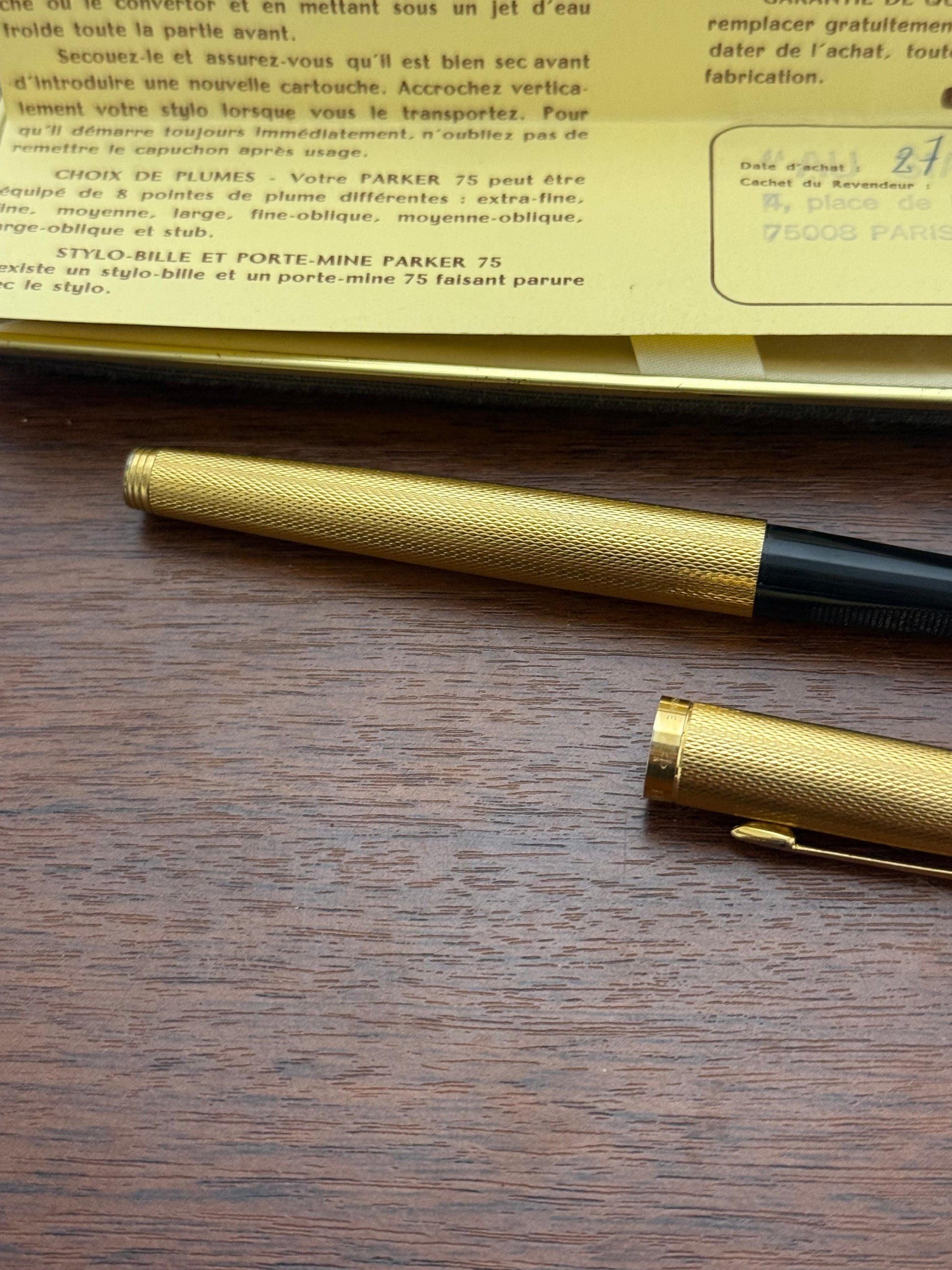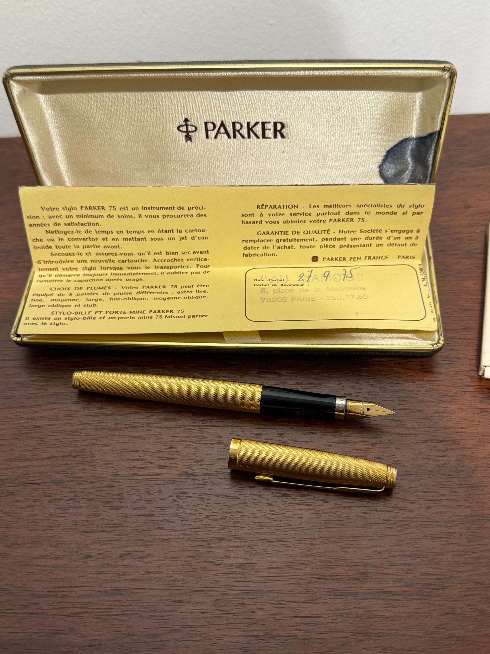 Stylo Plume Parker 75 Plaqué Or - Plume 18 carats 750 - Années 1970