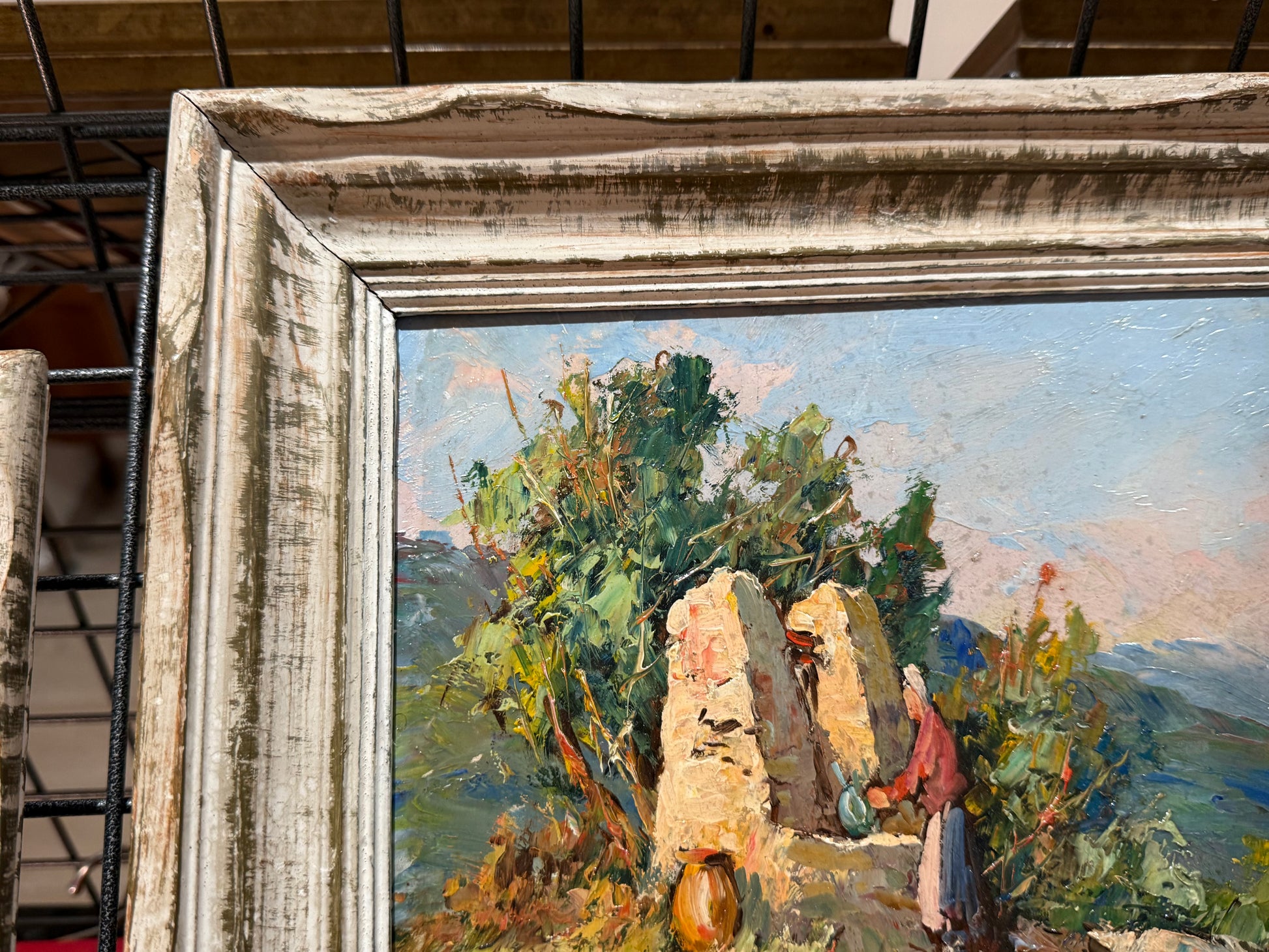 Le tableau est encadré dans un cadre patiné d’époque qui renforce le caractère authentique de l’œuvre.