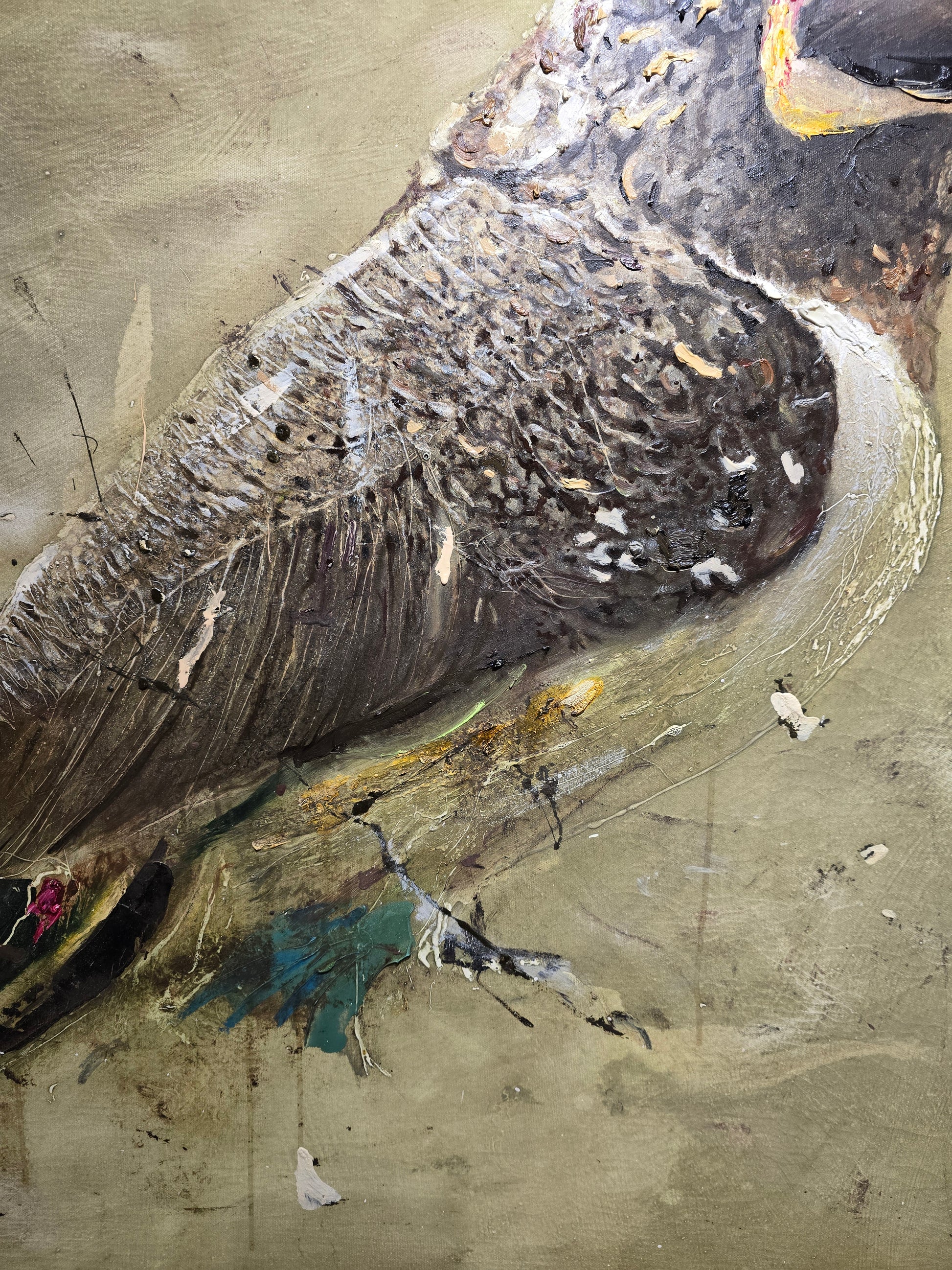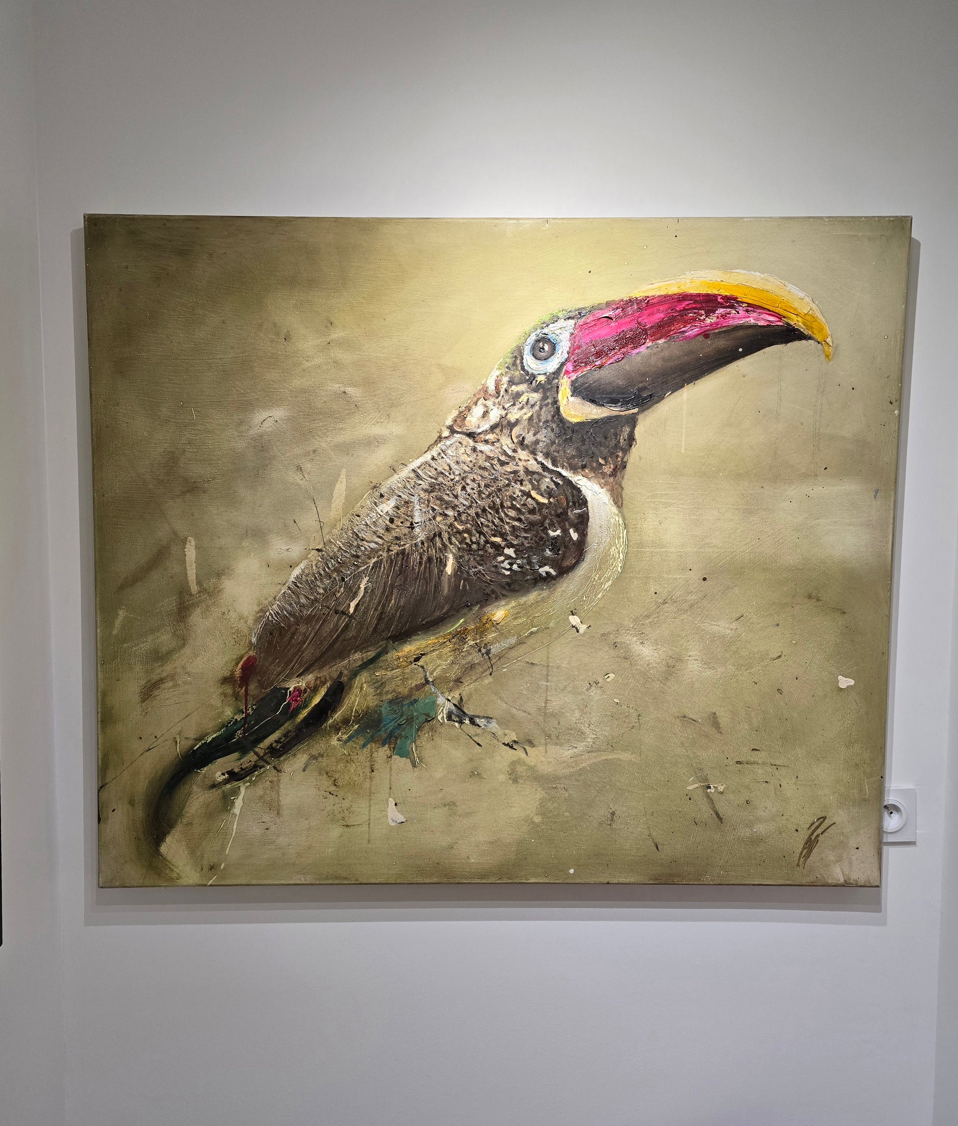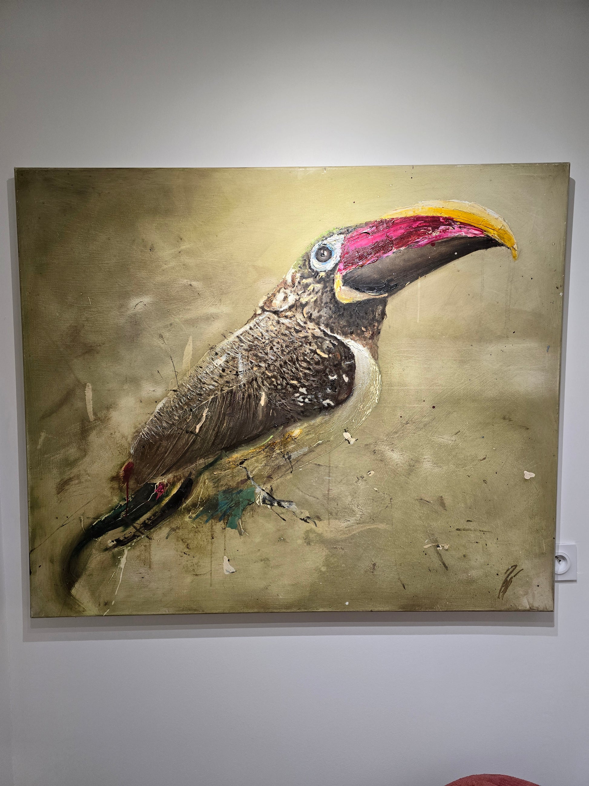 Œuvre représentant un toucan avec de belles couleurs vives au niveau du bec.