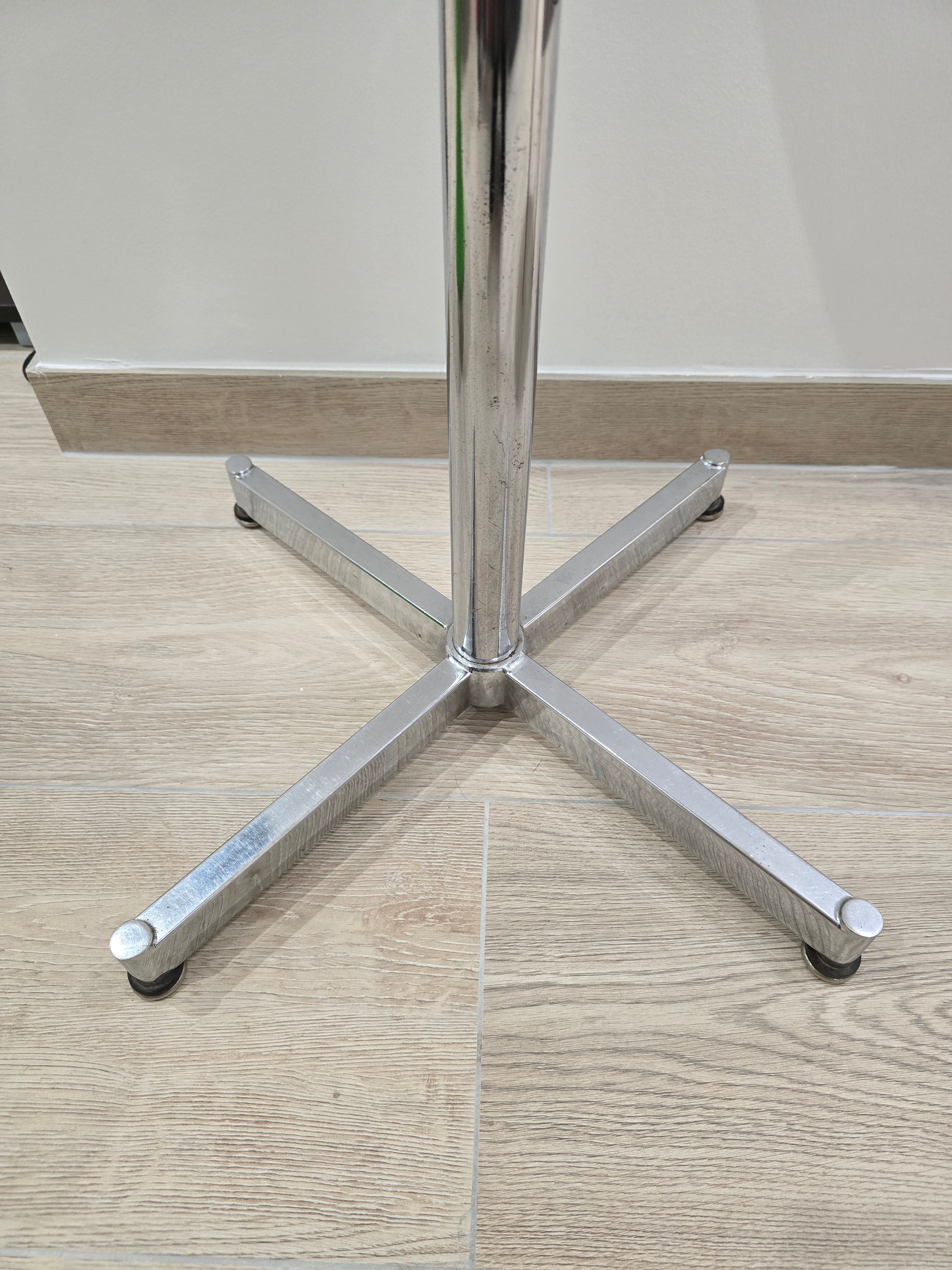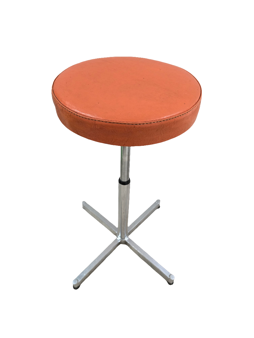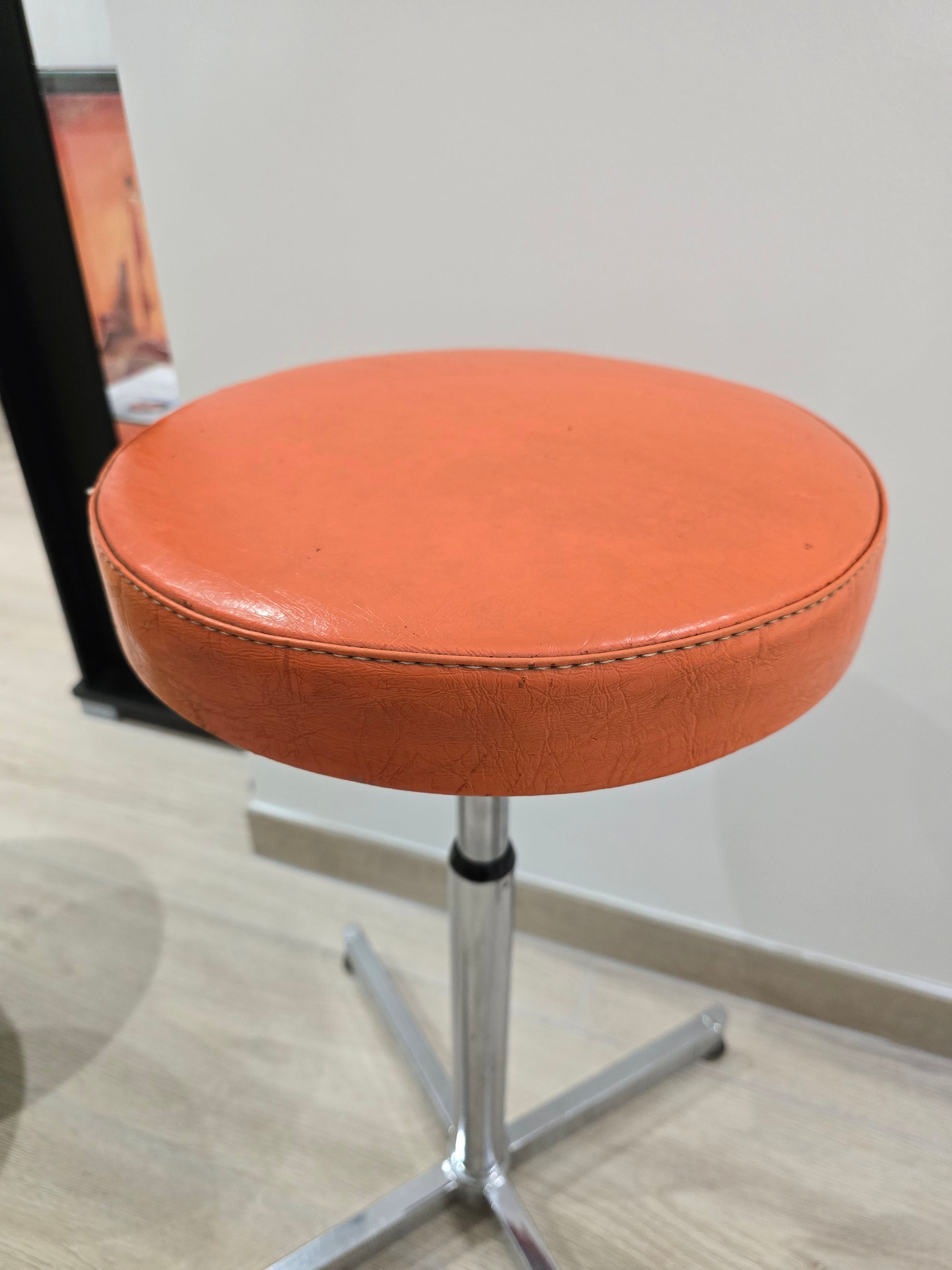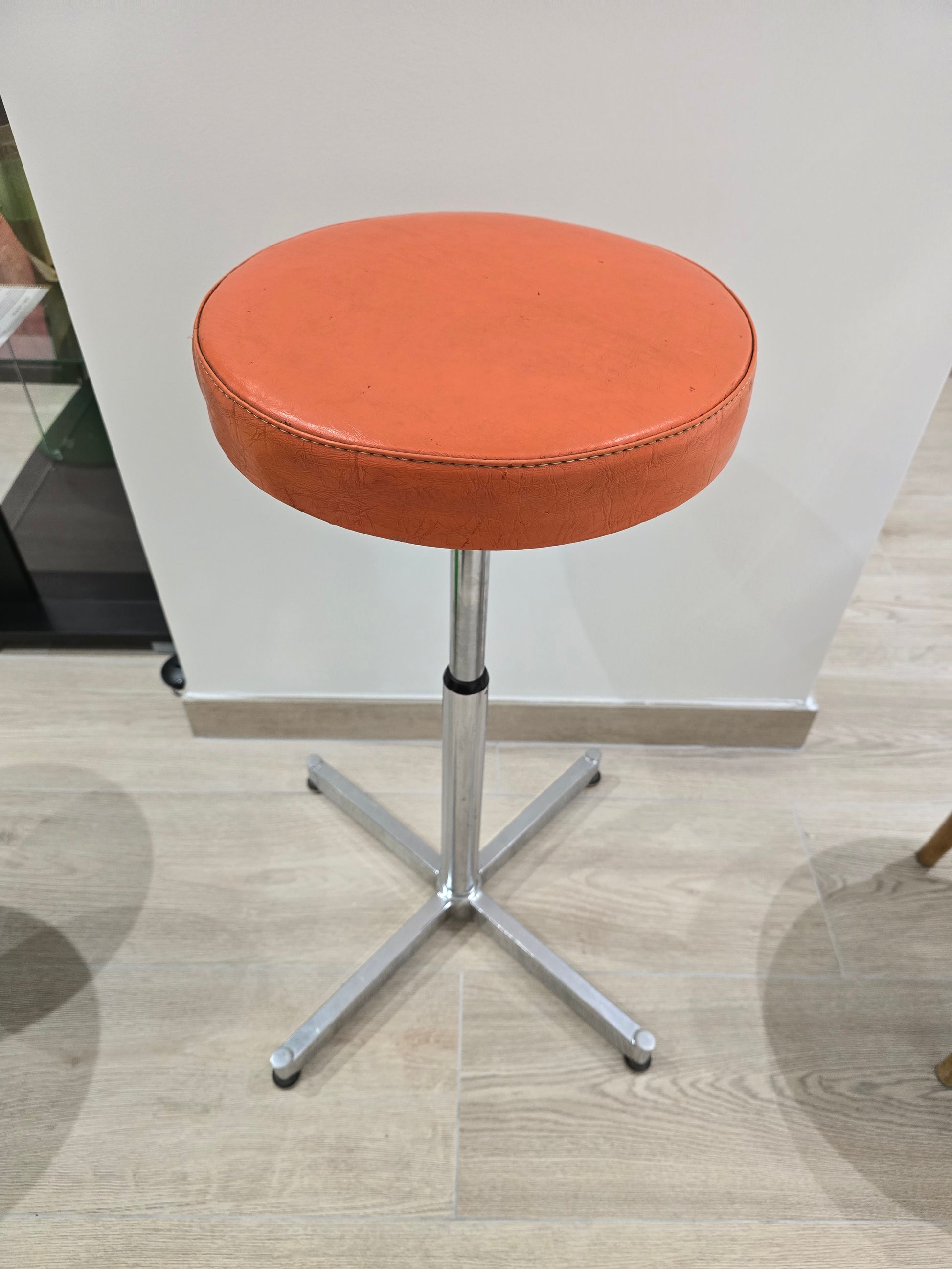 Profitez du style rétro avec notre Tabouret acier chromé 70's ! Son assise en sky orange et son piètement en métal chromé apportent une touche vintage à votre intérieur. Avec ses 4 pieds, ce tabouret offre une stabilité optimale pour un confort d'assise inégalé.