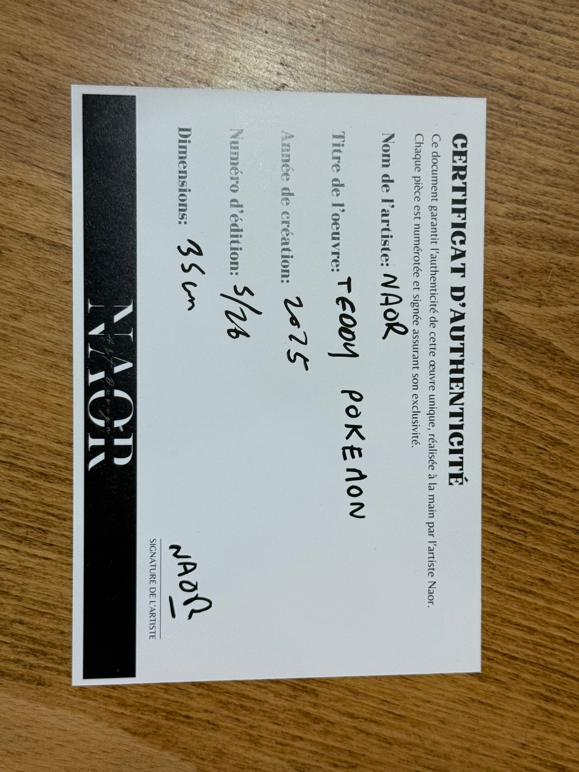 Teddy Bear Pokémon – Édition limitée 5/26 – 35 cm. Signé Naor