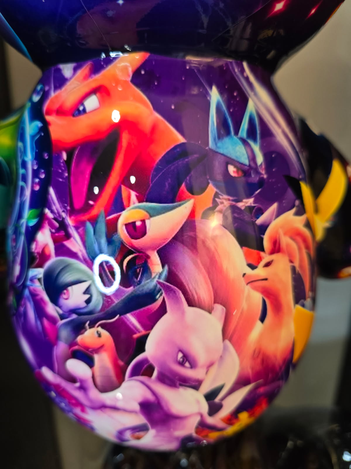 Ce Teddy unique est recouvert d’un covering coloré rassemblant les héros emblématiques de la saga : Pikachu, Gengar, Bulbizarre, Dracaufeu, Mewtwo, et bien d’autres.