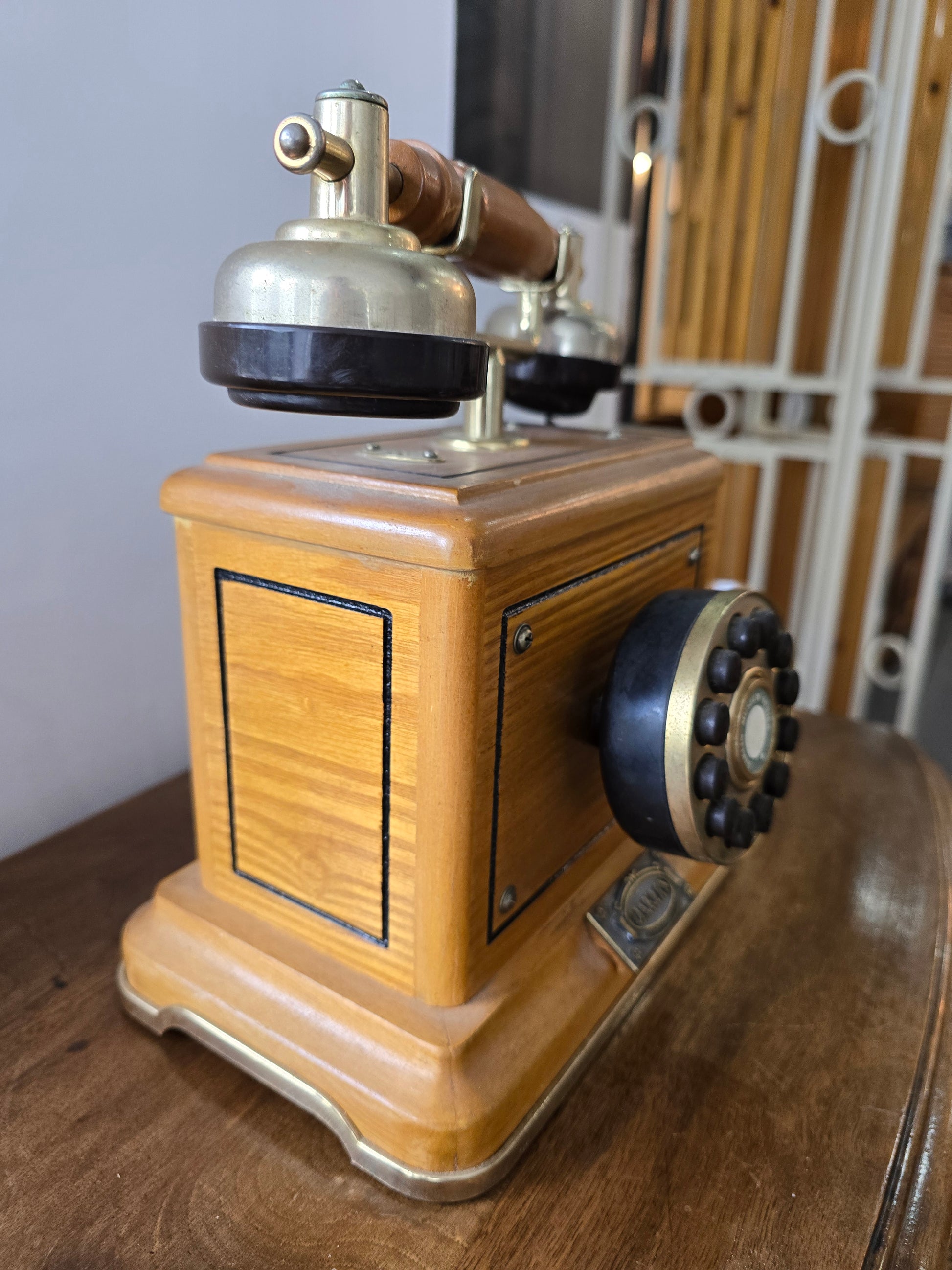 Le Téléphone Daklin museum série est un téléphone vintage avec un design unique de la série muséum. Fabriqué en bois, il apporte un charme rétro à votre maison. Profitez d'une touche d'histoire et de modernité avec ce téléphone expertement conçu.