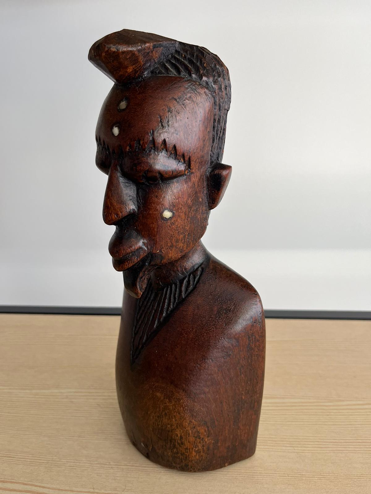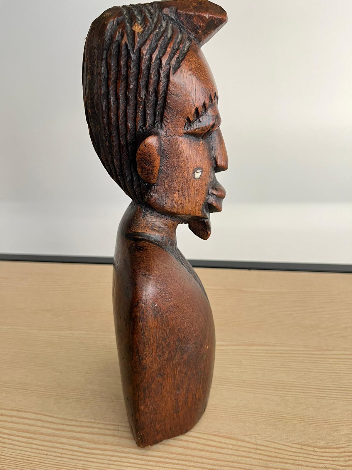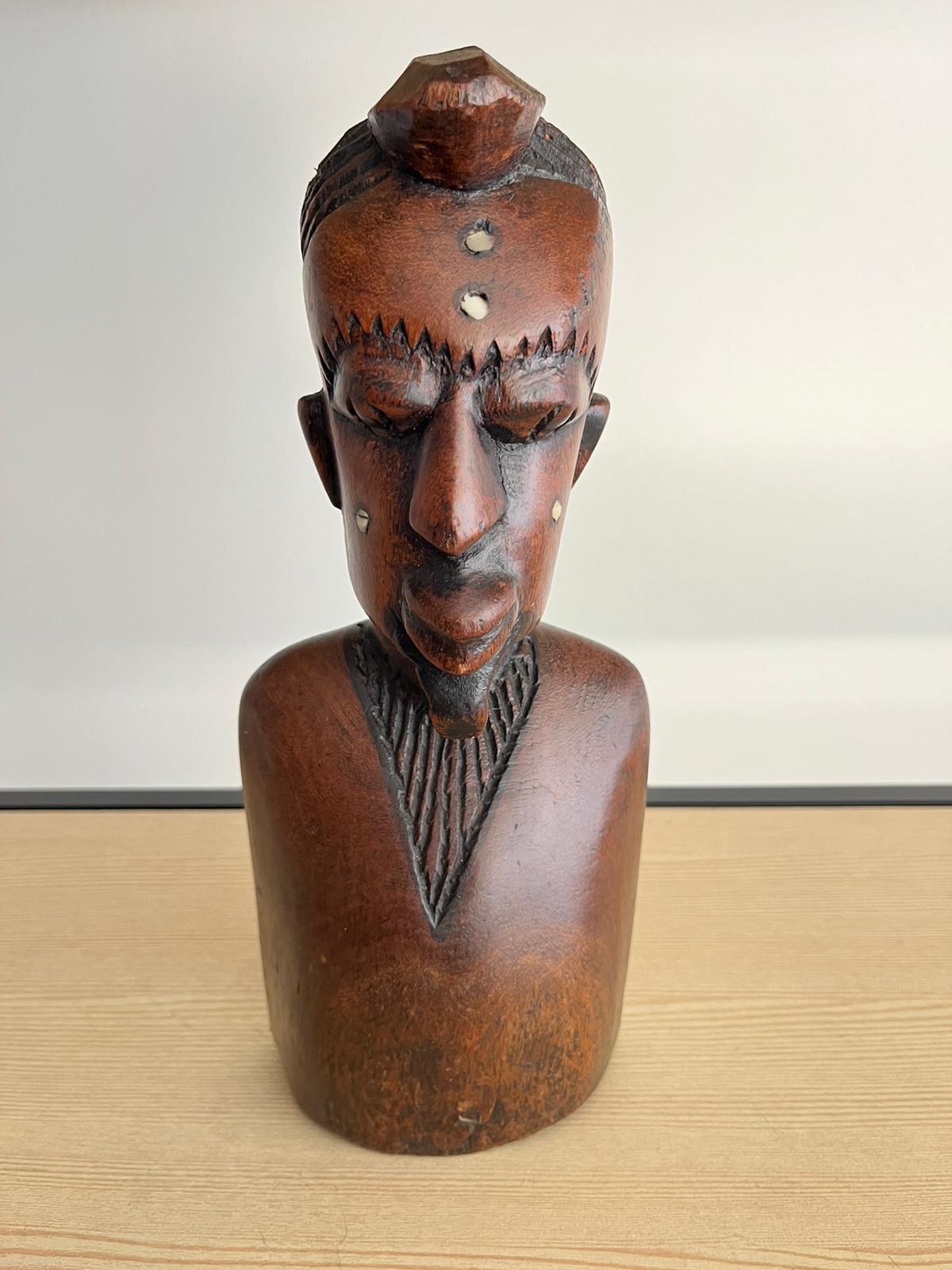 "La Tête Africaine vintage en bois sculpté offre une pièce unique et authentique pour toute collection d'art africain. Fabriqué à la main par des artisans talentueux, ce chef-d'œuvre sculpté en bois apportera une touche de tradition et de culture à votre intérieur. Un must-have pour tout amateur d'art et de culture africaine."