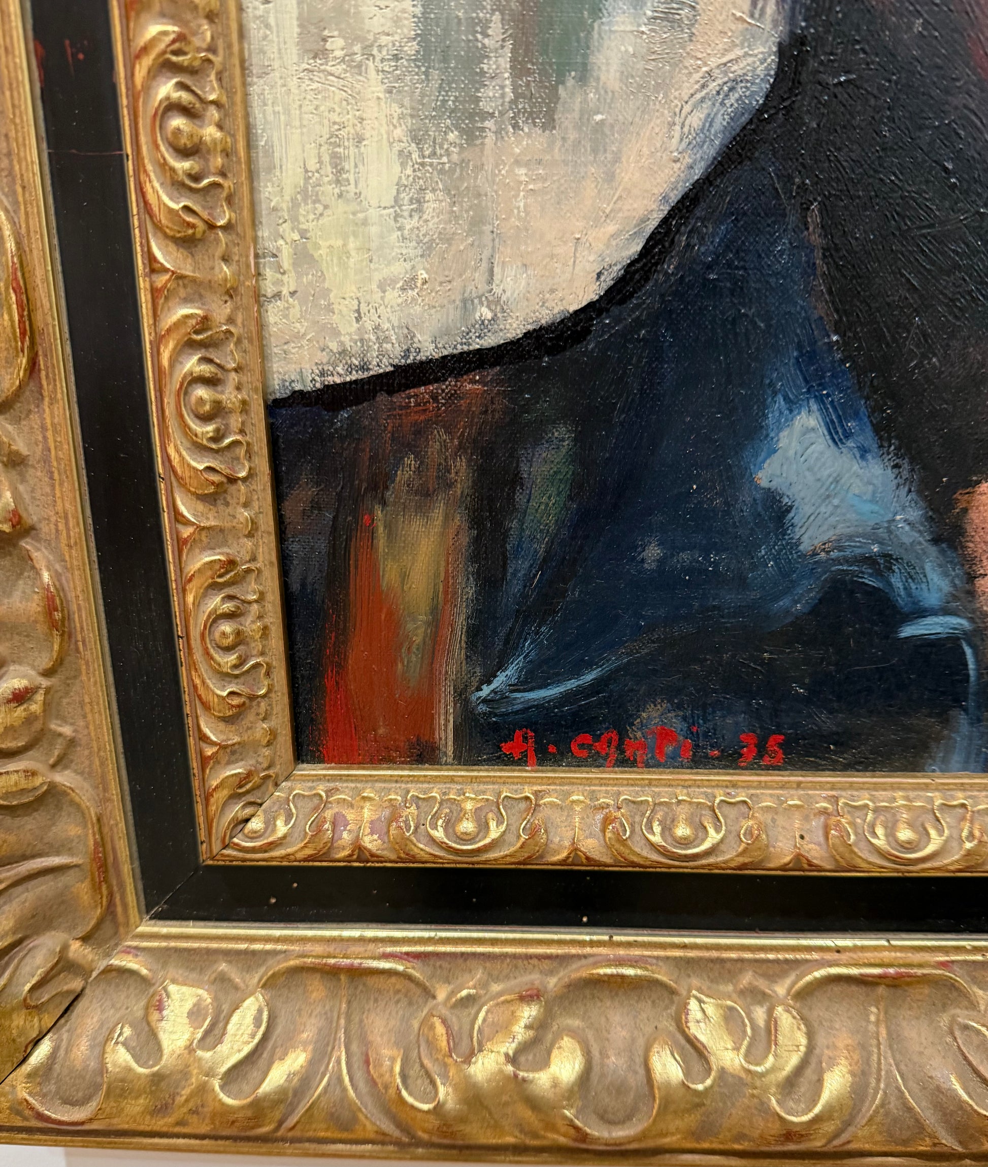 - L’état de conservation et la modernité du traitement du fond laissent penser que ce n’est pas une œuvre des années 30, malgré le chiffre “35”.