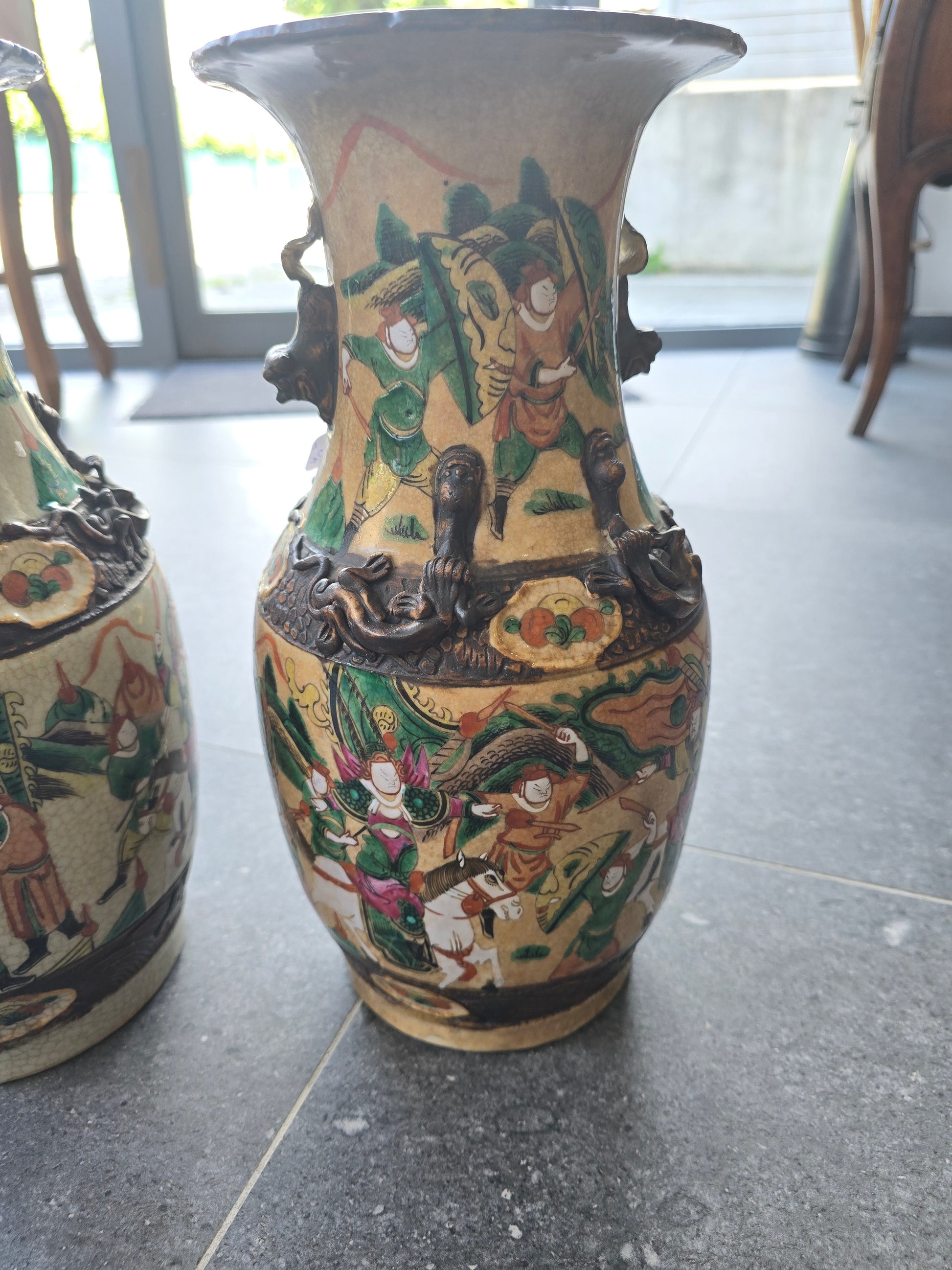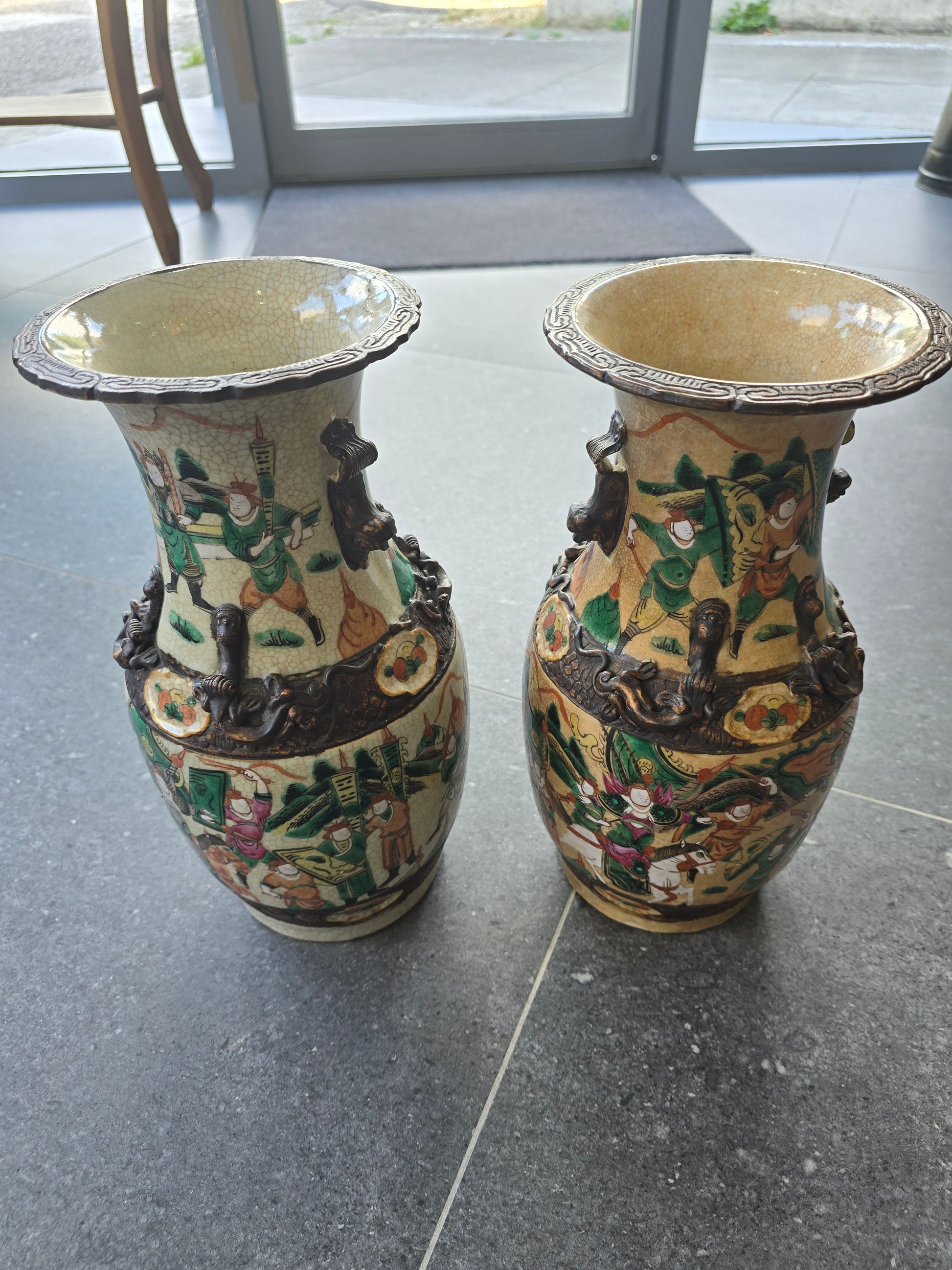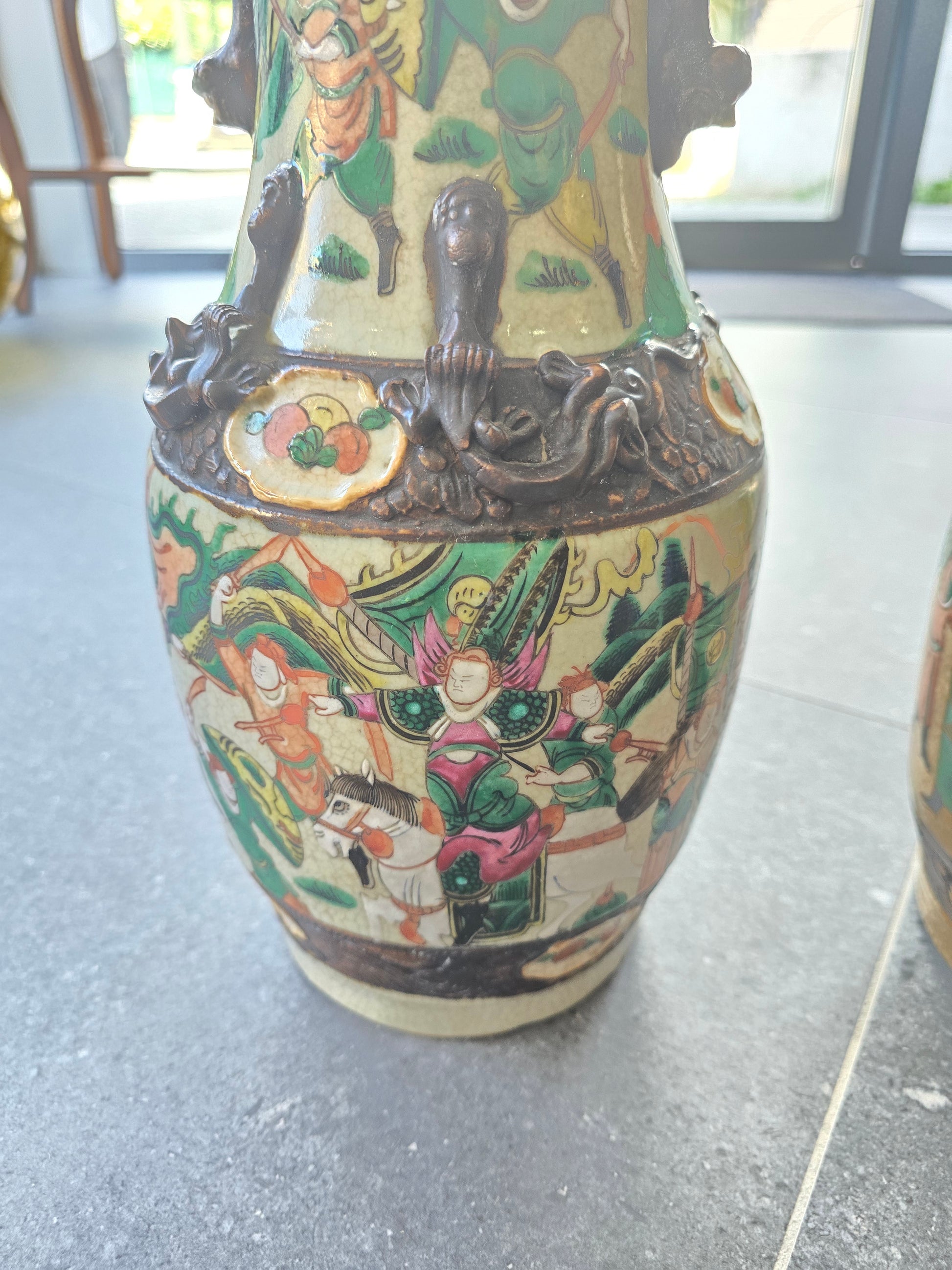 Découvrez notre paire de vases de Nankin chinois ancien. Ces vases sont un témoignage de l'histoire et de la culture chinoises anciennes. Avec leur design élégant et leur artisanat traditionnel, ils apporteront une touche d'authenticité et de beauté à votre intérieur. Un ajout précieux à toute collection.