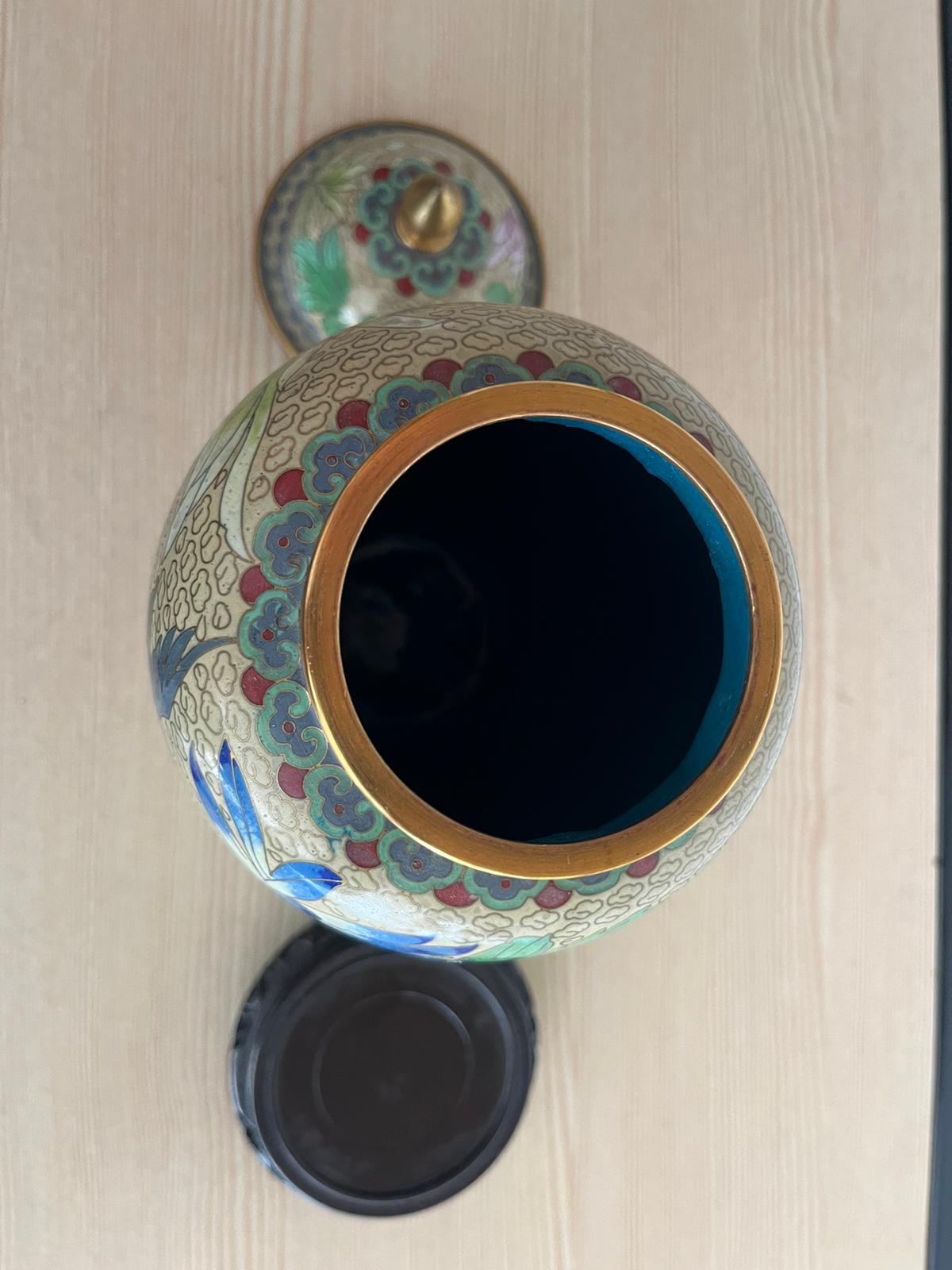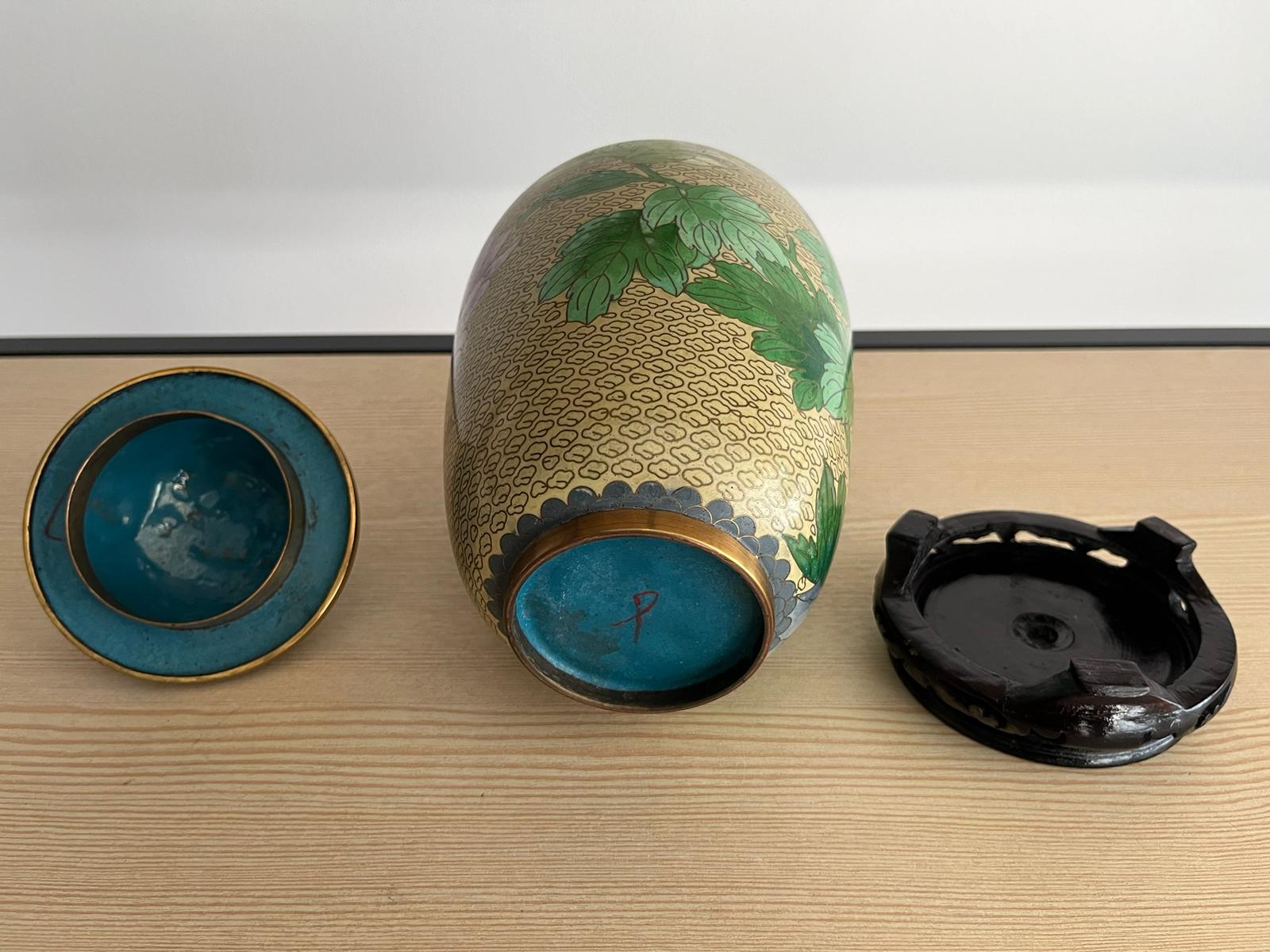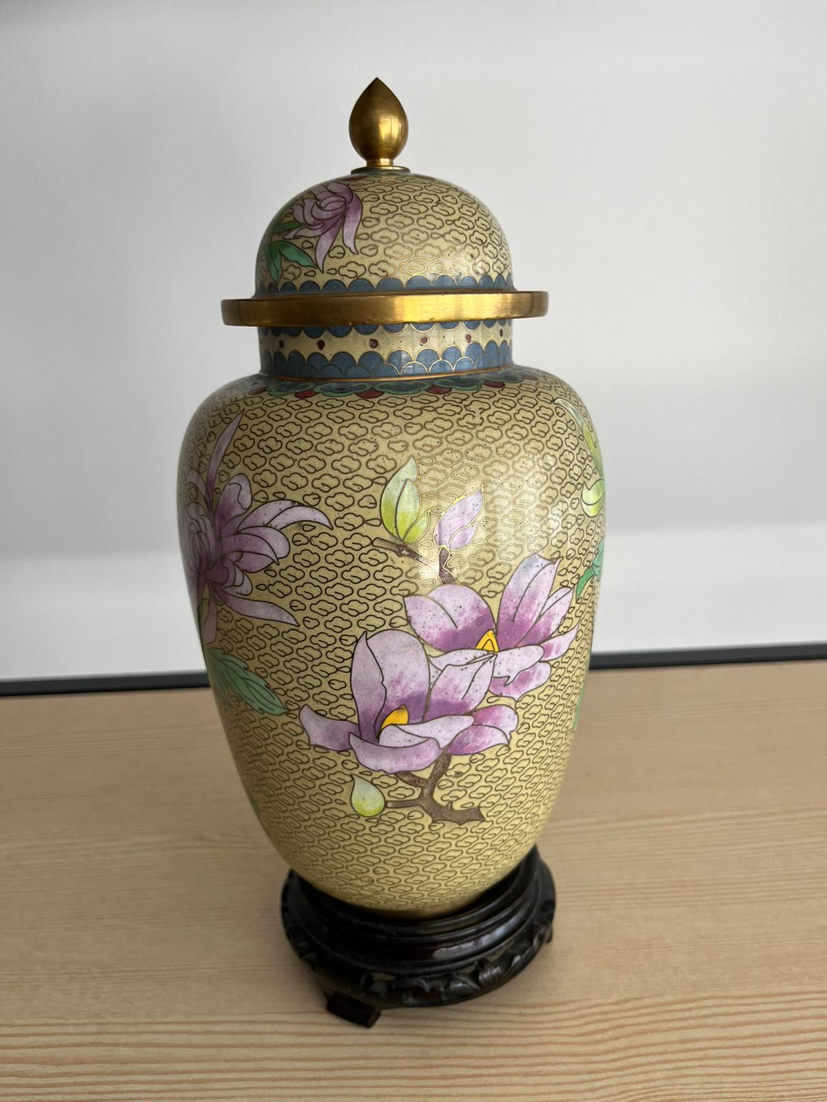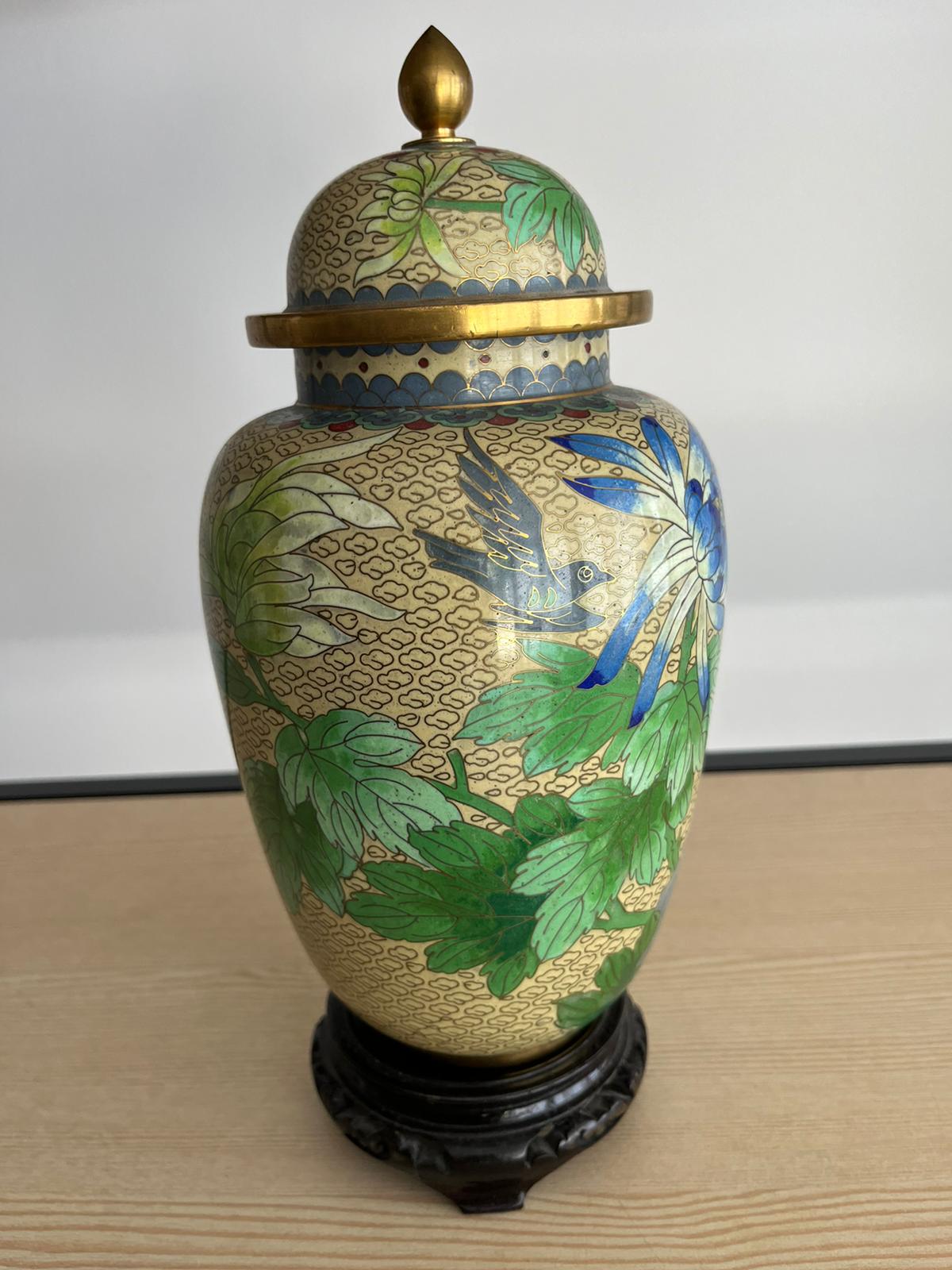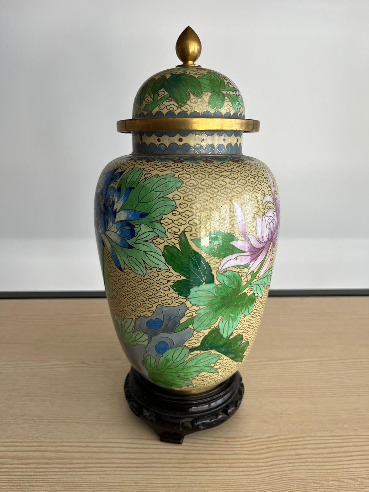 Apportez une touche d'élégance à votre intérieur avec notre Vase chinois cloisonné sur socle. Ornée de motifs traditionnels et dotée d'un couvercle pratique, cette pièce est le parfait mélange entre style et fonctionnalité. Idéal pour mettre en valeur vos fleurs ou simplement comme objet de décoration, ce vase ajoutera une touche d'exotisme à votre maison.Hauteur : 27 cm