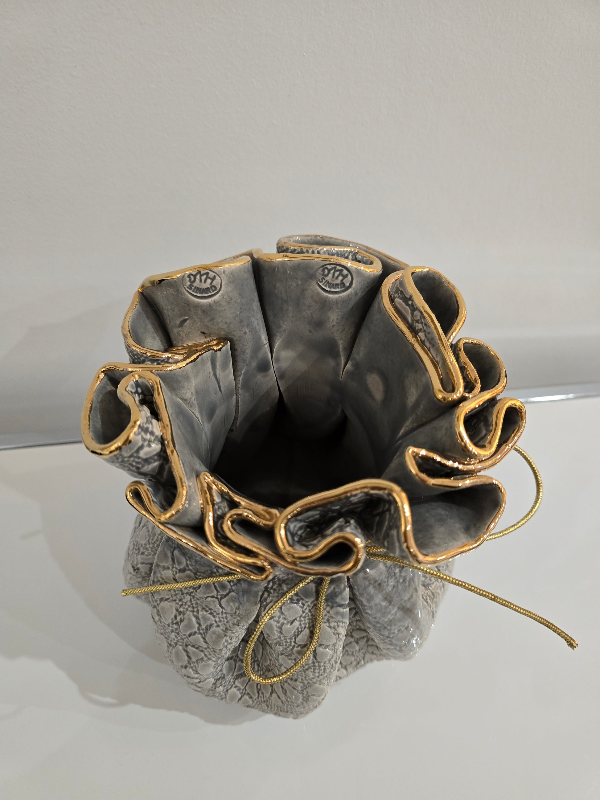 Ce vase homonière gris et or, fabriqué par des experts de Grenoble, allie élégance et savoir-faire. Grâce à son design unique, il ajoutera une touche sophistiquée à votre intérieur. Fabriqué avec des matériaux de qualité, ce vase est à la fois durable et esthétique.