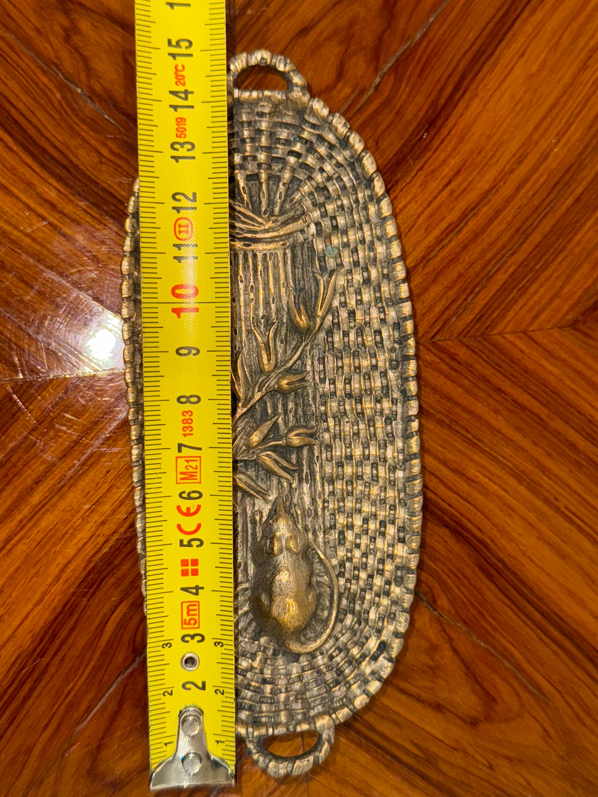 Vide-poche en bronze argenté – Panier de blé et souris, travail figuratif ancien
