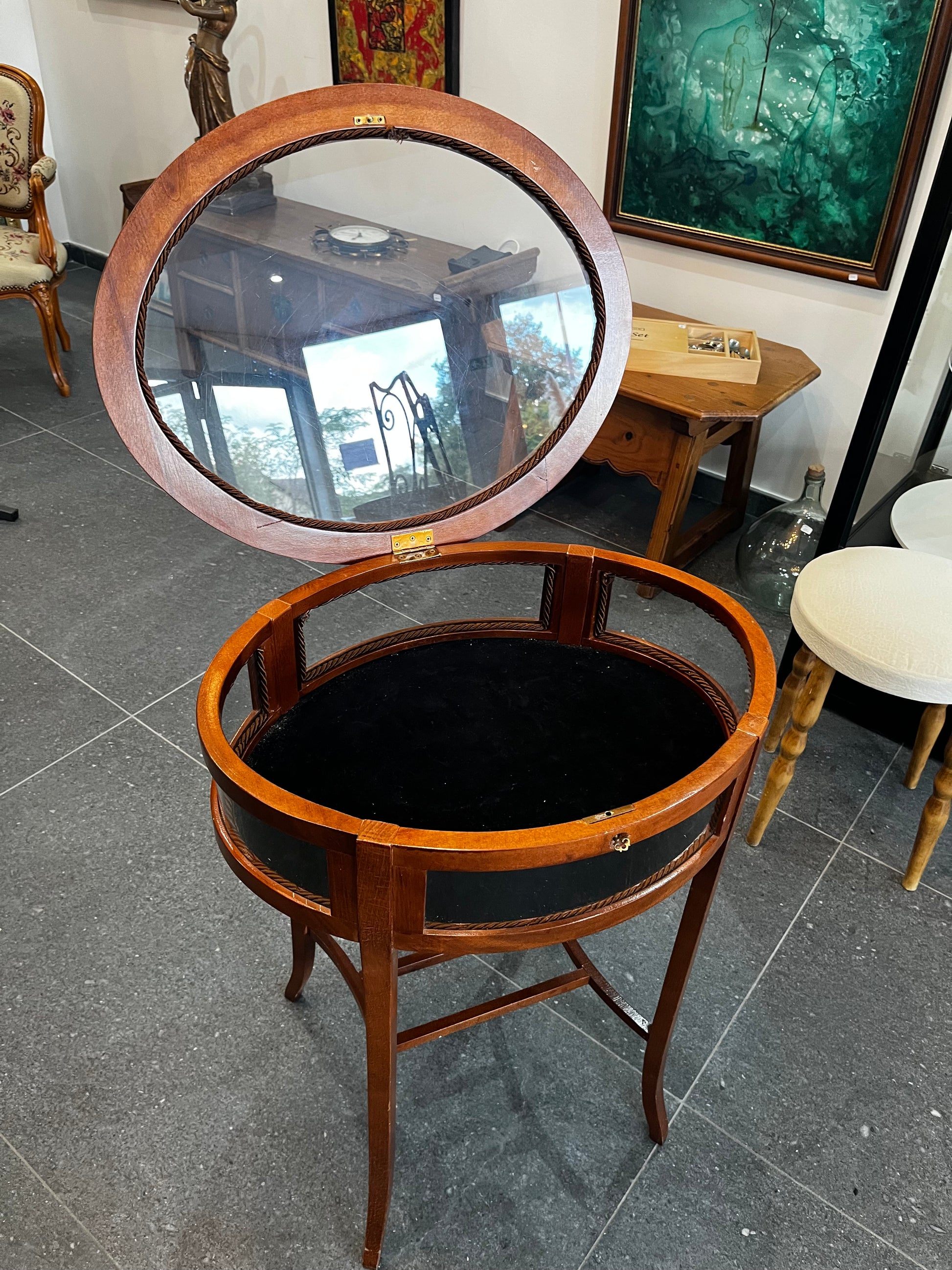 Vitrine sur pied vintage , intérieur en feutre , très pratique pour mettre vos plus beaux bijoux.